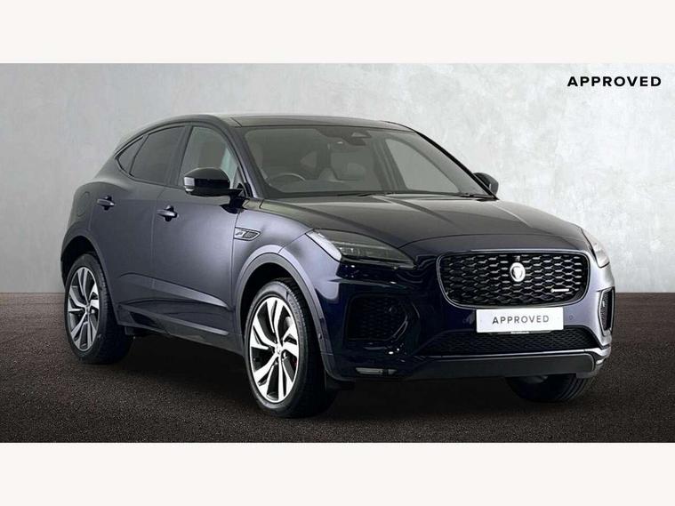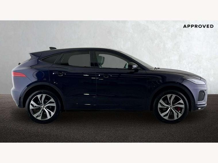11.4" touchscreen with central ICP, Adaptive cruise control, Android Auto, Apple car play, Blind spot assist, Driver condition monitor, Eco driving style assistant, Electric power assisted steering, Emergency services call system, Front and rear parking aid, InControl remote, Interactive driver display, Jaguar drive control with adaptive surface response, Jaguar Toggle sport shift selector, Lane keep assist, Outside temperature gauge, Pivi pro connected infotainment system with smart settings and navigation pro, Push button start, Rear collision monitor, Rear traffic monitor, Speed proportional steering, Traffic sign recognition with adaptive speed limiter, Trip computer, Voice control system, Wireless device charging, 7 kW onboard charger, Configurable dynamics, Electric rear axle drive, Gasoline particulate filter, Home charging cable Mode 2, Large fuel tank, Passive suspension, Public charging cable Mode 3, Bluetooth connectivity including audio streaming, DAB digital audio broadcast, Dynamic volume control, 3 flash lane change indicators, Approach Illumination, Automatic headlights, Body colour door handles, Body colour front and rear lower bumper main moulding and lower side cladding, Body colour upper spoiler, Body coloured side sills, Centre high-mounted stop light, Dark satin grille tips, Electric front/rear windows with one touch/auto up/down, Electric heated/power fold memory door mirrors with approach lights and auto dimming driver side, Fixed panoramic glass sunroof, Heated washer jets, Heated windscreen, Jaguar script and leaper, Leaper for duo leather and embossed leaper for windsor leather, LED tail lights, LED third brake light, Metal load space scuff plates, Narvik black antenna pod and side pillar finisher, R Dynamic badge, R Dynamic body colour bumpers, Rain sensor windscreen wipers, Rear fog lights, Rear side wing doors, Rear wash wiper, Satin black grained front outer grille, low grill mesh and low bumper valence, side fender vent mesh and finisher, rear tow eye cover and grille mesh, Twin exhaust tailpipe, Variable front intermittent wipers, 16 way heated and cooled, electric adj driver memory front seats with 2 way manual headrests and heated rear seats with centre armrest, 3 rear head restraints, 3 seat bench in 2nd row, 40:20:40 rear seat fold, Bright metal pedals, Carpet mats, Centre console with armrest, Ebony suede cloth headlining, Enhanced ambient lighting, Hooks loadspace, ISOFIX on outer rear seats, Leather steering wheel, Loadspace cover, Loadspace light, Loadspace storage net, Luggage tie-downs in loadspace, Manual height/reach adjust steering wheel, Multifunction steering wheel, Overhead lighting console, Passive front head restraints, Power sockets, Premium cabin lighting, Rear air vents, Rear bench seats, Satin chrome gearshift paddles, Single front passenger seat, Sunvisors with illuminated vanity mirrors, Twin front cupholders, Two zone climate control, Windsor leather upholstery + sport seats, Online pack with data plan - E-Pace, 3x3 point rear seatbelts, ABS, All surface progress control (ASPC), Child locks on rear doors, Customer configurable autolock, DSC - Dynamic Stability Control, Electronic brake force distribution, Electronic parking brake, Emergency brake assist, Emergency braking, Front airbags with passenger seat occupant detector, Front and rear curtain airbags, Front and rear seatbelt reminder, Front passenger airbag deactivation, Front seatbelt pretensioners, Front side airbags, Height adjustable front seatbelts, Hill start assist, Low friction launch, Power child locks, Torque vectoring brake, Tyre pressure monitoring system, Intrusion sensor and alarm, Keyless entry, Locking wheel nuts, Remote central locking,