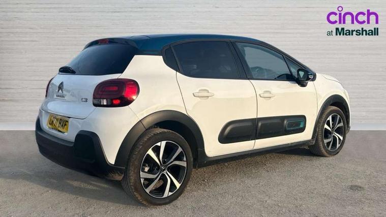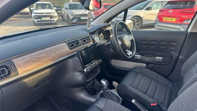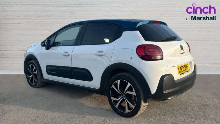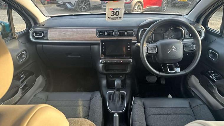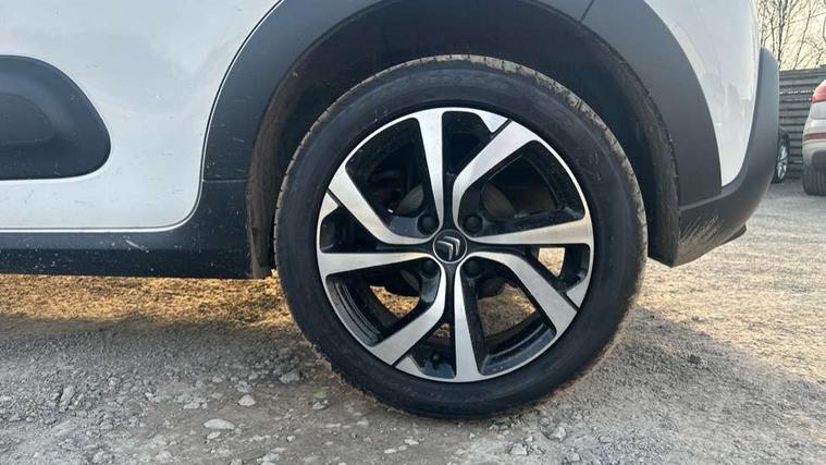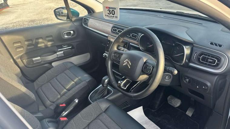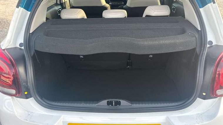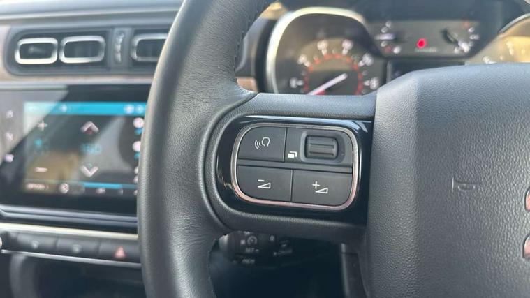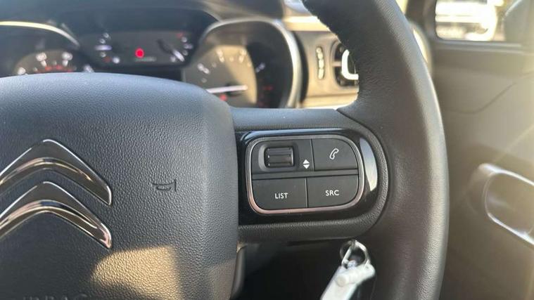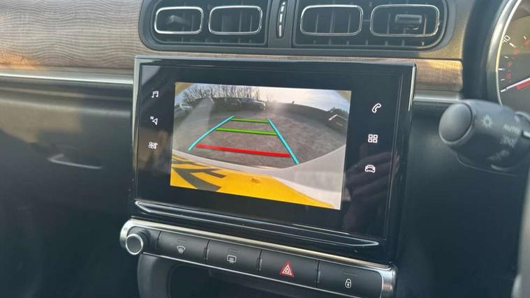 Citroen connect box emergency and assistance system, Coffee Break Alert, Cruise control + speed limiter, Exterior temperature display, Multi function trip computer, Rear parking sensors, Reversing camera, Satin chrome surround instrument cluster with white LCD and analogue gauges, Variable assistance power steering, USB connection, 3D rear light signature, Automatic activation of hazard warning lights, Body colour bumpers, Body colour door handles, Chrome decoration on front face, under chevrons and around daytime running lights, Citroen illuminated signature in LED headlights and LED daytime running lights, Dark tinted tailgate and rear side windows, Electric folding and heated door mirrors, Electrochrome auto dimming interior rear view mirror, Fog lights integrated into front bumper, Front sequential electric windows with one-touch open/close and anti-pinch system, Gloss black finish B pillar, LED Headlights, Rear sequential electric windows with one-touch open/close and anti-pinch system, Rear windscreen wiper with intermittent mode linked to vehicle speed and automatic activation when reverse gear selected, Roof colour rear view mirror caps, 1/3 to 2/3 split folding rear seat, 12V socket, Automatic air conditioning, Boot light, Cloth/leather effect upholstery, Driver and passenger's sun visor with courtesy mirror, Driver's central armrest, Driver's seat height adjustment, Front lighting panel with map reading lights, Front seats adjustable with forward back slide and adjustable backrest, Height adjustable front head restraints, Height/reach adjust steering wheel, ISOFIX mounting on outer rear seats with top tether and labels indicating fixing points, Leather steering wheel with gloss black + satin chrome elements and audio/telephone controls, Leather trimmed gear lever for automatic gearbox with leather effect gaiter and overstitching lever position indicator, Map pockets in back of driver and front passenger seats, Parcel shelf, Seatbelt unfastened on the move audible and visual alert for front and rear seats, Storage space under touchscreen with rubber mat, Three rear seats with head restraints, Upholstered armrest in front and rear doors, Safety pack 1 - C3, Safety Pack 2 - C3 Shine Plus, Shine Technology Pack - C3 Shine Plus, Visibility pack with automatic lights - C3, ABS with Electronic brakeforce distribution and Emergency braking assistance, Driver and front passenger seatbelts with pyrotechnic pretensioners and force limiters, Driver's airbag, Electric child locks, ESP with anti skid system, Front passenger airbag, Front passenger airbag deactivation, Front side airbags + front/rear curtain airbags, Hill start assist, Manual parking brake with leather handle and chrome finish button, Mono-tone horn, Outer rear seats with pretensioners and force limiters, Three rear 3-point seatbelts, Tyre pressure monitoring system, Anti theft alarm, Automatic door and boot locking when moving off with automatic unlocking in case of impact, Central locking with locked indicator and interior one touch lock button, Immobiliser, Remote control central locking with two plip keys, 17" Vector diamond cut alloy wheels, Space saver spare wheel,