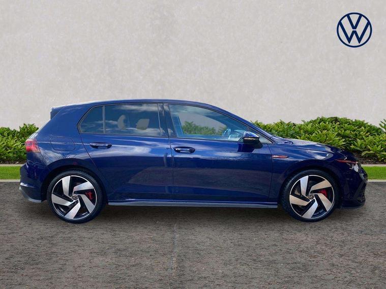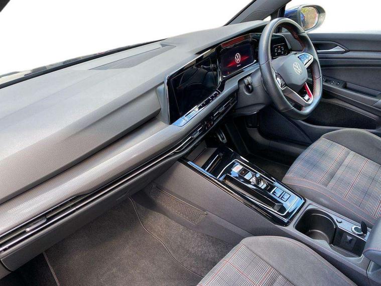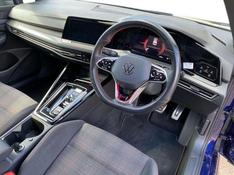 Adaptive cruise control (ACC) with speed limiter and front assist (reacting to vehicles pedestrians and cyclists), Car2X communication, Digital cockpit pro - 10.25" high resolution TFT dash display screen with customizable menus and information, Driver alert system, Dynamic road sign display, eCall - Emergency call service for SOS calls to emergency response, Lane assist, Lane change assistant, Mobile phone interface with wireless inductive charging function, Multifunction camera for distance control, PAS, Speedo, rev counter, electronic odometer, trip, service interval display, exterior temperature and fuel gauge, Start/Stop function, Travel assist with emergency side assist with electrically foldable door mirrors, USB-C ports in the front and rear centre console with increased charging performance, Warning buzzer and light for front seatbelts unfastened, Wireless app connect, Front differential lock, Petrol Particulate Filter, XDS electronic differential lock for improved traction and handling, Premium USB cable in choice of either Apple or Android smartphone compatibility, Ambient lighting, exterior illuminated styling elements at the sides, Auto dimming rear view mirror, Automatic headlamp activation with Coming home and Leaving home feature, Automatic headlights, Body colour bumpers, Body colour door handles, Body colour door mirrors with integrated indicators, Body colour rear roof spoiler, Chrome plated tailpipes (1 either side), Front and rear electric windows, GTI style bumpers, Heat insulating glass windscreen, Heated rear windscreen, High level 3rd brake light, Highway light, Illuminated front grille, IQ.Light - LED Matrix headlights, dynamic headlight control with advanced high beam control matrix dipped main beam + LED DRL + 22 LED lights, LED front fog lights with 5 honeycomb design, LED License plate illumination, LED rear combination lamp inlcuding dynamic turn signal, Rain sensor, Rear fog light on one side and reversing lights on both sides, Rear side wing doors, Rear tinted glass 65% light absorbing from B pillar backwards, Rear windscreen washer and wiper with interval delay, Remote electrically heated, adjustable and foldable door mirrors, including door mirror puddle lights and reverse activated kerb-view adjustment on pa, Welcome light, 12V socket in front centre console, 12V socket in luggage compartment, 3 rear head restraints, 3 seat bench in 2nd row, 3 zone climate with controls in the rear, Aluminium gear knob, Ambient lighting - Customisable 30 colour ambient lighting, Brushed stainless steel pedals, Chrome plated surround to electric mirror button, window switch and air vent surrounds, Drivers and front passengers sun visors with vanity mirrors, Front + rear carpet mats in recycled material, Front centre armrest with storage compartment, Front cupholders x 2, Front passenger seat, Front reading lights x 2 incorporating LED technology, Front seat lumbar support adjuster, Front sports seats, Glovebox, GTI logo on backrest, Height adjustable front seats, Height and reach adjustable steering wheel, Isofix child seat preparation for 2 rear child seats and front passenger seat, Leather wrapped multifunction sports heated steering wheel with red stitiching + paddle shift, Leatherette door armrests and centre armrest, Luggage compartment lighting, Removable luggage compartment cover, Soul black instrument panel, Soul black roof lining, Split folding backrest with centre armrest and unsplit rear seat bench, Woven fabric storage compartments in front and rear doors, 3 point height adj front seatbelts + pretensioners, 3 rear three point seatbelts, ABS, Child locks on rear doors, Driver and front passenger airbag with front passenger airbag deactivation, Drivers and front passengers safety optimised head restraints, Electronic parking brake with auto hold, ESC (Electronic Stability Control), Extended pedestrian protection measures, Front and rear passengers curtain airbag system including front side airbags, Front centre airbag, Front disc brakes, Front side airbags with curtain airbags, Rear disc brakes, Two tone horn, Tyre pressure monitoring system, Alarm with interior protection and deactivation via infotainment system, Electronic engine immobiliser, Keyless entry with start/stop button on centre console, Black metal chrome decorative inserts in dash and front door trim panels, High gloss black centre console,