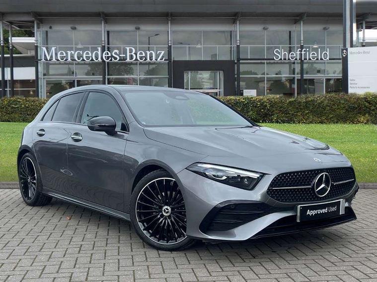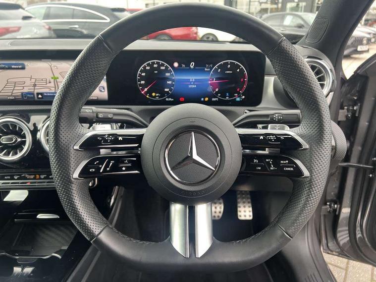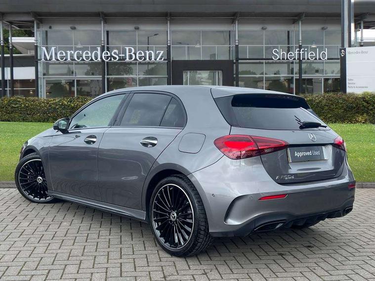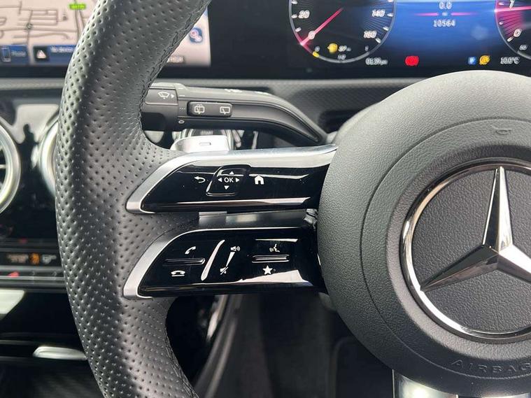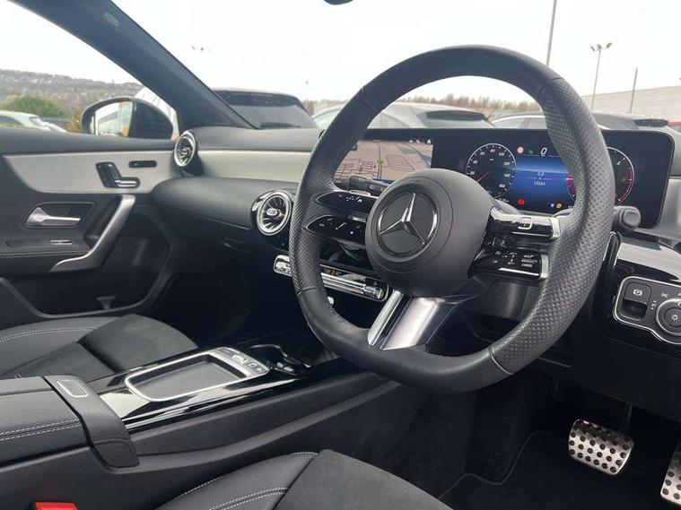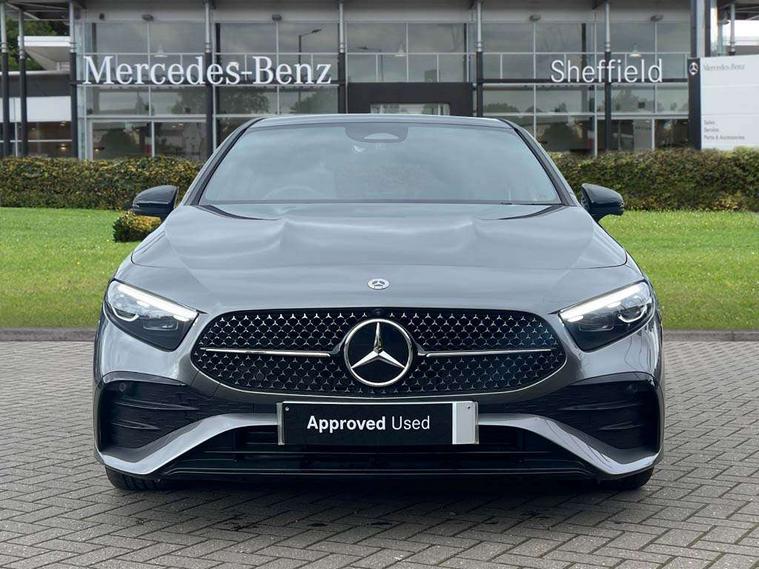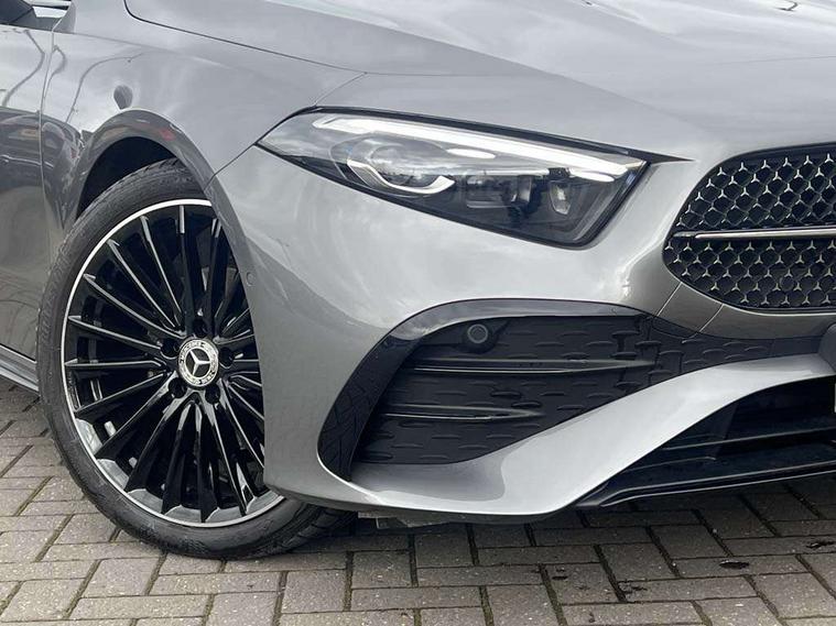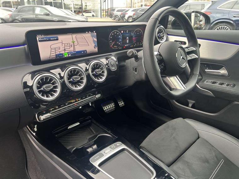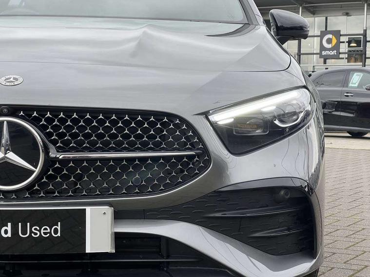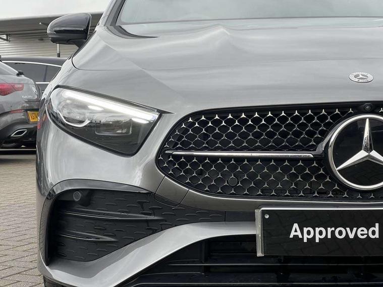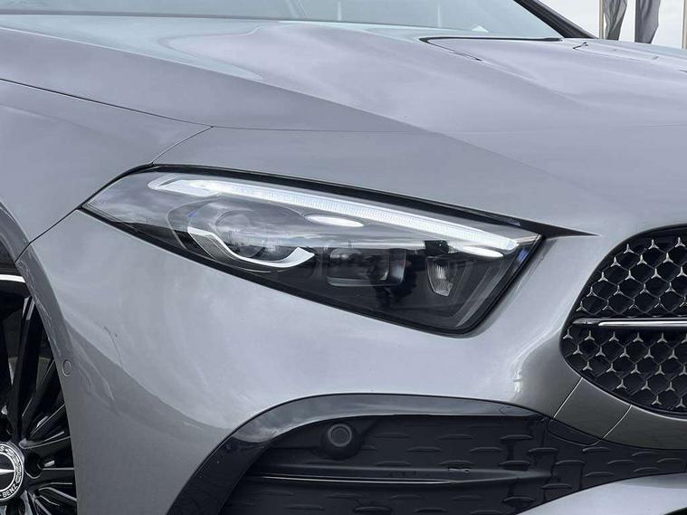 10.25 inch touchscreen central media display, 10.25" Digital instrument cluster display screen, Attention assist, Brake pad wear indicator warning light, Car wash mode, Direct steering, Direction indicators with lane change function, Dual bluetooth interfaces, DYNAMIC SELECT with a choice of driving modes (ECO, Comfort, Sport and Individual), ECO start/stop function, Engine start/stop button, Fingerprint scanner, Fluid level warning indicator for fuel, oil, coolant and washer fluid, Fluorescent jacket for driver, Hard-disk navigation, Head up Display, Hey Mercedes Voice activation, Lamp failure indicator, Mercedes me connect including emergency call system, accident recovery, breakdown and maintenance management, Mercedes me remote services, Outside temperature gauge, Owners manual in English, Pre-installation of private car share, Remote boot closing, Service indicator (ASSYST), Smartphone integration with Apple CarPlay and Android auto, Speed sensitive power steering, Tailgate, Traffic sign assist, Trip computer in multifunction display with current consumption indicator, Wireless charging, Lowered comfort suspension, DAB Digital radio, MBUX multimedia system, Mercedes Benz advanced sound system (225 W) with 10 speakers, 1 central speaker, speakers on doors, a tweeter on door, one sub woofer + boost amplifier, 4 Electric Front and Rear windows, Adaptive brake lights, AMG body styling - AMG front apron with front splitter and AMG rear apron and visible exhaust tailpipe trim elements, Body colour bumpers, Body colour door handles with chrome inserts, Body colour side skirt, Chrome beltline strips, Diamond radiator grille with pins in fine star pattern, Electric adjustable and heated door mirrors with integrated LED side indicators, Exhaust system with 2 visible tailpipe trim elements and rear apron, Headlamp assist automatic headlamp activation, Heated glass rear windscreen + timer control, LED daytime running lights, LED High level third brake light, LED tail lamp, Multibeam LED headlamps with adaptive highbeam assist and cornering function, Panoramic sliding sunroof, Privacy glass, Radio aerial, Rain sensing windscreen wipers with two sensitivity settings, Rear fog lights, Rear side wing doors, Rear windscreen wiper, 3 seat bench in 2nd row, 3 Spoke flat bottom leather multi function steering wheel with perforated leather in grip area, 40:20:40 split folding rear seats, Air conditioning - Two zone thermotronic luxury automatic climate control with display, AMG floor mats, Artico man-made leather/Microcut microfibre upholstery, Automatic child seat recognition sensor, Black air vents with surround in silver chrome, Black roof lining, Brushed stainless steel sports pedals with rubber studs, Electrically adjustable front memory seats including lumbar support and backrest inclination, Front centre armrest with stowage, Front seat backs luggage nets, Galvanished gear shift paddles on steering wheel, Height/reach adjustable steering column, Illuminated Mercedes Benz lettering front door sills with changeable cover, Interior lighting - 64 colour Ambient lighting, Interior mirror with reading lamps in black and frameless, Rear armrest with 2 cupholders, Rear head restraints, Seat occupancy sensor for front passenger seat, Single front passenger seat, Sports seats with integrated headrests, Stowage compartment in centre console with retractable cover, Sunvisors with illuminated vanity mirrors, Twin front cupholders, Light and sight package - A Class, Mirror package - A Class, Night pack - A Class, Parking pack with 360 degree camera - A Class, Seat comfort pack - A Class, USB pack plus - A Class, Winter pack - A Class, 3 rear 3 point seatbelts, ABS with Brake Assist, Active bonnet, Adaptive brake assist with hold function and hill start assist, Bonnet with power domes, Childproof locks manually operated for rear doors and electrically operated for rear power windows, Crash responsive emergency lighting, Driver and passenger head and side airbags, Drivers knee airbag, Dual stage driver/passenger airbags, Electronic parking brake, ESP curve dynamic assist, ESP with ASR, Exit warning, Front and rear seatbelt reminder, Grey seatbelts, ISOFIX and top tether child seat fixing points in two outer rear seats, Tyre pressure monitoring system, Warning triangle and first aid kit, Window airbags, Alarm system/interior protection/immobiliser, Guard 360 degree vehicle protection, Keyless entry lock/unlock, Keyless Go, Remote central locking and crash sensor with emergency opening function, Light longitudinal grain aluminium trim, 19" AMG multi-spoke light alloy wheels, aerodynamically optimised, painted in black with high sheen rim flange, Summer tyres, Tirefit sealant kit,
