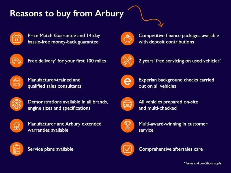 12 months free breakdown cover (or discounted upgrade if you're an AA member) and £75 off a Service & MOT. T&Cs apply