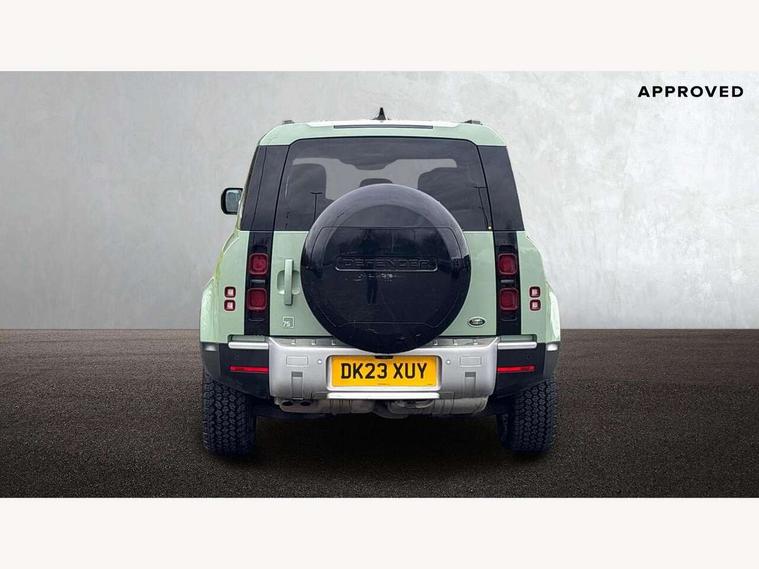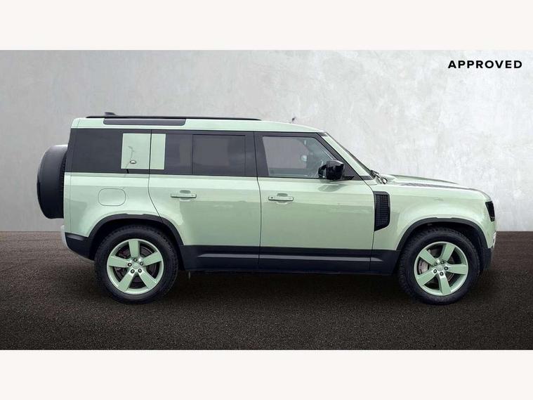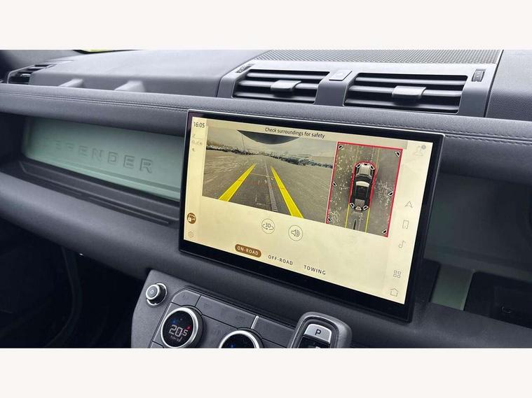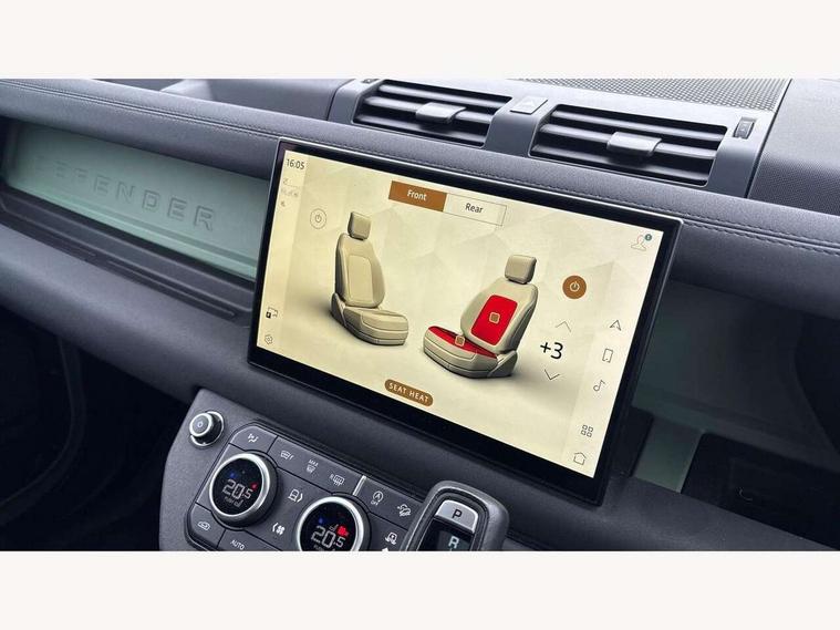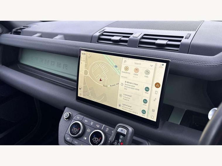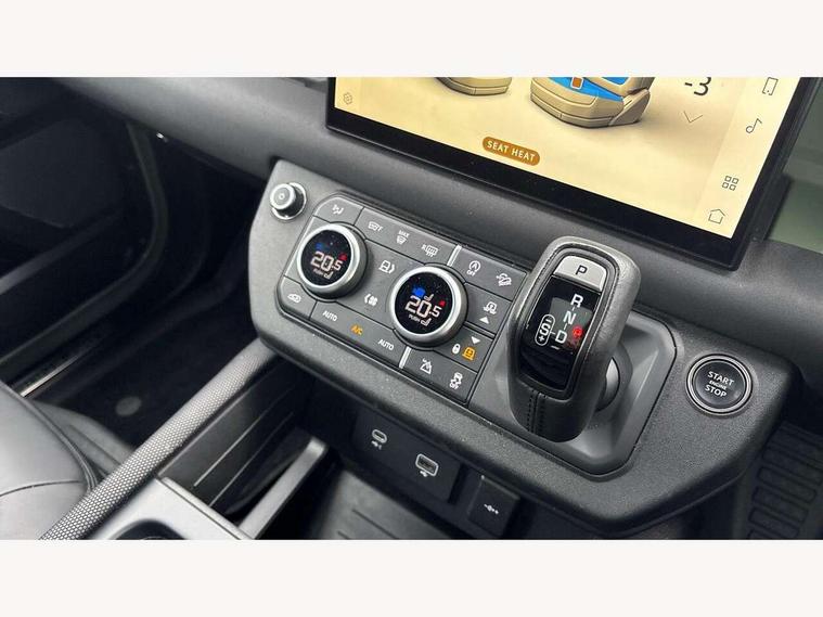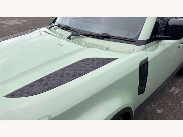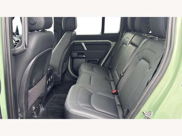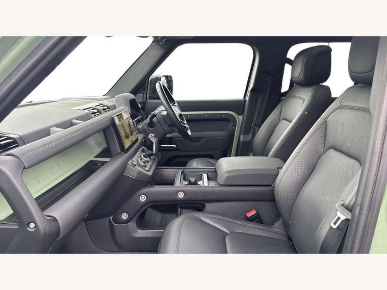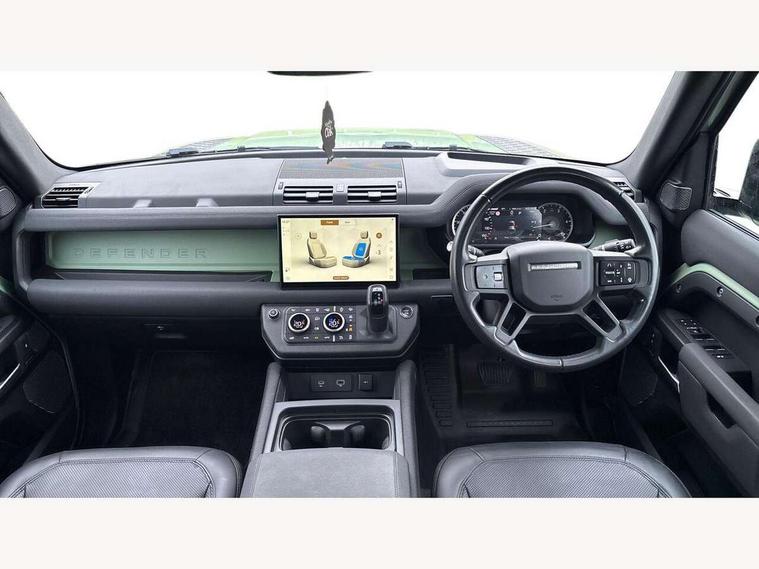 11.4" touchscreen, 360 degree parking aid, 3D Surround Camera with 360 View, 180 Rear View, Front Traffic Detection, Forward Vehicle Guidance, Tow Hitch Assist and clear sight Ground View, Adaptive cruise control, Android Auto, Apple CarPlay, Assisted tailgate with soft close, Blind spot assist, Bluetooth system, Brake pad wear indicator, Clear exit monitor, Connected navigation pro, Driver condition monitor, Electric power assisted steering (EPAS), Head up Display, Instrument panel ends caps with 75 years laser etching, Interactive driver display, Lane keep assist, Push button start, Traffic sign recognition with adaptive speed limiter, Trip computer, Wade Sensing, Wireless device charging with phone signal booster, 8 speed automatic transmission, Adaptive dynamics, Air suspension, All wheel drive system, Electronic active differential with brake torque vectoring, Twin speed transfer box, DAB Radio (Digital Audio Broadcasting), Meridian 400w sound audio system with 11 speakers and subwoofer, Pivi pro connected, 75 Years badge, Automatic headlight levelling, Automatic headlights, Centre high mounted stop light, ClearSight interior rear view mirror, Electric heated/power fold door mirrors with approach lights and auto dimming driver side, Electric windows with one touch open/close and anti-trap, Follow me home lighting, Front fog lights, Grasmere green signature graphic, Heated rear window with timer, Heated washer jets, Heated windscreen, Illuminated treadplates with Defender script, Matrix LED headlights with signature DRL, Metallic paint, Privacy glass, Puddle lights, Rain sensing windscreen wipers, Rear fog lights, Rear wiper, Side hinged tailgate, Trailer stability assist, Twin rear doors, 12V power socket in loadspace, 14 way heated and cooled electric adjustable memory front seats with 4 way manual headrests, 3 seat bench in 2nd row, 40:20:40 folding rear seats with centre armrest, Air quality sensor, Alpine lights, Cabin Air Purification plus, Durable rubber cabin flooring, Durable rubber loadspace flooring, Ebony carpet mats, Ebony morzine headlining, Electric cabin pre conditioning, Footwell lights, Front centre console refrigerator compartment, Heated steering wheel, Loadspace cover, Loadspace Hook, Multifunction steering wheel, Overhead stowage for sunglasses, Premium cabin lighting, Rear headrests, Rear ISOFIX, Rear reading lights, Resist upholstery seats, Single front passenger seat, Standard seat configuration, Storage glovebox, Sunvisors with illuminated vanity mirrors, Three zone climate control, Twin front cupholders, Non-smoker package, Online pack with data plan - Defender, 5 x 3 point seatbelts, ABS, Brake hold function, Cornering brake control (CBC), Cross car beam in grasmere green powder coat finish, Customer configurable autolock, DSC - Dynamic Stability Control, EBD - Electronic brakeforce distribution, Electric parking brake (EPB), Electronic traction control, Emergency brake assist, Emergency braking, ESP + traction control, Front airbags with passenger seat occupant detector, HDC - Hill descent control, Hill launch assist, Low traction launch, Power operated child locks, Remote for (e-Call, Optimised assistance call, InControl app, Climate, beep and flash and door), RSC - Roll stability control, Seat belt reminder, TPMS (Tyre pressure monitoring system), Alarm, Immobiliser, Intrusion sensor, Keyless entry, Locking wheel nuts, 20" 5 spoke alloy wheels with Grasmere green finish - Style 5098, 20" full size alloy spare wheel, All terrain tyres,