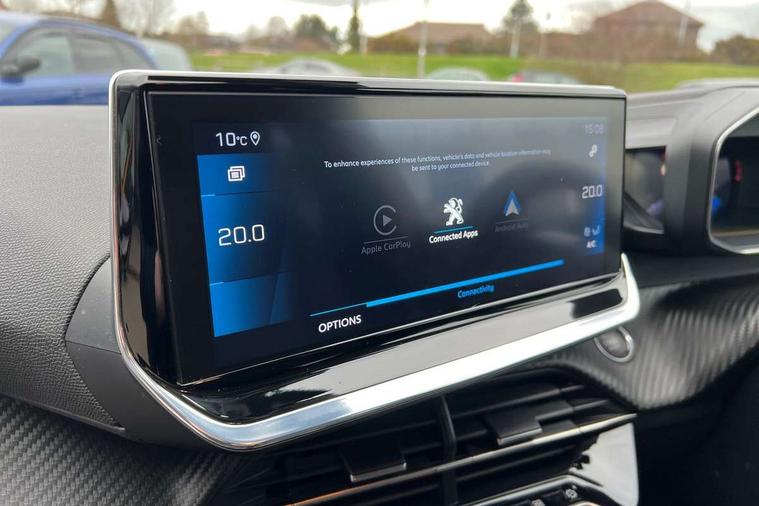 Bluetooth telephone facility, Driver attention warning, Exterior temperature indicator with ice warning, Lane keep assist, Mirror screen with mirror link, apple carplay and android auto, Multi function trip computer, Peugeot connect SOS and assistance, PEUGEOT i-Cockpit with 7" capacitive colour touchscreen, PEUGEOT i-Cockpit with compact steering wheel, PEUGEOT i-Cockpit with configurable 3D headup instrument panel, Programmable cruise control and speed limiter, Push button start, Rear parking sensors, Smart phone docking station, Smartphone charging plate, Speed limit recognition and recommendation, 2 front USB socket with USB-C, 2x USB sockets in rear, 6 speakers radio with mp3 compatible, DAB Digital radio, Voice recognition for radio, navigation and telephony features, 2 X Rear number plate lights, Automatic lights, Automatic windscreen wipers, Body coloured exterior door handles, Colour coded door mirror shells, Dark tinted Rear side and tailgate windows, Diamond black rear spoiler, Electric front windows + one touch + anti-pinch, Electric rear windows with one touch/anti-pinch, Electrically adjustable, heated and power folding door mirrors, Electrochrome rear view mirror, Follow me home headlights, Front windscreen wiper with magic wash cleaning system, Gloss black finish on B pillar, Gloss black rear cluster connecting strip, Headlights left on audible warning, Model designation badges front and rear, Radiator grille chrome chequered, Rear bumper with gloss black finish, Rear full LED 3D peugeot signature claw effect lights with daylight function, Rear reversing lights, Rear windscreen wiper triggered automatically in reverse gear, Tailgate with heated rear windscreen and wiper blade, 1/3 to 2/3 split folding rear seats, 12V socket, Driver and front passenger comfort seats, Driver and front passenger seat manual adjustment in longitudinal and back rest angle, Driver seat mechanical height adjustment, Dual zone electronic climate control, Electric power steering with reach and rake adjustable steering column, Front centre armrest with storage compartment, Front interior light with 2 reading spotlights, Gear shift indicator, High centre console with 2 cup holders, Leather steering wheel, Map pockets on the backs of the front seats, Piano keys gloss black plated toggle switches to access main functions of the vehicle, Roof lining - light grey, Satin chrome gear lever, Seatbelt unfastened on the move audible and visual alert for front and rear seats, 2x 2nd row ISOFIX child seat mountings, 3 rear 3 point seatbelts, ABS (Anti-lock Braking System) with EBD (Electronic Braking Distribution) and EBA (Emergency Braking Assistance), Child locking functionality on rear doors, Driver and passenger airbags with Passenger airbag deactivation system, Driver/front passenger side airbags, Electric parking brake, ESP with Hill Assist, Front and rear curtain airbags, Front and rear disc brakes, Front optimised safety headrests and 3 x rear retractable headrests with height adjustable, Front three point retractable seatbelts with force limiters, Pedestrians active safety brake, Tyre pressure sensor, Automatic door locking when moving off, Automatic hazard light activation upon heavy brake application, Deadlock, Electronic code immobiliser, Thatcham Cat.1 alarm, Carbon effect Dashboard, front and rear door panel finish, 17" Jordaan diamond cut alloy wheels, Space saver spare wheel,