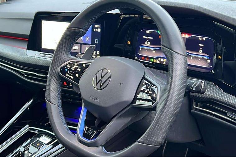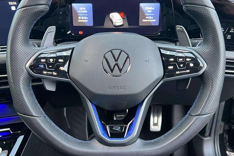 Adaptive cruise control (ACC) with speed limiter and front assist (reacting to vehicles pedestrians and cyclists), Car2X communication, Digital cockpit pro - 10.25" high resolution TFT dash display screen with customizable menus and information, Driver alert system, Dynamic road sign display, eCall - Emergency call service for SOS calls to emergency response, Lane assist, Lane change assistant, Mobile phone interface with wireless inductive charging function, Multifunction camera for distance control, PAS, Speedo, rev counter, electronic odometer, trip, service interval display, exterior temperature and fuel gauge, Start/Stop function, Travel assist with emergency side assist with electrically foldable door mirrors, USB-C ports in the front and rear centre console with increased charging performance, Warning buzzer and light for front seatbelts unfastened, Wireless app connect, 4Motion 4 wheel driver, Front differential lock, Petrol Particulate Filter, XDS electronic differential lock for improved traction and handling, Premium USB cable in choice of either Apple or Android smartphone compatibility, ''R' name plate, Ambient lighting, exterior illuminated styling elements at the sides, Auto dimming rear view mirror, Automatic headlamp activation with Coming home and Leaving home feature, Automatic headlights, Body colour bumpers, Body colour door handles, Body colour rear roof spoiler, Front and rear electric windows, Heat insulating glass windscreen, Heated rear windscreen, High level 3rd brake light, Highway light, Illuminated front grille, IQ.Light - LED Matrix headlights, dynamic headlight control with advanced high beam control matrix dipped main beam + LED DRL + 22 LED lights, LED front fog lights with 5 honeycomb design, LED License plate illumination, LED rear combination lamp inlcuding dynamic turn signal, Matt chrome effect door mirrors with integrated indicators, Performance rear spoiler, Rain sensor, Rear fog light on one side and reversing lights on both sides, Rear side wing doors, Rear tinted glass 65% light absorbing from B pillar backwards, Rear windscreen washer and wiper with interval delay, Remote electrically heated, adjustable and foldable door mirrors, including door mirror puddle lights and reverse activated kerb-view adjustment on pa, Welcome light, 12V socket in front centre console, 12V socket in luggage compartment, 3 rear head restraints, 3 seat bench in 2nd row, 3 zone climate with controls in the rear, Aluminium gear knob, Ambient lighting - Customisable 30 colour ambient lighting, Brushed stainless steel pedals, Chrome plated surround to electric mirror button, window switch and air vent surrounds, Drivers and front passengers sun visors with vanity mirrors, Front + rear carpet mats, Front centre armrest with storage compartment, Front cupholders x 2, Front passenger seat, Front reading lights x 2 incorporating LED technology, Front seat lumbar support adjuster, Front sports seats, Glovebox, Height adjustable front seats, Height and reach adjustable steering wheel, Isofix child seat preparation for 2 rear child seats and front passenger seat, Leatherette door armrests and centre armrest, Luggage compartment lighting, R leather wrapped multi function sports heated steering wheel with extended paddle shift, Removable luggage compartment cover, Soul black instrument panel, Soul black roof lining, Split folding backrest with centre armrest and unsplit rear seat bench, Woven fabric storage compartments in front and rear doors, R styling pack - Golf, 3 point height adj front seatbelts + pretensioners, 3 rear three point seatbelts, ABS, Blue brake callipers in front with R logo, Child locks on rear doors, Driver and front passenger airbag with front passenger airbag deactivation, Drivers and front passengers safety optimised head restraints, Electronic parking brake with auto hold, ESC (Electronic Stability Control), Extended pedestrian protection measures, Front and rear passengers curtain airbag system including front side airbags, Front centre airbag, Front disc brakes, Front side airbags with curtain airbags, Rear disc brakes, Two tone horn, Tyre pressure monitoring system, Alarm with interior protection and deactivation via infotainment system, Electronic engine immobiliser, Keyless entry with start/stop button on centre console, Carbon grey decorative inserts in dash and front door trim panels, High gloss black centre console, Tyre mobility kit Includes 12V compressor and tyre sealant,