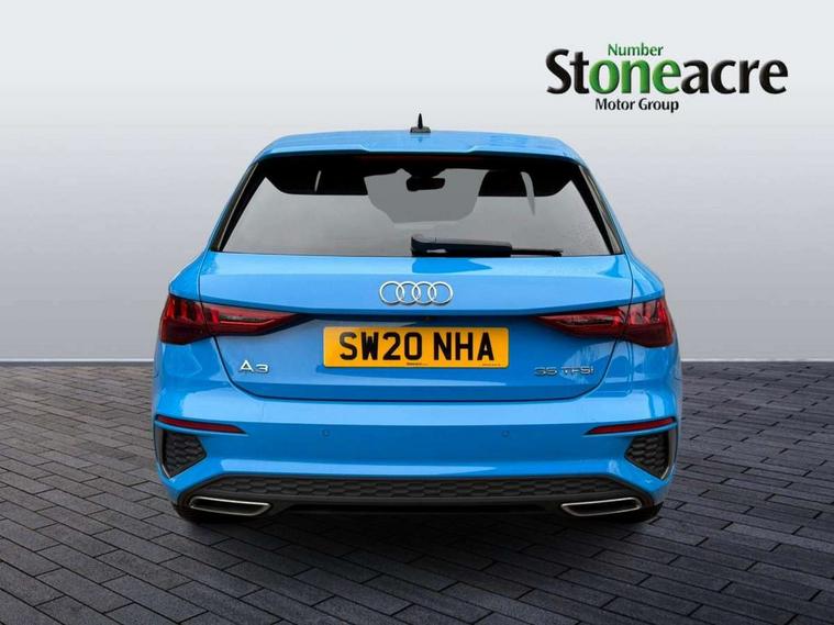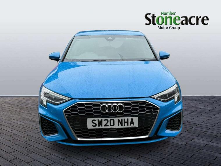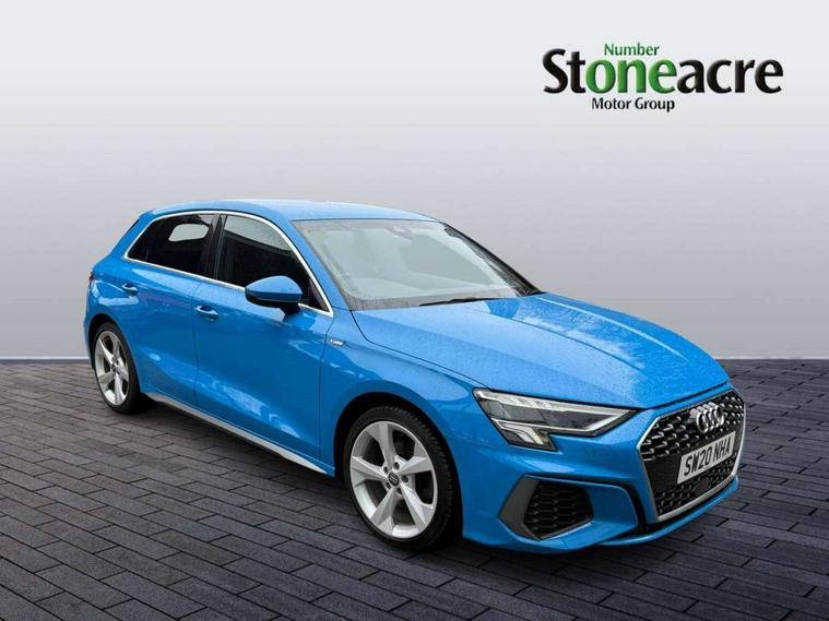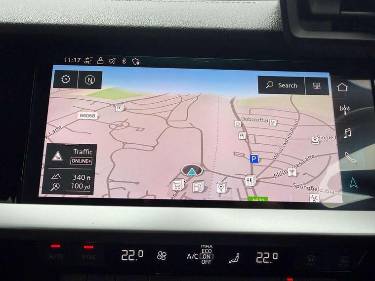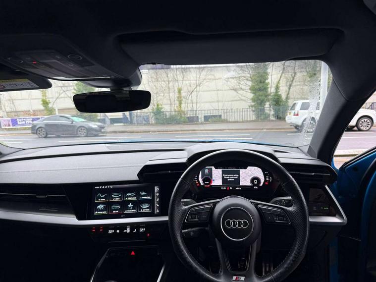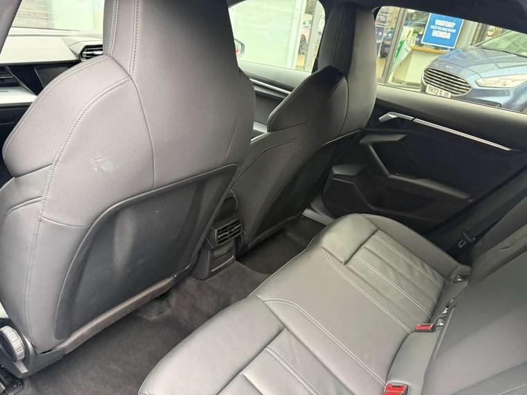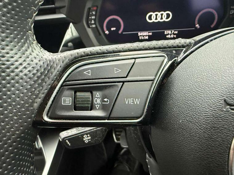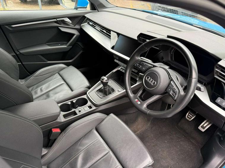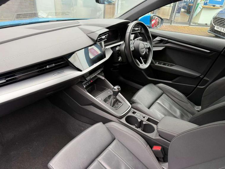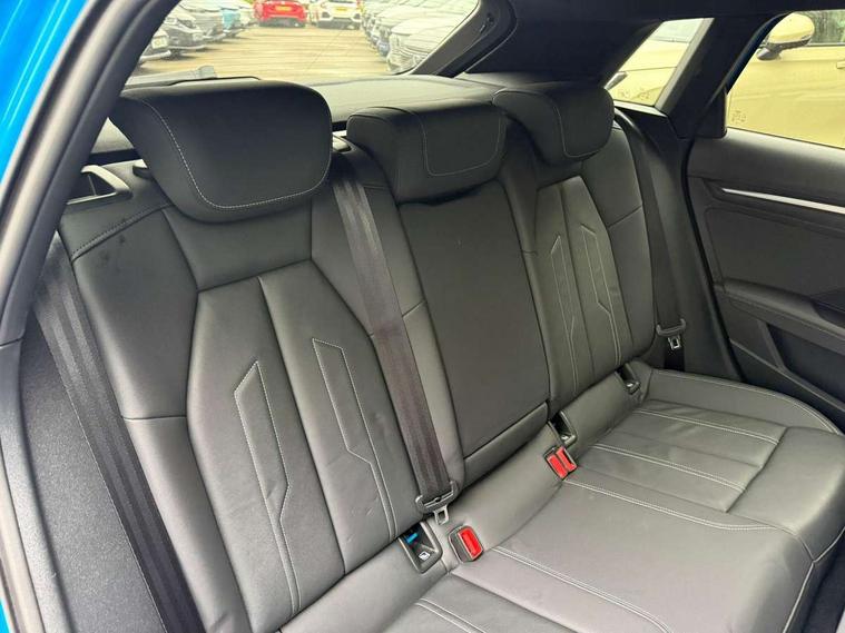 Audi connect emergency call and service, Audi drive select (Auto, Comfort, Dynamic, Efficiency and Individual), Audi smartphone interface, Audi Virtual Cockpit - 10.25" digital and colour instrument cluster, Automatic start/stop system with recuperation, Bluetooth interface, Collision avoidance assistant, Cruise control, Electromechanical power speed sensitive steering, Lane departure warning system, MMI Navigation Plus with high resolution 10.1" colour touch screen display, Rear parking sensors, Service indicator, Trip computer, Voice control system with natural language interaction, 1xUSB-A and 1xUSB-C connection, 6 passive loudspeakers, DAB Digital radio, Acoustic glass windscreen, Aluminium window trim, Auto dimming frameless rear view mirror, Body colour exterior mirrors, Electrically adjustable/heated/folding/dimming door mirrors with kerb view includes integrated LED indications + kerb view function for passenger side, Front electric windows, Illuminated aluminium inserts front door sills with S logo, LED daytime running lights, Light and rain sensors, Privacy glass - dark tinted rear window, rear door and side windows, Rear electric windows, Rear side air outlets in grained matt black, Rear wiper, S line bumpers, S roof spoiler, 12V socket and storage compartment in front centre console, 40/20/40 split folding rear seat bench with cupholder, Black cloth headlining, Dual zone electronic climate control, Front and rear centre armrest in leather, Front and rear headrests, Front/rear floor mats, Height and reach adjustable steering wheel, Interior lighting - glove compartment light and right hand side, Luggage compartment floor covering, Manual boot compartment lid, Manually adjustable front seats, Seat side bolsters, Stainless steel pedals and front footrest, Twin leather upholstery with front sports seats S embossed logo, Aluminium interior elements pack - A3 Sportback, S line styling pack - A3 Sportback, 3x3 point rear seat belts, Driver and front passenger airbag with passenger airbag deactivation, Electronic Stabilisation Control (ESC) including ABS, ASR and EDL, First aid kit with warning triangle and 2 safety vests, Hill hold assist, Pre-sense front with pedestrian and cyclist detection, Seatbelt monitoring, Tyre pressure loss indicator, Anti theft alarm, Anti-theft wheel bolts, Electronically operated child lock, Immobiliser, Remote control central locking, Accent surfaces in the dashboard and centre console in platinum grey silk effect paint finish, Dark spectrum aluminium inlays,