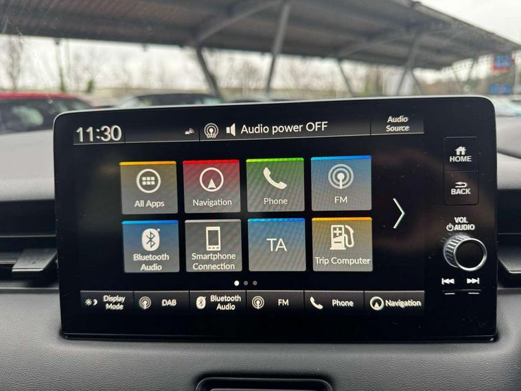7" TFT instrument cluster, Adaptive cruise control, Adjustable speed limiter, Agile handling assist, BLIS (Blind Spot Information System) with Cross Traffic Monitor, Bluetooth hands free telephone connection, Drive modes select (Eco, normal and sport), eCall emergency system, Electric power steering, Emergency stop signalling system, Forward collision warning, Front parking sensors, Handsfree power tailgate with walkaway close, Honda CONNECT with navigation, 9" touchscreen, AM/FM/DAB/Apple Carplay and android auto, Idle stop, Intelligent speed limiter, Lane departure warning, Lane keep assist, Low speed following, Multi info display, Power meter, Rear parking sensors and rear view camera, Road departure mitigation, Tachometer, Traffic sign recognition, WiFi connectivity, Vehicle stability assist, 'Shark fin' mobile antenna, 2 USB sockets in rear, 2x USB Front socket (1 data & 1 charge), 4 speakers + 2 tweeters, Steering wheel mounted remote controls, Auto dimming rear view mirror, Auto folding door mirrors, Auto high beam, Automatic coming home lighting, Automatic headlights, Automatic rain sensing wipers, Body colour bumpers, Body colour tailgate spoiler, Body coloured door handles, Electric front and rear windows, Electrically adjustable and heated door mirrors, Exclusive styling in lower bumper black, Fog garnish paint emblem gray black lower door garnish with silver accent, Bumper skid garnish sharp silver, Front sequential turn, Front wiper de-icer, Headlight washers, Heated front windscreen, Heated rear window, High gloss side window surrounds, High level third brake light, LED daytime running lights, LED front fog lights, LED headlamps, Manual headlight levelling, Rear side wing doors, Rear wiper, Red and clean lens LED rear lights, Retractable/reverse auto tilt door mirrors, Variable front intermittent wipers, Windscreen shadeband, 3 rear headrests, 3 seat bench in 2nd row, 60/40 split folding rear seat, Ambient interior lighting, Cargo net hooks, Courtesy lights, Driver seat back pocket, Driver's seat height adjustment, Driver/passenger sunvisors with illuminated vanity mirrors, Dual automatic air conditioning, Front and rear map reading lights, Front head restraints, Front seat armrests, Heated front seats, Heated steering wheel, Isofix points, Luggage area under floor storage box, Magic seat flexibility system, Manual height/reach adjust steering wheel, Meter illumination light, Paddle shift controls, Passenger seat back pocket, Rear centre armrest, Rear ventilation, Silver interior door handles, Silver interior panels, Single front passenger seat, Smooth leather steering wheel, Tonneau cover, Trunk light, 3x3 point rear seatbelts, ABS+EBD+Brake assist, Anti-whiplash front headrests, Auto hold function, Collision mitigation braking system, Collision mitigation throttle control, Deflation detection system, Dual front SRS airbags, Electric child locks, Electronic parking brake, Front and rear curtain airbags, Front and rear safety belts with Emergency Locking Retractor, Front side airbags, Hill descent control, Hill start assist, Low speed safety system, Paddle deceleration control, Passenger SRS airbag cut-off device, Regenerative braking system, Door deadlocks, Honda super locks, Immobiliser, Keyless smart entry with push button start, Mirrors and windows key fob operation, Remote central locking with 2 remote folding keys, Security alarm, Tyre repair kit,
