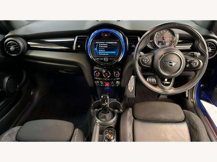 Compatible mobile phone bluetooth with audio streaming, Cruise control with brake assist, Instrument cluster, Mini E-call, MINI TeleServices, On board computer, Service interval indicator, Performance Control, Steptronic transmission with double clutch, 6.5" touchscreen with LED ring, FM tuner and DAB digital radio, Automatic headlight activation switch, Body colour fuel filler cap, Chrome border high gloss black slats radiator grille, Dynamic brake lights, Electric front windows, Heated rear window, Heated windscreen washer jets, John Cooper Works - aerodynamic kit (front and rear apron, spoiler), front and rear sport bumpers and part-painted side sills with door sill finishers, John Cooper Works Logo, John Cooper Works rear spoiler, LED headlight with closed ring and daytime driving lights, Left exhaust tailpipe with chrome finisher, Metal door sill strips with MINI imprint, Model logo Cooper on right of tailgate, Rain sensor window wipers, Rear fog lights, Rear LED lights with union jack design, Rear window wiper, Side scuttle panel with integrated indicator, Sun/heat protection glass, White indicator lenses, 12V Accessory socket in centre console, 4 lashing eyes in luggage compartment, 60/40 split folding rear seat, Chrome interior highlights, Cupholders, Front and rear isofix with front passenger airbag deactivation, Glove compartment, Height and length steering column adjustment, Interior lighting with 12 basic colours selectable via toggle switch in roof, John Cooper Works leather steering wheel with contrasting stitching in Chilli Red with John Cooper Works logo, Leather gearshift lever and handbrake gaiters, Manual air conditioning, Mechanical seat adjustment, driver seat height adjust, forward/back and front seats backrest, Mini logo projection on floor from drivers exterior mirror, Multifunction steering wheel, Satellite grey headlining, Storage compartments in doors, Sunvisors with vanity mirrors, 3 point seatbelts on all four seats, 6 Airbags - front, side, head and seat belt tensioners, Anti-lock braking system (ABS), DSC - Dynamic Stability Control, Front and rear disc brakes, Hill start assist, Single tone fanfare horn, Tyre pressure monitoring system, Alarm system with tilt sensor, monitoring doors, bonnet interior and tailgate, Electronic vehicle immobiliser, Start/stop toggle with keyless go, Tool kit,