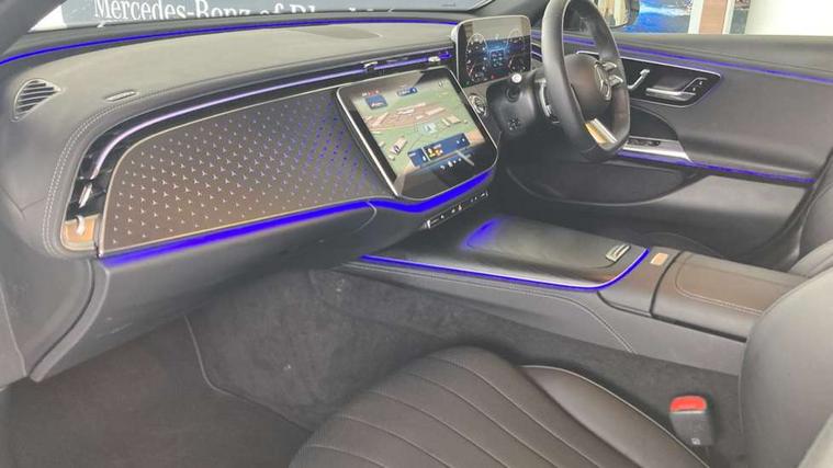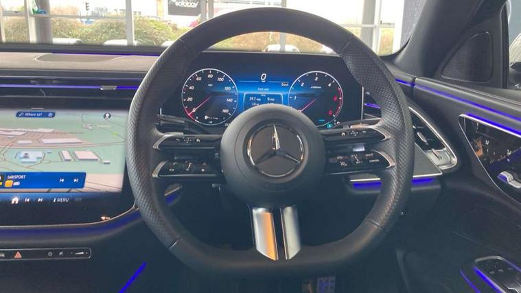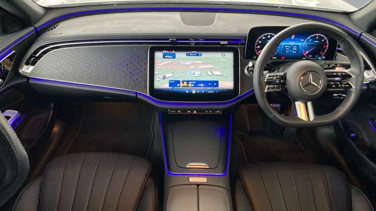 12.3" Driver display screen, 14.4" central media display, 5G Communications module, Attention assist, Augmented reality navigation, Blind spot assist, Brake wear warning display, Direct steer speed sensitive steering, ECO start/stop function, Emergency call assistance, Evasive manoeuvre support, Fluorescent jacket for driver, Hard disc navigation, Head up Display, MBUX navigation premium, MBUX voice control, Mercedes connect me, Outside temperature display, Preinstallation for live traffic, Remote Services Premium, Service indicator (ASSYST), Status display for rear seat belts in instrument cluster, Trip computer in multifunction display showing current fuel consumption, Wireless charging, Wireless smartphone integration with Apple CarPlay and Android auto, 48V Mild hybrid technology, 66 litre fuel tank, 9G TRONIC automatic transmission, Agility control suspension with selective damping and lowering, Bluetec emission control, Diesel particulate filter, Integrated starter generator Gen 2, Sporty engine sound system, DAB Digital radio, Preinstallation for MBUX Entertainment Plus, 3rd brake light, Adaptive brake lights, Aerial integrated in rear window, AMG bodystyling, Auto dimming driver's door mirror, Auto dimming rear view mirror, Black radiator grille, Digital air vent control, Electric folding door mirrors, Electric windows with one touch opening/closing and obstruction sensors, Electrically adjustable and heated door mirrors, Heat insulating privacy glass, LED daytime running lights, LED digital light with adaptive highbeam assist plus, Pre-installation for roof rail systems, Rear boot, Rear side wing doors, Surround lighting with logo projection, 3 seat bench in 2nd row, 4 way lumbar support, Ambient lighting, AMG brushed stainless steel sports pedals with rubber studs, AMG floor mats, AMG line interior, Automatic child seat recognition sensor, Central stowage compartment with USB socket for use with Android Auto and Apple CarPlay, Comfort seats, Courtesy lights in rear grab handles with reading light functionality, Folding rear seat backrest, Front centre armrest with stowage compartment, Glove compartment - lockable, air conditioned and illuminated, Head restraints for driver and front passenger (four-way adjustability) and in rear (two-way), Heated front seats, Illuminated door sills, Multifunction sports steering wheel in nappa leather, Roof liner in black fabric, Seat occupancy sensor for front passenger seat, Single front passenger seat, Sunvisors with illuminated vanity mirrors, Thermotronic 4 zone climate control, Leather package - E Class, Memory package - E Class, Parking package with 360 degree camera - E Class, USB plus package - E Class, 3x3 point rear seatbelts, Active bonnet pedestrian safety measure which detects an impact and raises bonnet, Adaptive brake system with HOLD function and brake drying in the wet, Anti-lock braking system (ABS), Automatic front passenger airbag deactivation, Central airbag, Childproof locks manually operated for rear doors and electrically operated for rear power windows, Driver and adaptive front passenger airbags, Electronic parking brake, Electronic Stability Programme, Hill start assist, ISOFIX child seat attachment points two outer rear seats, Knee airbags, Pedestrian protection, Pre-Safe anticipatory safety system, Tyre pressure monitoring system, Warning triangle and first aid kit, Window airbags, Alarm system with interior monitoring, Central locking with interior switch, automatic locking and crash sensor with emergency opening function, Dashcam, Digital vehicle key, Guard 360 degree vehicle protection plus, Increased anti theft protection, Keyless Go, Urban guard vehicle protection plus, Open pore black ash backlit wood trim with laser cut Mercedes Benz star pattern and open pore black ash wood centre console, 19" AMG 5 twin spoke alloy wheels, Summer tyres, Tirefit,