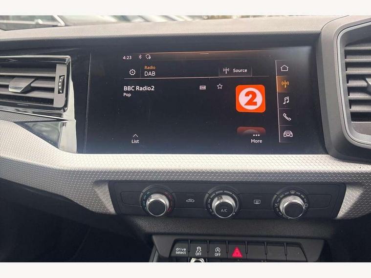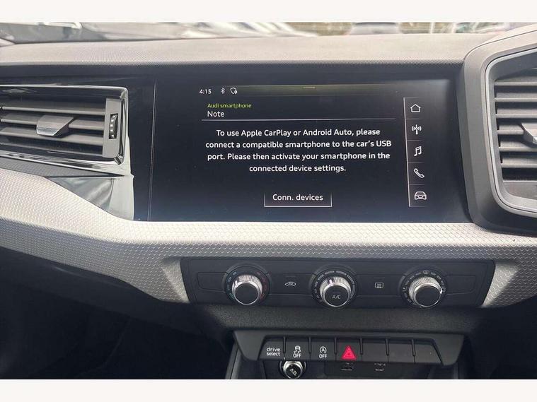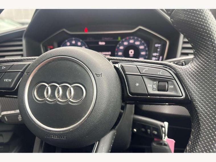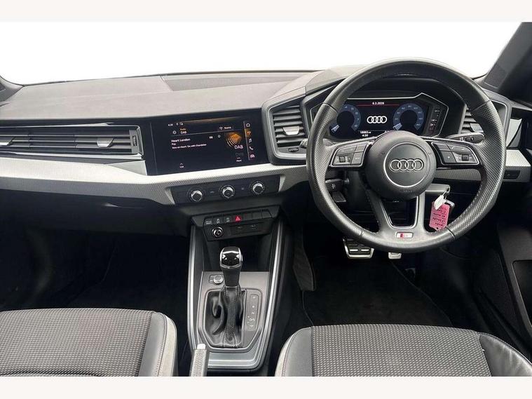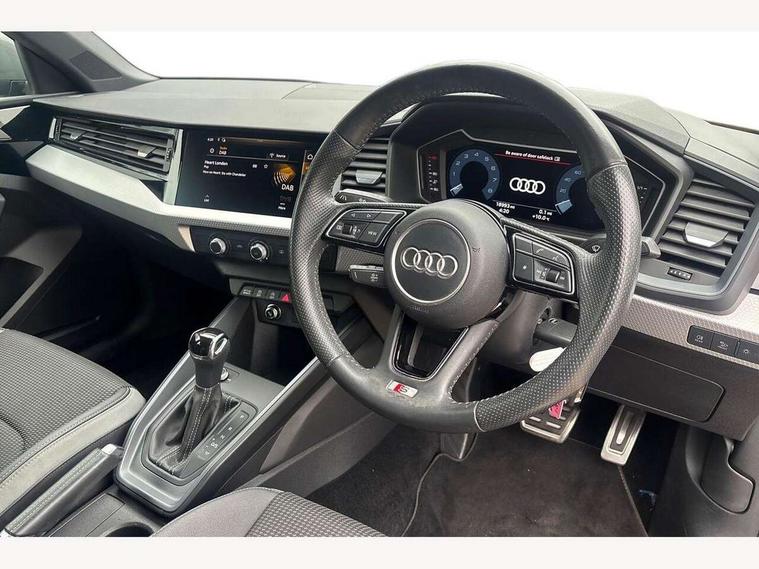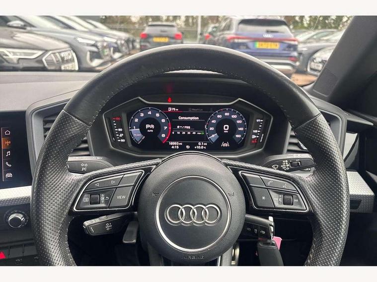 10.25" Digital instrument cluster display classis style instrument dials + speed, odometer, time, outside temperature, telephone menu + fuel level warning, Audi connect safety emergency and service including E-call, Audi drive select - power steering assistance + engine + gear shift 3 preset modes (auto, dynamic, efficiency and an Individual mode), Audi smartphone interface with connect compatible smartphone via USB directly MMI display + Nav, music, third party apps controlled via MMI controller, Automatic start/stop system, Bluetooth interface, Cruise control, Driver's information system, Electromechanical power steering, Lane departure warning system, Rear parking sensor, Service interval indicator, Speed limiter, Voice control system, Washer fluid level indicator, Sports suspension, 1 x SDXC card reader, 1 x USB type C and 1 USB type A charging points, DAB Digital radio, MMI radio plus with 8.8" colour MMI display screen and MMI touch, Auto dimming rear view mirror, Body coloured door mirrors, Door sills with aluminium inlays and S Line logo, Electric front and rear windows, Electrically adjustable, heated, folding door mirrors with integrated LED side indicator, Front side air inlets in grained matt black and C frame in titanium black, Heat insulating glass windscreen and side windows, Heated rear windscreen, LED headlights with LED rear lights + dynamic rear indicators + headlight adjustment and high beam, turning light + LED daytime running lights, Radiator grille and rear diffuser in matt titanium black, Radiator protective grille frame in matt aluminium silver, Rain and light sensors, Rear fog lights, Rear wiper, S line badges on front wings, Side front spoiler lips in grained matt black, 12V socket in centre console with two cup holders, 3 rear seats with headrests, 40:60 Split folding rear seat or folded fully, Black cloth headlining, Driver and passenger seat with manual height adjust with forward and backwards adjustment, Front and rear black floor mats with contrast stitching in fine silver, Front head restraints, Height and reach adjustable steering wheel, ISOFIX child seat mounting for front passenger and outer rear seats including top tether attachment point of outer rear seats, Leather gear knob with aluminium trim, Luggage compartment light with front and rear reading lights, Manually adjustable lumbar support in front seats, Stainless steel pedals, LED interior lighting pack - A1, Luggage compartment pack - A1, S line exterior styling pack - A1 Sportback, 3x3 point rear seatbelts, Audi pre-sense front with pedestrain and cyclist recognition, Brake assist function, Driver and front passenger airbag with front side and head airbags, Electronic Stability Control including ABS, EBD, ASR and EDL, Front and rear seatbelt reminder, Front passenger airbag deactivation switch, Hill hold assist, Seatbelt height adjustment for front seats, Seatbelt monitoring, Tyre pressure warning light, Warning triangle and first aid kit, Anti theft alarm, Anti theft wheel bolts and loose wheel warning, Immobiliser, Remote central locking with 2 foldaway keys, Aluminium trim for control switches, air vents and digital instrument cluster, Silver grey inlays polygon structure in diamond paint finish, Structured grey accent areas including air vents, door handle recesses and centre console in quartz paint finish,