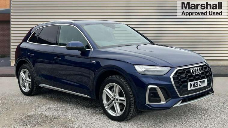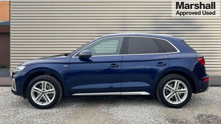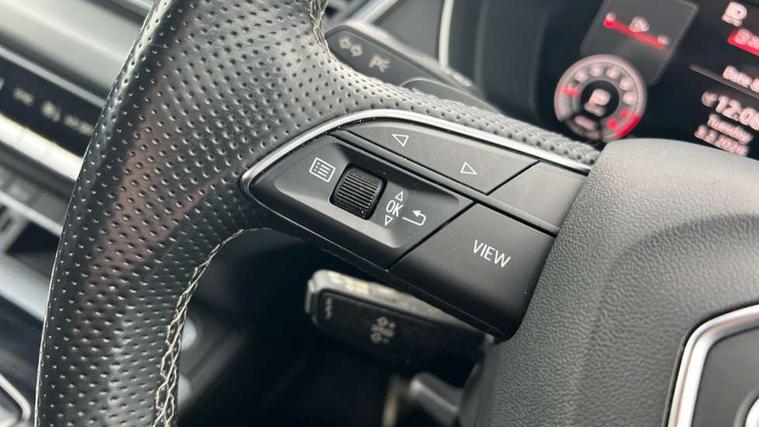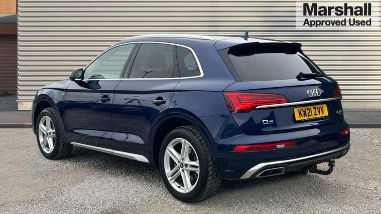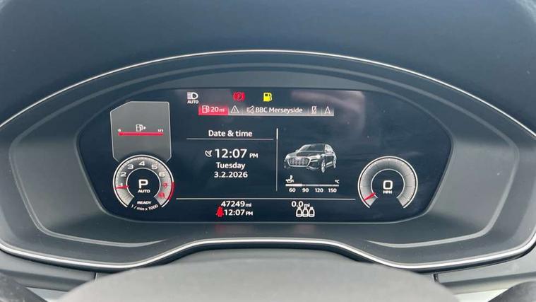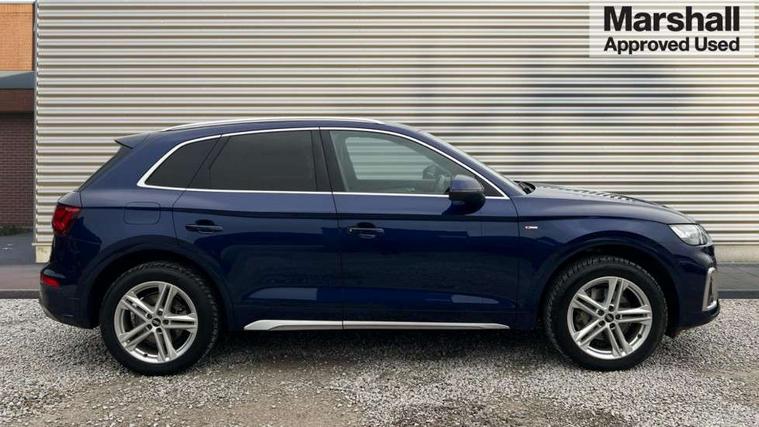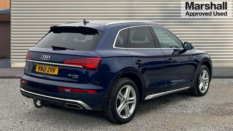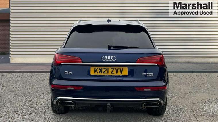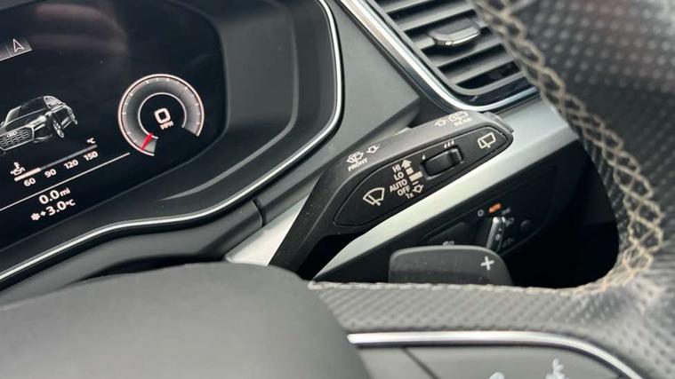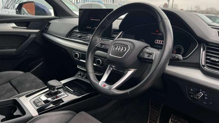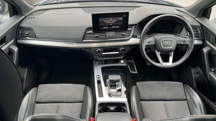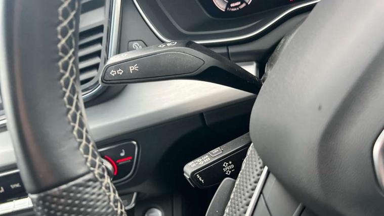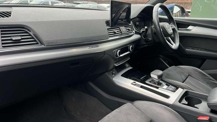 Audi connect safety and service (e-call), Audi connect with Amazon Alexa Integration, Audi drive select, Audi virtual cockpit plus with 12.3" screen and three different layout designs, Audi wireless smartphone interface, Automatic start-stop system with coasting functionality and efficiency programme, Bluetooth interface, Electro - mechanical power assisted steering, MMI navigation plus with 10.1" touch screen, Power tailgate, Reversing camera, Service interval indicator, Voice control system with Audi hotword activation "Hey Audi", Quattro on demand, S line sports suspension, DAB Digital radio, Acoustic windscreen, Aluminium roof rails, Audi matrix LED headlights with dynamic front and rear indicators, Auto dimming rear view mirror, Automatic headlights and windscreen wipers, Body colour bumpers, Body colour door mirrors, Body colour rear diffuser with matt aluminium silver surrounds, Body colour underbody protection, Chrome plated exhaust trims, Door sills in Selenite silver, Electric adjustable/heated/folding door mirrors, Front air inlet surrounds in aluminium, Front and rear electric windows, Front radiator grille in honeycomb design, Headlight washers, Lower bumpers painted in contrast Manhattan grey, Rear chrome trim strip below lights, Rear privacy glass and rear side windows, Rear spoiler, Rear wiper, Roof bars, S Line badges on the front wings, S Line front and rear bumpers, S Line side skirts, 2 x USB charging port with aux input socket, 3 rear headrests, 40:20:40 split folding rear seat with rear centre armrest, Black cloth headlining, Comfort front centre armrest, Contrast stitching on seats, steering wheel and gear lever gaiter, Deluxe 3 zone electronic climate control, Front/rear floor mats, Gear lever in black leather, Heated front seats, Height adjustable front head restraints, Height/reach adjustable steering column, Illuminated door sill trims with S logo, ISOFIX child seat mounting and top tether, Luggage compartment cover, Manual seat adjustment with 4-way electric lumbar support, Removable luggage compartment floor, Stainless steel pedals, Sunvisors with vanity mirrors, High gloss pack - Q5, LED interior light pack - Q5, 3 point seatbelts on all seats, 6 airbags - Driver, front passenger, curtain and side airbags, Electrically operated child locks on rear doors, Electromechanical parking brake, Electronic stabilisation control including ABS, ASR and EDL, Front passenger airbag deactivation, Hill descent control, Hill hold assist, Multi collision brake assist, Pop-up bonnet for pedestrian protection, Pre sense city, Seat belt force limiter, Seatbelt monitoring, Tyre pressure warning, Warning triangle and first aid kit, Anti theft alarm, Anti-theft wheel bolts, Keyless Go access/ignition system, Matt brushed aluminium inlays,