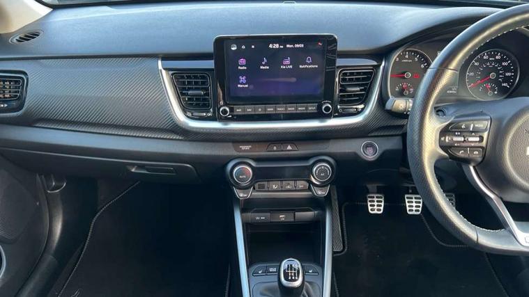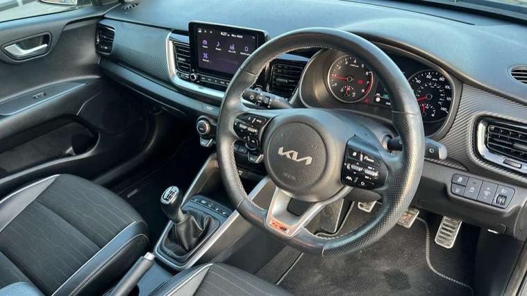 4.2" supervision colour cluster display, 8" touchscreen navigation, Apple car play/Android Auto with voice control, Blind spot collision warning, Cruise control + speed limiter, Drive mode selector, Electric power steering, Emergency call service, Emergency stop signalling system, External temperature display, Forward Collision-Avoidance Assist (FCA) - City/Pedestrian/Cyclist, Front parking sensors, Intelligent speed limit assist, Kia connected services featuring TomTom live, Lane keeping assist system (LKAS), Driver attention warning (DAW) and High beam assist (HBA), Rear parking sensor, Reversing camera system, Trip computer, UVO connect, Intelligent Stop and Go, Audio system with 6 speakers, Bluetooth with music streaming, Front USB port, Rear USB port, Steering wheel mounted controls, Aero blade type windshield wipers, All round electric windows with drivers auto up/down function, Auto dimming rear view mirror, Auto headlights, Automatic defog system, Automatic headlights control, Black side sill, door garnish and wheel arch trims, Black/body colour bumpers, Body coloured exterior door handles, Chrome side window trim, Electrically adjustable/heated/folding door mirrors with LED indicators, Front and rear silver skid plates, Gloss black door mirrors with matt black lower housing, GT-Line body kit, Headlight levelling device, Heated rear window, High gloss black and satin radiator grille, LED Bi-function projection headlights with static bending, LED daytime running lights, LED front fog lights, LED rear combination lights, Privacy glass - Rear windows and tailgate, Rain sensing front wipers, Rear fog lights, Rear side wing doors, Rear wash/wipe, Roof coloured rear spoiler with high mounted braking light, Roof rails, Shark fin antenna, Solar windshield glass, Speed variable front wipers, Tinted glass, Welcome and follow-me home light functionality, Windscreen Washer Level Warning, 12V power point front, 3 seat bench in 2nd row, 60/40 split folding rear seat, Air filter, All-round height adjustable headrests, Aluminium pedals, Automatic air conditioning, Centre armrest storage box, Centre console with cupholders, D-Cut perforated leather trimmed steering wheel, Dash illumination dimmer switch, Driver's seat height adjuster, Dual Height Luggage Area Floor, Front and centre cabin lights, Front and rear door map pockets with bottle holder, Gear shift indicator, Glovebox illumination, GT-Line cloth/faux leather upholstery, Heated front seats, Heated steering wheel, ISOFIX Child seat top tethers and anchor fixings outer rear seats, Leather trimmed gearshift, Luggage area light, Luggage area parcel shelf, Luggage net, Luggage net hooks, Overhead console lamp, Overhead console with sunglasses cases, Passenger front seatback pockets, Passenger seat height adjuster, Satin chrome interior door handles, Single front passenger seat, Sunvisors with vanity mirror illumination (Driver and front passenger), Tilt/telescopic adjustable steering wheel, ABS with Electronic Brakeforce Distribution (EBD) and Brake Assist System (BAS), All round 3-point seatbelts, Electronic stability control (ESC) and vehicle stability management (VSM), Front passenger airbag cut-off switch, Front seatbelt pretensioners + load limiters, Height adjustable front seatbelts, Hill start assist control (HAC), Impact sensing auto door unlocking, Manual child lock in rear doors, Rear seat Occupancy alert, Seatbelt reminder warning, Twin curtain airbags, Twin front airbags, Twin front side airbags, Tyre pressure monitoring system, Alarm system, Door deadlocks, Engine immobiliser, Locking wheel nuts, Smart key with engine start/stop button, Speed sensitive auto door locking, Visible vehicle identification number, High gloss black centre fascia, 17" GT-Line alloy wheels, Tyre mobility kit,