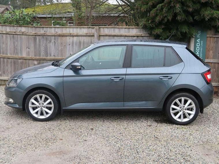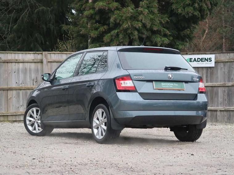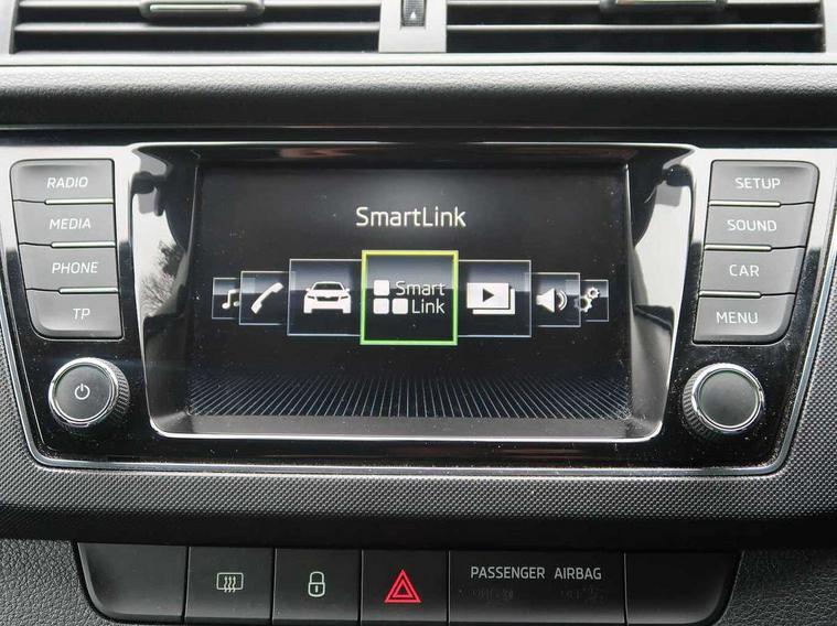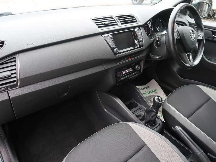 Arkamys surround sound pack - Fabia, Chrome Pack - Fabia, Alarm with interior monitoring, Immobiliser, Locking wheel bolts, Remote central locking, 6.5" touchscreen, Auxiliary socket for external MP3 player, Bolero Radio, DAB Digital radio, SD card slot, USB interface, 3x3 point rear seatbelts, ABS, Curtain airbags, Driver and passenger airbags, Driver and passenger side airbags, EDS, ESC with ASR, Front seatbelt pretensioners, HBA (Hydraulic Brake Assist), Passenger airbag deactivate switch, Seatbelt warning, Tyre pressure monitor, Body colour bumpers, Body colour door handles, Chrome grille surround, Electric front windows, Electrically adjustable and heated door mirrors, Heated rear window, Height adjustable headlamps, Intermittent rear wash/wipe, Tinted rear windows, Tinted windscreen, 1.5L bottle holder in front door panels, 2 height adjustable rear headrests, 60/40 split folding rear seat, Boot stowage box, Cargo area storage tray, Driver + passenger vanity mirrors, Folding grab handles, Front reading lights, Height adjustable driver's seat, Height adjustable front headrests, Height adjustable passenger seat, Height/reach adjust steering wheel, Interior light with delay, Leather gearshift, Leather handbrake, Lower glovebox cover, Luggage load hooks, Parcel shelf, Pollen filter, Rear courtesy light, Rear storage trays, Ticket holder, Two rear outer seat isofix location points, Umbrella under front passenger seat, Bluetooth system, Exterior temperature gauge, Front assistant collision mitigation, Multi function trip computer, PAS, Service interval indicator, SmartLink,