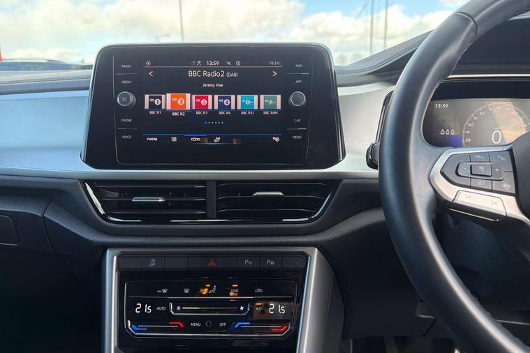 Advanced driver attention and drowsiness monitor, Bluetooth mobile phone interface, Emergency call service, Lane keeping system Lane Assist, Modified key software - reduce switch off time for key status change to Long no motion, Online services, Park assist including front and rear parking sensors, Power assisted speed sensitive steering, Rear view camera, Service interval indicator, Tailgate/trunk lid release from outside, Think blue trainer driver tips and journey analysis, Warning sound and light for front seatbelts unfastened, Wireless app connect, Battery regeneration during braking, Front shock absorption, Rear shock absorption chassis with increased ride height, Start/stop function with battery regeneration, DAB Digital radio, Diversity antenna for FM reception, Music playback - MP3, WMA and AAC files, Premium USB cable in choice of either Apple or Android smartphone compatibility, SD card slot, Simultaneous pairing of 2 compatible mobile devices, Title and cover art display, We Connect and We Connect Plus functionality, 3rd brake light, Auto dimming interior rear view mirror, Automatic hazard lights activation under emergency braking, Automatic headlight control with LED separate daytime running lights with coming/leaving home function, Black roof rails, Body coloured bumpers and radiator grille with chrome trim and front fog lamps with chrome bezel, Body coloured exterior mirror housings and door handles, Electrically adjustable and heated door mirrors, Extended roof spoiler, Exterior mirrors aspherical on driver side, convex on front passenger side, External USB type C socket and charging sockets, Front windscreen wiper with intermittent wipe and 4 position delay, Heated rear window, LED rear combination lamps, LED rear number plate lights, Power windows with comfort operation and circuit breaker, Privacy glass for rear side windows and rear window, Rain sensor, Rear exhaust tailpipe, Rear fog light on one side and reversing lights on both sides, Rear side wing doors, Rear wash/wipe with intermittent wipe setting, Remote electrically foldable door mirrors, puddle lights and reverse activated passenger's door mirror, 12V power socket in centre console, 3 rear head restraints, 3 seat bench in 2nd row, 4 load lashing points in luggage compartment, Air care climatronic air conditoning system with active combination filter and 2-zone temperature control, Black stitching for floor mats, Ceramique roof liner, Cloth upholstery, Door and side trim panel in cloth, Drawer under drivers seat, Driver/front passenger seat height adjustment, Front centre armrest, Front comfort sports seats, Front cupholders x 2, Front reading light, Front seat back storage pockets, Glove compartment door with light, Instrument lighting, white adjustable panel illumination, Interior ambient lighting and surround lighting, Interior light delay, Isofix child seat preparation, Leather gearshift handle, Load-through provision with cup holder when folded down ('Unsplit rear seat bench, split folding backrest, with centre armrest), Luggage compartment lighting, Lumbar support for driver's and front passengers seat, Non-folding front passenger seat backrest, Single front passenger seat, Storage compartment in left and right luggage area, Storage compartment in rear doors, Storage compartments in driver and front passenger doors, Sunvisors with illuminated vanity mirrors, Variable boot floor, height adjustable and removable, 3 point height adj front seatbelts + pretensioners, 3 point seatbelts in outer rear with ECE label, ABS, Child locks on rear doors, City emergency braking and pedestrian monitoring, Driver and front passenger airbag with front passenger airbag deactivation, Driver and front passenger safety-optimised head restraints, Drivers seatbelt reminder, Electronic parking brake, Electronic Stability Control (ESC) inc EDL (Electronic Differential Lock) and ASR (Traction Control), Front and rear passengers curtain airbag system including front side airbags, Front disc brakes, Hill start assist, Predictive pedestrian protection, Rear disc brakes, Two tone horn, Tyre pressure loss indicator, Volkswagen roadside assistance, Alarm with interior protection, Anti-theft alarm system with interior monitoring, backup horn, and towing protection, Keyless entry and start, Remote central locking with SAFELOCK, radio remote control with 2 remote control folding keys, Pewter matt decorative inserts for intrument panel, centre console and door panels at the front, Trims for alloy wheels,