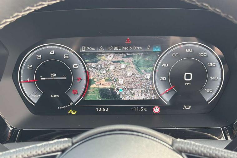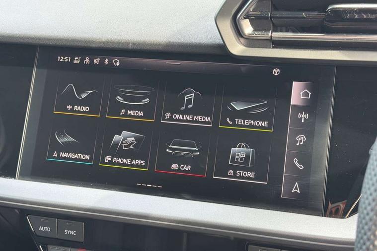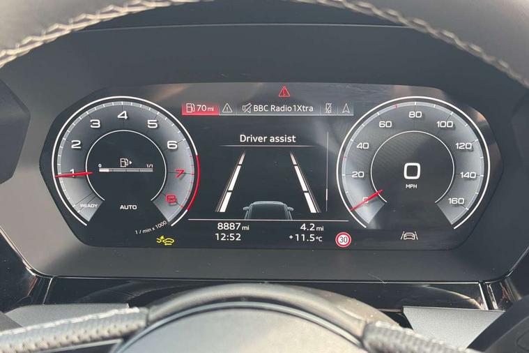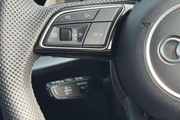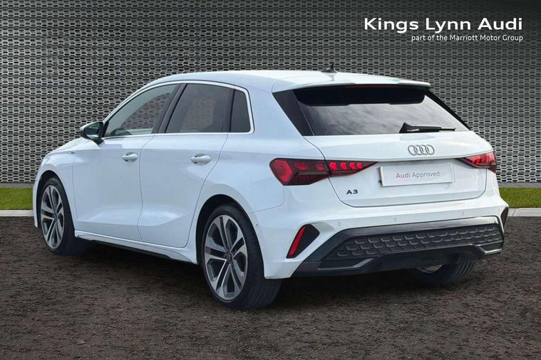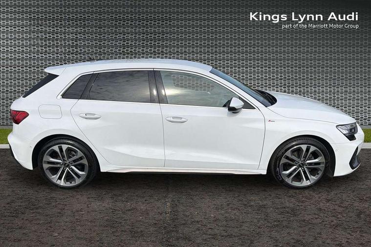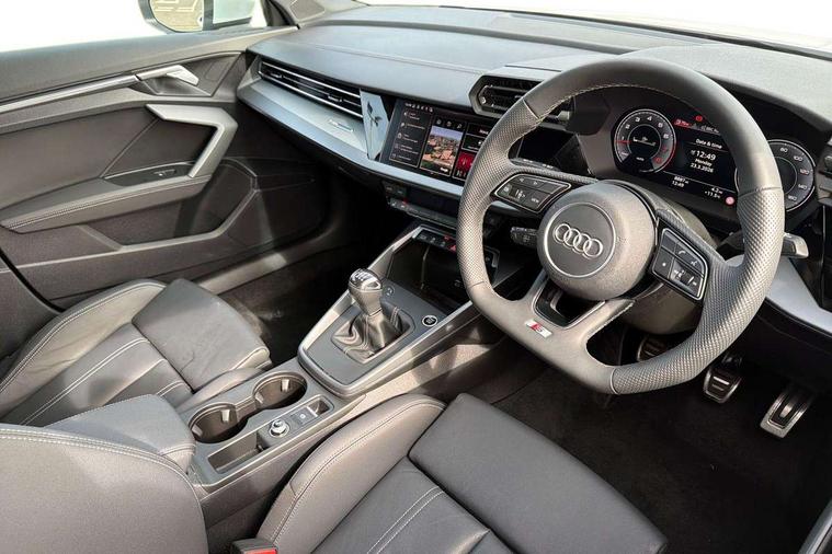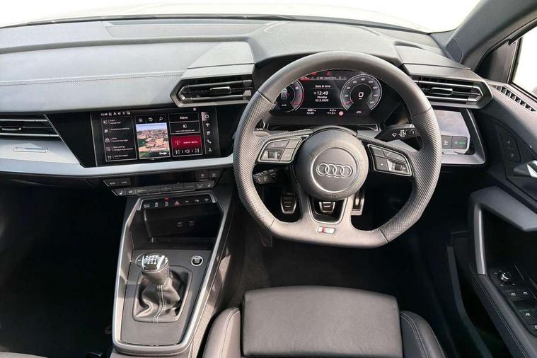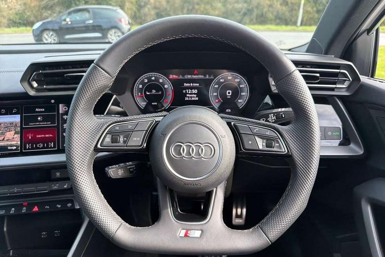 Adjustable speed limiter, Audi drive select, Audi smartphone interface with app store includes wireless Apple carplay, Android auto and Amazon alexa integration, Audi virtual cockpit plus - 12.3" full HD resolution dynamic digital instrument cluster, Automatic start/stop system with recuperation, Bluetooth interface, Camera based traffic sign recognition, Collision avoidance assistant, Cruise control, Distraction and Fatigue warning, e-Call (emergency call), Electromechanical power speed sensitive steering, Lane departure warning system, MMI Navigation Plus with high resolution 10.1" colour touch screen display, Park Assist with parking system Plus, Service indicator, Tailgate, Trip computer, Voice control system with natural language interaction, Sports suspension, Audi Phonebox light with wireless charging, Audi sound system - 10 loudspeakers including centre loudspeaker and subwoofer, DAB Digital radio, USB ports with charging function in the rear, Acoustic glass windscreen, All weather light, Aluminium window trim, Auto dimming frameless rear view mirror, Automatic dynamic range control, Body colour exterior mirrors, Chrome exhaust tailpipes, Dipped beam, main beam, position light and turning light, Electrically adjustable/heated/folding/auto dimming door mirrors with integrated LED indications + kerb view function for passenger side, Exterior model badging, Front and rear side air inlets in grained matt black with dark liquid chrome frame, Front electric windows, Front radiator grill in high gloss dark chrome, Heat insulating glass windscreen, Illuminated door sills with aluminium inserts at the front with S logo, Intersection light, LED 3rd brake light, LED brake lights, LED daytime running x3, LED headlights with LED rear lights and dynamic rear indicators, LED rear number plate lights, LED reverse light, LED tail lights, Light and rain sensors, Manoeuvring light, Motorway light, Privacy glass - dark tinted rear window, rear door and side windows, Rear diffuser and grill in grained matt black with inlay in dark liquid chrome, Rear electric windows, Rear side wing doors, Rear wiper, S line bumpers, S roof spoiler, Side S line emblems on front wings, Side sill trim in dark liquid chrome, Static cornering light, 12V socket and storage compartment in front centre console, 3 seat bench in 2nd row, 3 spoke flat bottomed multi-function leather sport steering wheel, 3-zone deluxe automatic air conditioning, 4 way electrically adjustable lumbar support for driver and front passenger, 40/20/40 split folding rear seat bench, Black cloth headlining, Black front and rear floor mats, Front and rear centre armrest in artificial leather with contrasting stitching on armrests and instrument panel, Front and rear headrests, Heated front seats, Height and reach adjustable steering wheel, Manual boot compartment lid, Manually adjustable front seats, Rear centre armrest with cupholder, S badging on the steering wheel, Seat side bolsters, Single front passenger seat, Stainless steel pedals and front footrest in black, Twin leather upholstery with front sports seats S embossed logo, Aluminium interior elements pack - A3, Multi-coloured LED interior lighting package with Multi-coloured contour lighting of instrument panel - A3, 3x3 point rear seat belts, Driver and front passenger airbag with passenger airbag deactivation, Electronic Stabilisation Control (ESC) including ABS, ASR and EDL, First aid kit with warning triangle and 2 safety vests, Front side airbags with head airbags and interaction airbag, Hill hold assist, Pre-sense front with pedestrian and cyclist detection, Seatbelt monitoring, Tyre pressure loss indicator, Anti theft alarm, Anti-theft wheel bolts, Electronically operated child locks, Immobiliser, Remote central locking with safelock, Black dashboard, Inlay in dark aluminium spectrum,