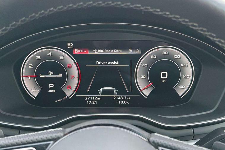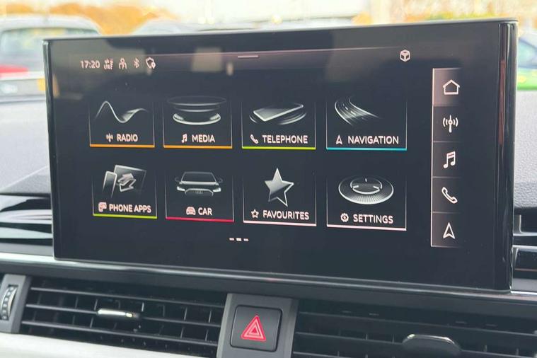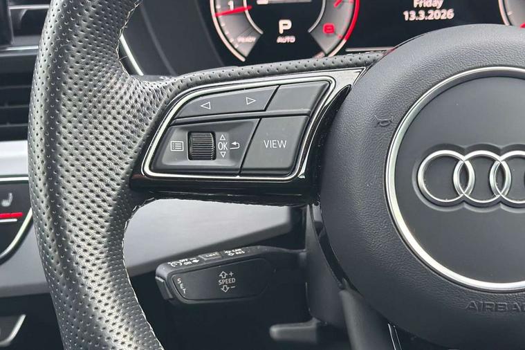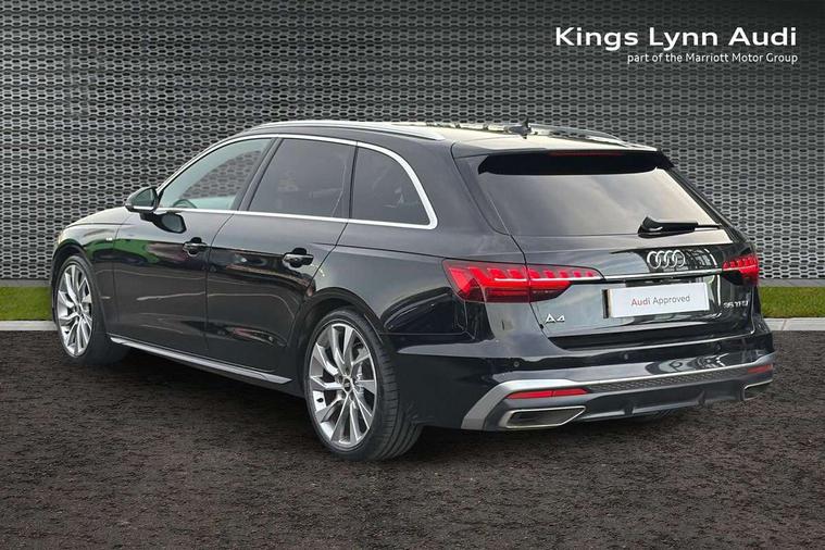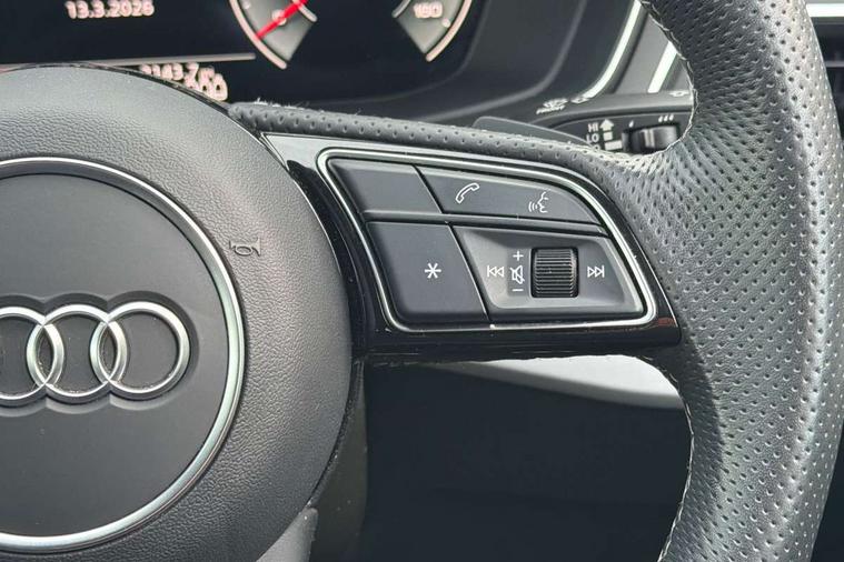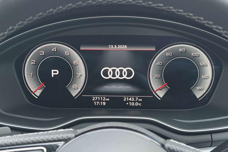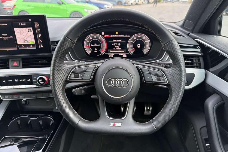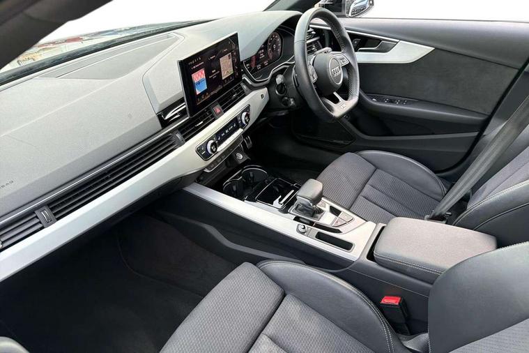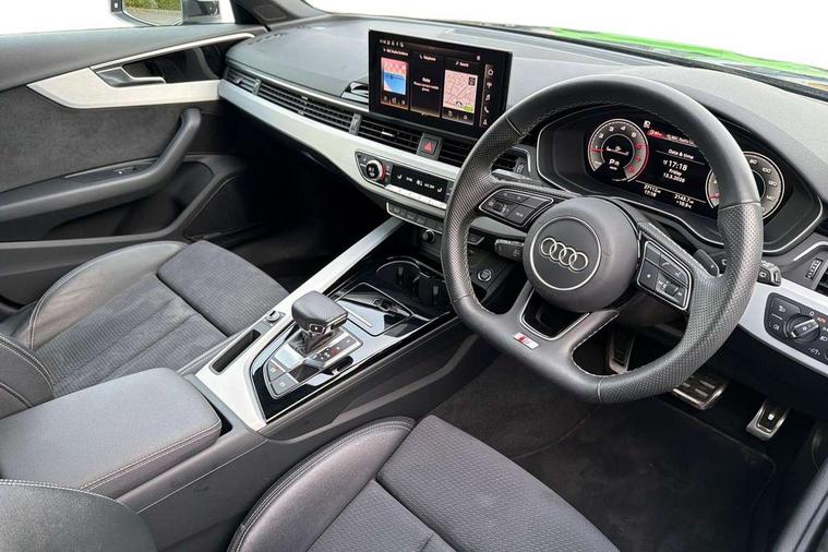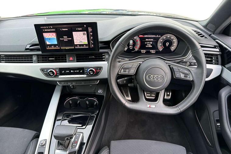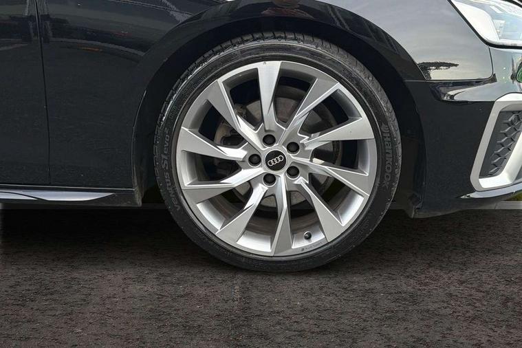 Audi connect safety and service (e-call), Audi connect with Amazon Alexa Integration, Audi drive select, Audi smartphone interface, Audi virtual cockpit, Automatic start-stop system with coasting functionality and efficiency programme, Bluetooth interface, Electromechanical power steering, Email, calendar and text messages displayed via MMI, MMI Navigation plus with MMI touch includes 10.1" high resolution colour MMI display, 3D map, Power operated tailgate, Voice control system, 54 litre fuel tank, Sports suspension lowered by 23mm, 2 USB charging ports, 8 passive loudspeakers, DAB digital radio reception, Aluminium roof rails, Auto dimming rear view mirror, Body colour door handles, Body colour front spoiler lip, Body colour side sill trim, Body coloured door mirrors, Electrically folding auto dimming/adjustable/heated door mirrors with LED side indicators and kerb view function for passenger side, Grained matt black side air inlets with matt aluminium silver inlay, High beam assistant, Honeycomb structure radiator grille in grained matt black, LED headlights with LED rear lights + dynamic rear indicators + headlight adjustment and high beam, turning light + LED daytime running lights, LED third brake light, Matt aluminium silver tailpipe trim, Privacy glass, Rain and light sensors, Rear side wing doors, Rear wiper, S Line badges on the front wings, S line front and rear bumpers with side skirts, S Line rear diffuser in matt anthracite black with trim strip in matt aluminium silver, S Line roof edge spoiler, Variable intermittent front wash/wipe, Windscreen with acoustic glazing, 3 spoke high multi-function sports leather steering wheel grips in perforated leather with S badging including paddle shift, 4 way electric lumbar support for driver and front passenger, 40/20/40 split folding 3 rear seat bench in 3 parts with rear centre armrest, Black cloth headlining, Black perforated leather gearknob, Contrast stitching on seats, steering wheel and gear lever gaiter, Deluxe 3 zone electronic climate control, Door sill trims with aluminium inlay, Electric load area cover, Front and rear head restraints, Front centre armrest, Heated front seats, Illuminated door sill trims with S logo, ISOFIX child seat mounting and top tether, Manual seat adjustment, Single front passenger seat, Stainless steel pedals and foot rest, High gloss package - A4, LED Interior light pack - A4/S4, 3 rear seatbelts, 6 airbags - Driver, front passenger, curtain and side windows, Electronic Stabilisation Control (ESC) including ABS, ASR and EDL, Hill hold assist, Multi collision brake assist, Pop-up bonnet for pedestrian protection, Pre sense city, Rear door child safety locks, Seatbelt monitoring, Warning triangle and first aid kit, Anti theft alarm, Anti theft wheel bolts, Central locking, Keyless Go, Matt brushed aluminium inlays, Tool kit, Tyre repair kit,