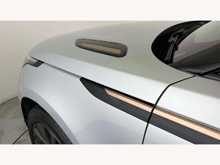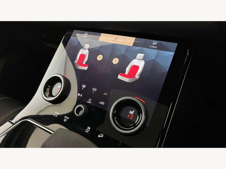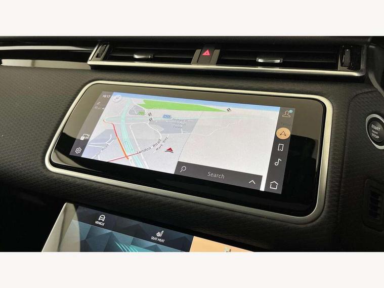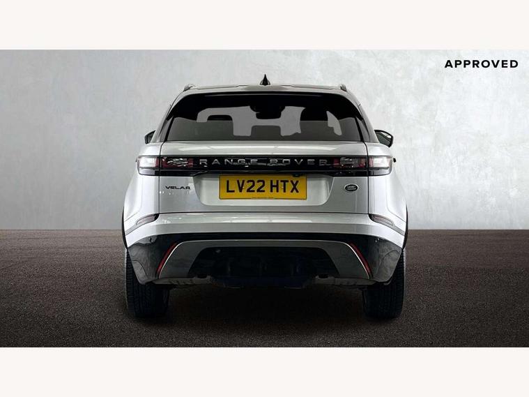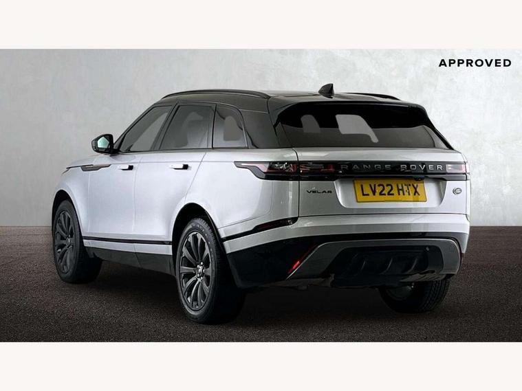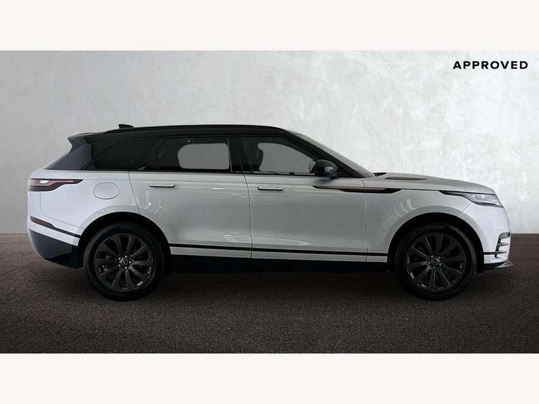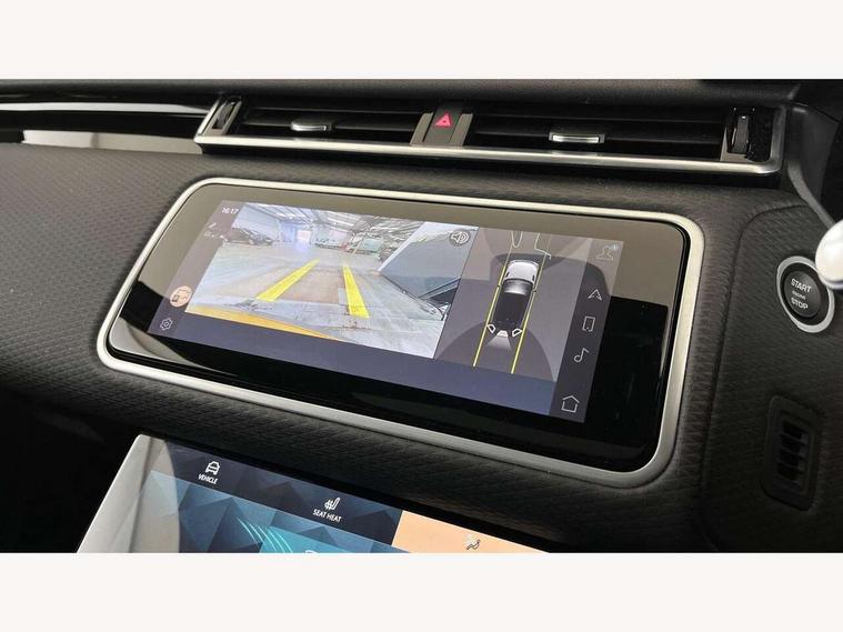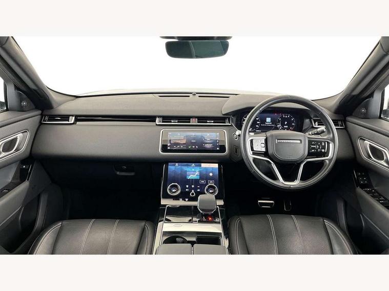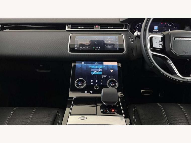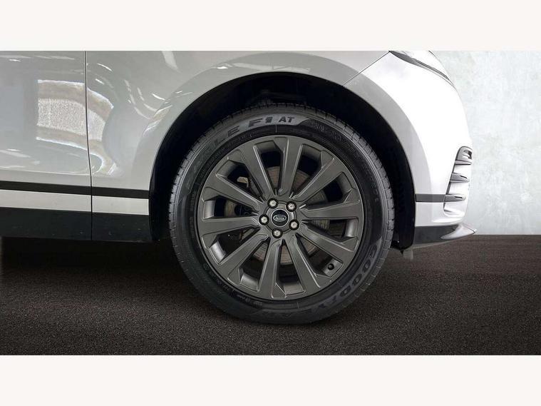 10" deployable touchscreen, Android Auto, Apple car play, Blind spot assist, Bluetooth connectivity, Brake pad wear indicator warning light, Driver condition monitor, eCall emergency call system, InControl remote, Land Rover InControl apps, Lane keep assist, Pivi pro with connected navigation, Push button start, Rear traffic monitor, Service indicator, Speed proportional electronic power assisted steering (EPAS), Traffic sign recognition with adaptive speed limiter, Trip computer, Voice control system, 8 speed automatic transmission, All terrain progress control, Open differential with torque vectoring by braking, Single speed transfer box, Digital Audio Broadcast radio-DAB, Steering wheel mounted controls, Acoustic laminated windscreen, Adaptive front lighting system, Auto dimming interior rear view mirror, Automatic headlamp levelling, Automatic headlights, Body coloured bumpers, Boot protection plate, Electric heated/power fold door mirrors with approach lights and auto dimming driver side, Electric windows with one touch open/close and anti trap, Flush deployable exterior door handles, Follow me home headlights, Heated rear window with timer, Heated washer jets, Heated windscreen, LED 3rd brake light, Metal load space scuff plates, No badge - Removes engine badge, Rain sensor windscreen wipers, Rear animated directional indicators, Rear fog lights, Rear side wing doors, Rear wash/wipe, Tailgate/boot lid spoiler, Trailer stability assist, Velar and R-dynamic badge, 3 seat bench in 2nd row, Ambient lighting, Bright metal pedals, Driver/passenger sunvisors with illuminated vanity mirrors, Isofix system on outer rear seats, Loadspace cover, Overhead lighting console, Overhead stowage for sunglasses, Passive front headrests, Rear air vents, Rear centre headrest, Satin chrome gearshift paddles, Single front passenger seat, Standard interior, Twin front cupholders, Twin sliding front centre armrest, Online pack with data plan - Velar, 355mm front brakes and 325mm rear brakes, 3x3 point rear seatbelts, Anti-lock braking system (ABS), Cornering brake control, Curtain airbags, Customer configurable autolock, Door side intrusion beams, Driver airbag, DSC - Dynamic Stability Control, Electronic brake force distribution, Electronic parking brake, Electronic traction control, Emergency brake assist, Emergency braking, Front and rear seatbelt reminder, Hill descent control, Hill launch assist, Low traction launch, Passenger airbag, Power operated child locks, Rear airbags, Roll stability control, Side airbags, Tyre pressure monitoring system, Unpainted brake calipers, Global lock and unlock switch on driver door, Immobiliser, Intrusion sensor, Keyless entry, Lock only switch on front passenger door, Locking wheel nuts, Perimetric alarm, Remote central locking,