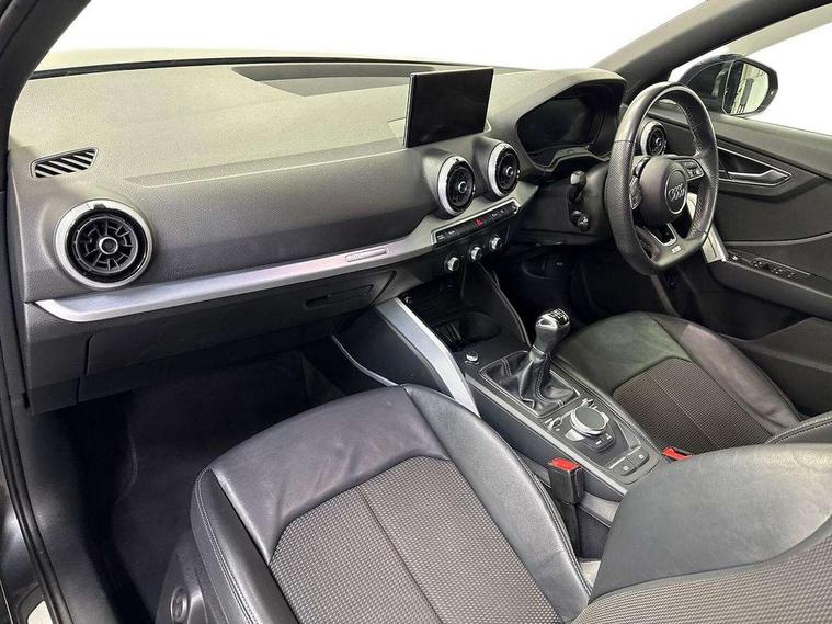 Audi connect navigation and infotainment includes innovative services, Audi connect remote and control connects your vehicle to your smartphone, Audi drive select, Audi smartphone interface, Audi virtual cockpit, Automatic start/stop system with recuperation, Bluetooth interface includes bluetooth audio streaming, Cruise control, MMI navigation plus with MMI touch, Power operated tailgate, Progressive steering, Rear parking sensors, 2 x SDXC card reader, 8 passive loudspeakers, DAB Digital radio, DVD Drive, Auto dimming rear view mirror, Black window trims, Body colour door mirrors, Brilliant black exterior mirror caps, Bumper in full body colour paint finish, Electrically adjustable, folding, auto dimming and heated door mirrors with integrated LED side indicators, Front windscreen with grey tinted sunband, Privacy glass - dark tinted rear and rear side windows from B-pillar backwards, Wheel arch trims in manhattan grey, 3 spoke flat bottomed multi-function leather sport steering wheel, 4-way electric lumbar support for front seats including seat height adjustment for both front seat, 60/40 split folding rear seat bench, Black cloth headlining, Front and rear head restraints, Front centre armrest, Front/rear floor mats, Height/reach adjust steering wheel, Illuminated door sill trims with S logo, ISOFIX child seat mounting for front passenger with airbag deactivation and outer rear seat including top tether attachment point for outer rear seats, Stainless steel pedals, Black styling pack - Q2, 3x3 point rear seatbelts, 6 airbags - Front, curtain and front side airbags, Electromechanical parking brake, Electronic stabilisation control including ABS, ASR and EDL, Hill hold assist, Pre-sense front with pedestrian recognition, Seatbelt monitoring, Tyre pressure warning light, Warning triangle and first aid kit, Anti theft alarm, Anti theft wheel bolts, Electronically operated child locks, Aluminium interior element, Matt brushed aluminium trim inlays, Tool kit,