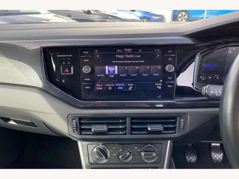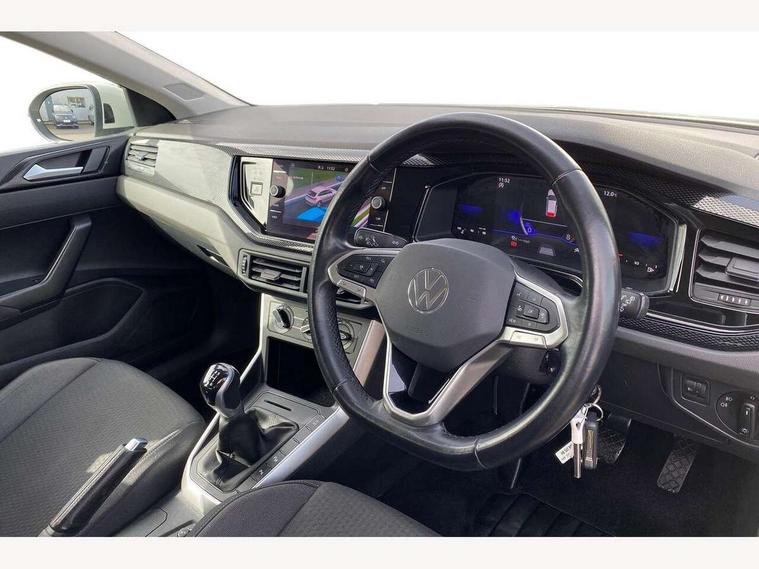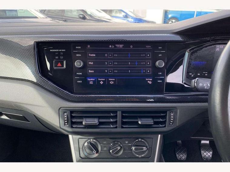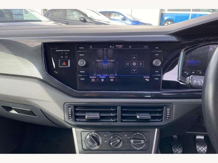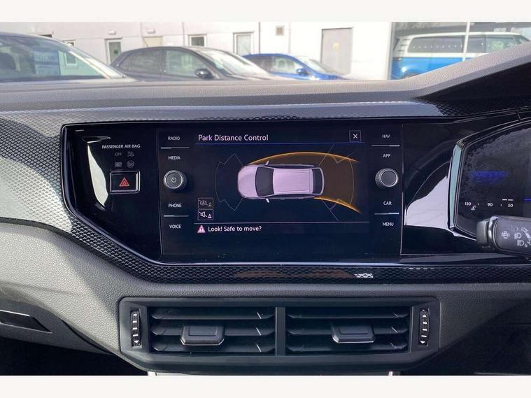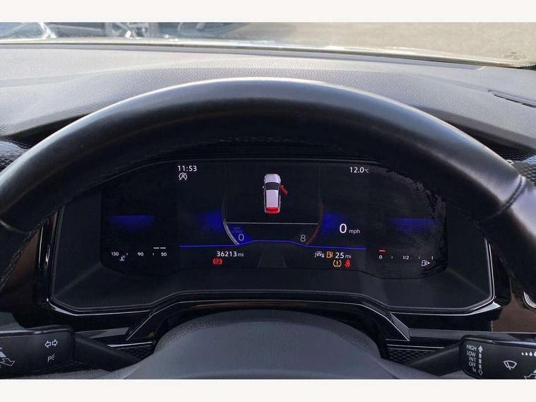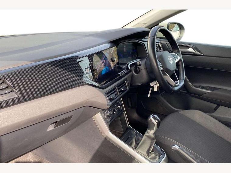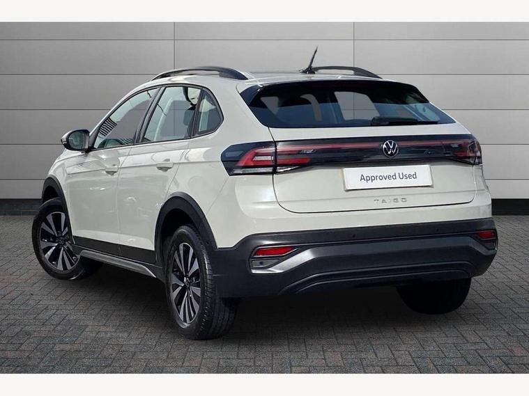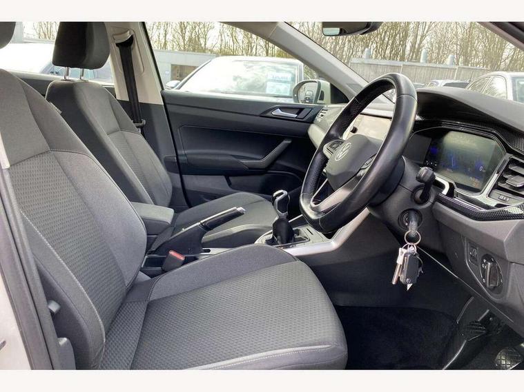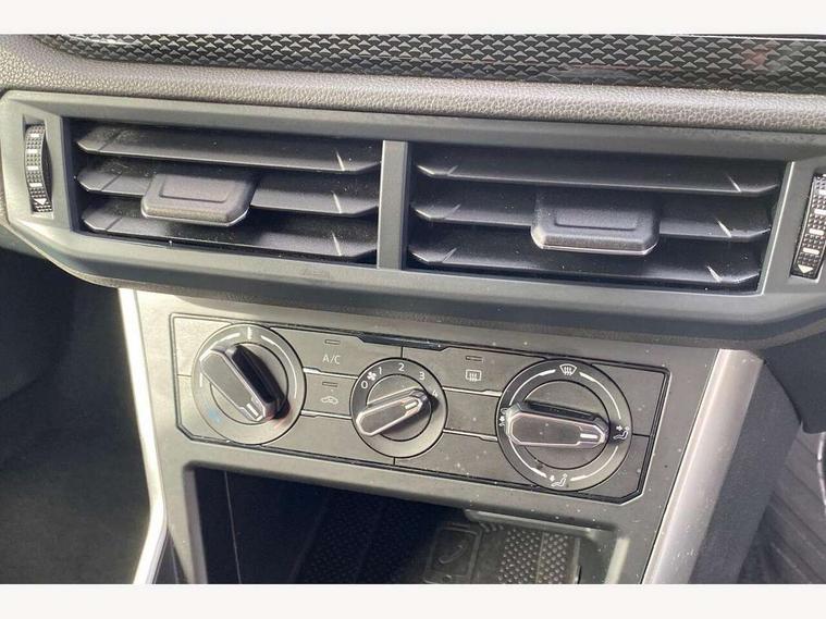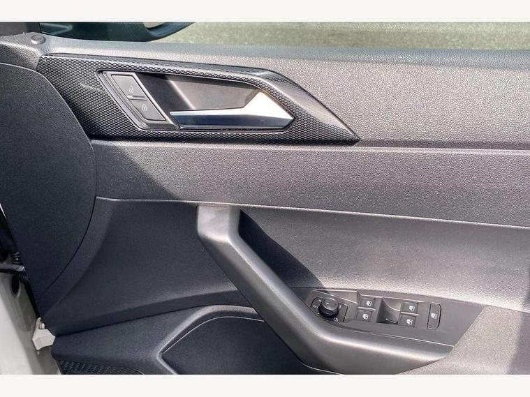 Driver alert system, e-Call (emergency call), Power Steering, Travel assist including emergency assist, Washer fluid level indicator, Wireless Charging including Bluetooth, Start-stop system with battery regeneration (recuperation - energy recovery during braking), WeConnect plus, Ambient lighting with logo projection, Aspherical driver's exterior mirror, Auto headlights, Body coloured bumpers, Body coloured exterior mirror housings and door handles, Electric windows, External USB type C socket and charging sockets, Front fog lamps with cornering function, Headlight range control, Heat insulating glass windscreen, LED headlamps, LED rear combination lamp, LED third brake light, Left convex exterior mirror, Power folding adjustable/heated exterior mirrors and front passenger exterior mirror lowering function, Rear fog light on one side, reversing light on both sides, Rear side wing doors, Rear wash/wipe with intermittent wipe setting, 'Slash/ Austin' Cloth upholstery, 12V socket in centre console, 2 front reading lights, 3 rear head restraints, 3 seat bench in 2nd row, Black carpets, Child seat anchor for child seat system i-Size, 2x top tether and child seat anchor in front on front passenger side, Door and side trim panels in titan black, Driver and front passenger seat height adjustment, Front centre armrest, Handbrake lever handle in leather, Height and reach adjustable steering wheel, Leather trimmed gear knob, Leather wrapped multifunction steering wheel, Luggage compartment floor, Luggage compartment light, Lumbar support for driver's and front passengers seat, Seat covers in titanium black, Single front passenger seat, Split folding backrest with centre armrest and unsplit rear seat bench, Storage compartment under front seats, Sun visors with illuminated vanity mirrors, Chrome Package - Taigo, Drivers assistance pack - Taigo, Light and Sight pack including High beam assist - Taigo, 2 x 3-point seatbelts/outer rear seats with ECE label, 3-point seat belts in front with pretensioner and height adjustment, 3-point seatbelt for centre rear seat, Driver and front passenger airbags with front passenger airbag de-activation, front side and curtain airbags, Driver and front passenger safety-optimised head restraints, Electronic stability control, Extended and predictive pedestrian/ cyclist protection, Front and rear disc brakes, Front curtain and side airbags with center airbag, Hill start assist, Manual rear child locks, Single tone horn, Tyre pressure loss indicator, Anti-theft alarm system with interior monitoring, backup horn, and towing protection, Anti-theft wheel bolts, Lava stone black gloss/matt decorative inserts in dash and front door panels, Low rolling resistance tyres,
