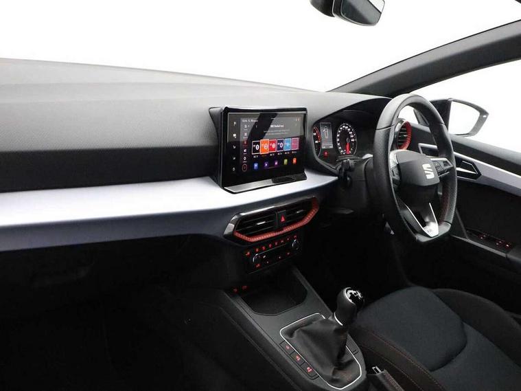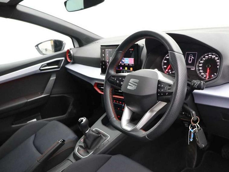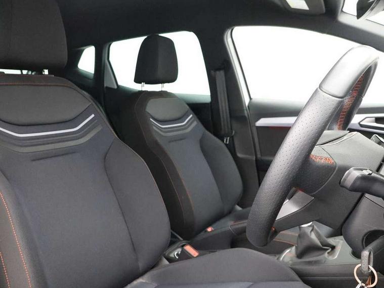 'Lights On' Reminder warning buzzer, 8" Digital cockpit, 9.2" touchscreen navigation system with type C USB socket, Voice control and DAB/AM/FM radio, Auto start and stop system, Bluetooth audio streaming with handsfree system, Digital clock, E-call, Full link smartphone integration with mirror link, wireless apple carplay, Google android auto + USB Type C cable for apple and android devices, Lane assist, Low fuel warning light, Outside temperature gauge, Power Steering, Seat connect with safety, service, remote and online, SEAT drive profiles and ECO function, SEAT logo boot release, Speed limiter, Trip computer, Sports suspension, Auxiliary input socket, Radio/MP3 player, SD card slot, Steering wheel mounted controls, Anti theft roof antenna, Auto dimming rear view mirror, Automatic rain sensing wipers, Black door mirrors, Body colour bumpers, Body colour door handles, Brilliant black window surrounds, Dark tinted rear windows, Electric adjustable/heated/folding door mirrors, Electric front windows, Electric headlight adjustment, Electric rear windows, Front/rear fog lights, FULL LED automatic headlights with dynamic headlight range control, coming and leaving home, LED daytime running lights, LED tail lights, Rear roof spoiler with FR twin exhausts, Rear side wing doors, Rear wiper, Third brake light, 3 seat bench in 2nd row, 60/40 split folding rear seat, Ambient interior lighting, Chrome detailing and black headlining, Cloth upholstery, Dual zone climate control with combination filter, Front courtesy lights, Front cupholders x 2, Front reading lights, Gear shift indicator, Glovebox, Height adjustable front and rear headrests (five), Height adjustable front seats, Height/reach adjust steering wheel, Illuminated air vent surrounds, Illuminated boot, Instrument lighting with brightness control, Isofix, Leather multifunction flat bottomed sports steering wheel, Passenger sunvisor, Single front passenger seat, Sports seats, Sunvisors with mirror and driver side card holder, 3 point seatbelts on all 3 rear seats, ABS, Active front headrests, Child locks on rear doors, Electronic stability control, Energy recovery system, Front assist forward collision warning and autonomous emergency braking, Front driver and passenger side airbags with curtain airbag and front passenger airbag deactivation, Hill hold control, Multi-Collision braking, Seat belt reminder for front and rear seats, Tiredness recognition system, Tyre pressure monitoring system, Electronic engine immobiliser, Locking wheel bolts, Perimeter alarm and interior monitoring with backup horn and tow away protection, Remote central locking + deadlocks, 17" Alloy wheels in Brilliant silver,