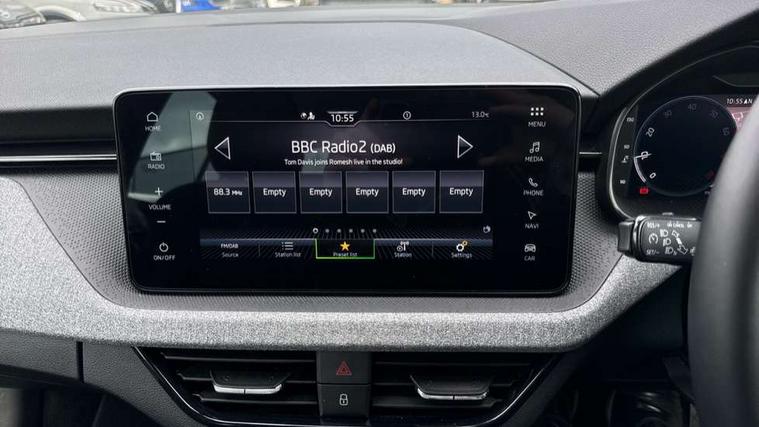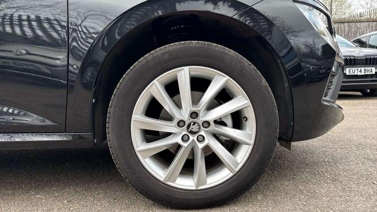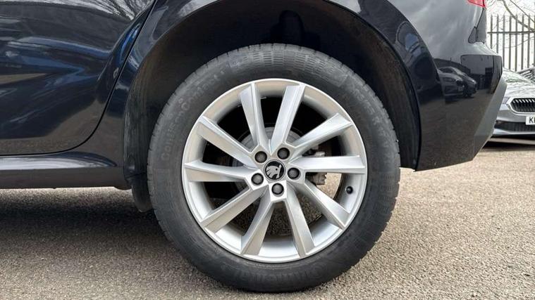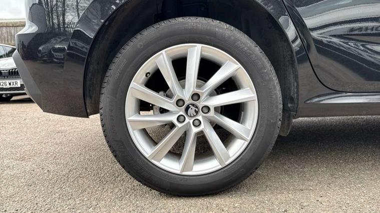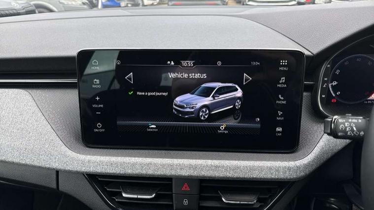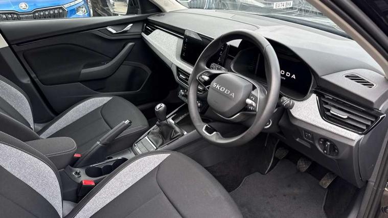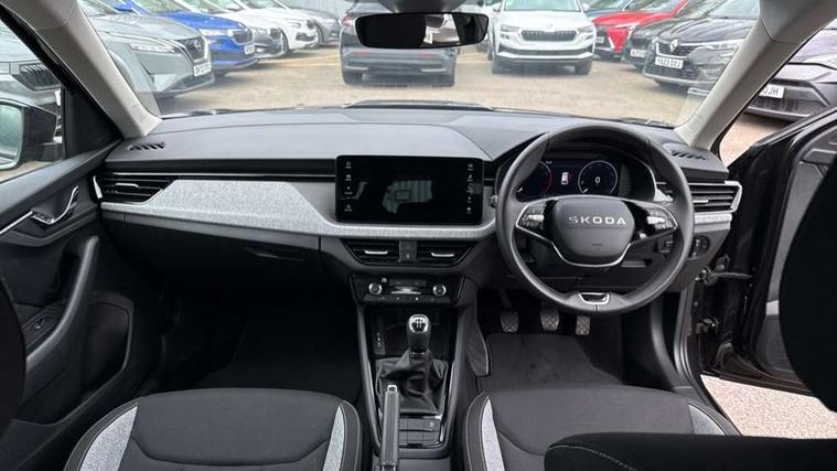 Advanced driver attention and drowsiness monitor, Bluetooth system, E-call, Front assist system, PAS, Rear parking sensors, Rear view camera, Service indicator, Speed limiter, Traffic sign recognition, Virtual cockpit with 10.25" display, Voice control system, Wireless smartlink, 4 USB C ports, 8 Speakers, 9.2" Skoda navigation display, DAB Digital radio, Auto dimming rear view mirror, Automatic headlight control with coming home and leaving home feature, Black roof rails, Body colour bumpers, Body colour door mirrors and handles, Chrome grille surround, Front and rear electric windows, Full LED headlights, Heated rear window, LED brake lights, LED daytime running lights, LED front turning lights, LED high beam, LED low beam, LED third brake light, Rear LED fog light, Rear side wing doors, Rear wiper, Ticket holder inside windscreen, 12V socket in luggage compartment, 3 seat bench in 2nd row, Black hotstamping, Cargo elements, Chrome inner door handles, Driver and passenger sun visors with vanity mirror, Dual zone climate control, Front and rear roof lights, Front centre armrest, Front head restraints, Glove compartment with illumination, Height adjustable driver seat, Height adjustable front passenger seat, Ice scraper, Inner circulation control with pollen filter, ISOFIX on front passenger seat, Isofix preparation for back seats, Krepp recycled decor inserts, Leather gearknob and handbrake lever, Loft cloth upholstery, Manual lumbar support for front seats, Net package and top tether hooks in boot space, Net under rear shelf, Overhead glasses storage compartment, Pocket on the back of both front seats include mobile phone pockets, Rake/reach adjustable steering wheel, Reading lights, Satin black door inserts, Single front passenger seat, Textile floor mats, Third rear headrest, Top tether for front passenger seat, Umbrella in driver's door, 3x3 point rear seatbelts, Airbags - driver and front passenger, Disc brakes, ESP, Extended and predictive pedestrian/cyclist protection, Front passenger airbag deactivation switch, Front side airbags with curtain airbags, Hill hold control, Manual leather parking brake, Manual rear child locks, One tone horn, Seatbelt reminder for driver an co-driver, Traction control, Tyre pressure monitor, Anti-theft alarm system with interior monitoring, backup horn, towing protection and remote central locking with SAFE system, Anti-theft wheel bolts, Electronic engine immobilizer,