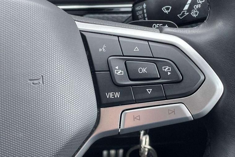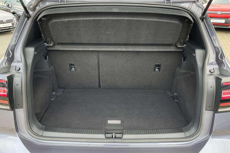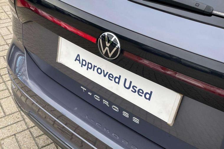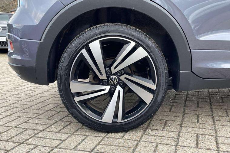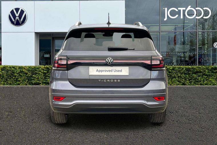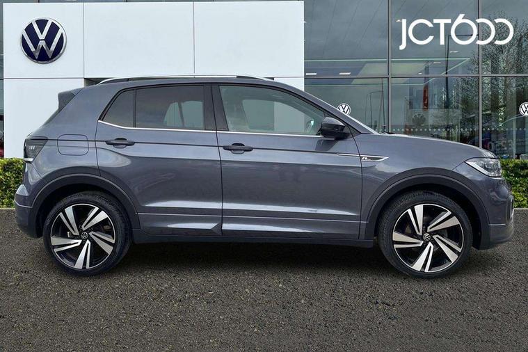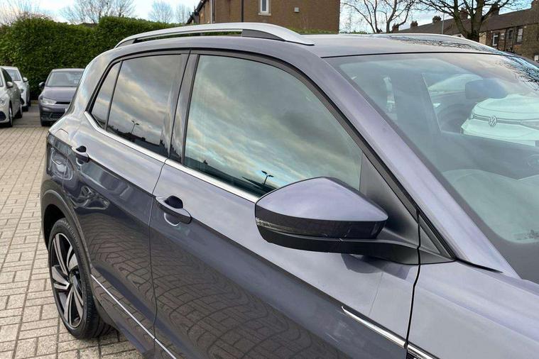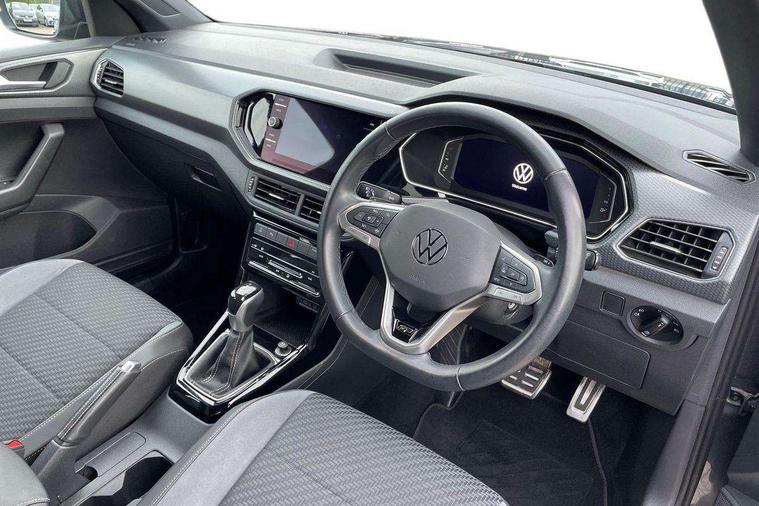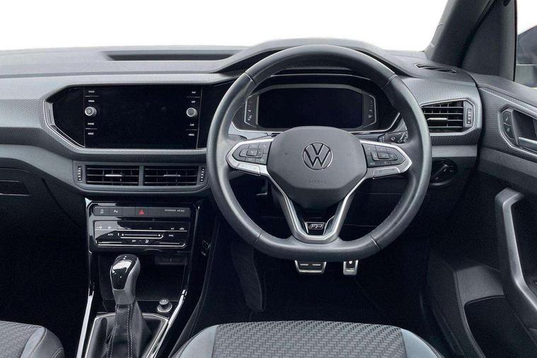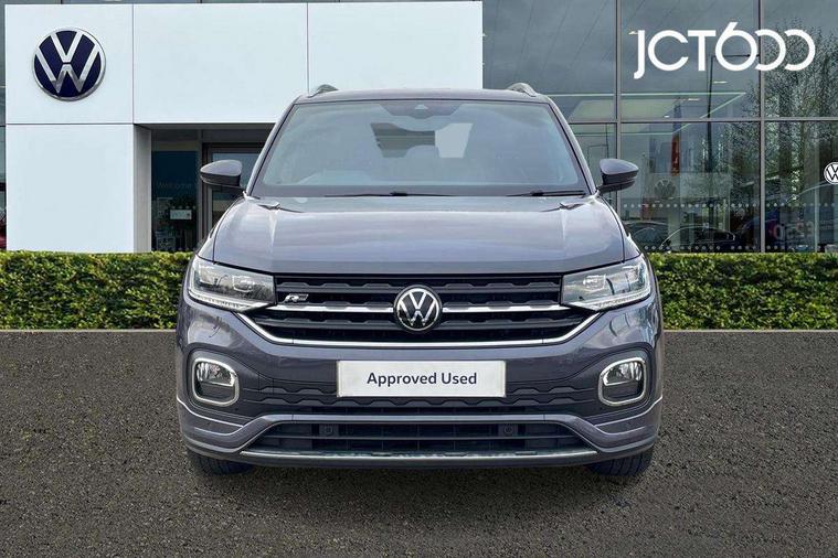 'Lights On' Reminder warning buzzer, 2D/3D map view, Active info display - 10.25" High resolution TFT dash display screen, Adaptive cruise control including front assist, forward collision warning, autonomous emergency braking, speed limiter, Blind spot monitoring, Bluetooth telephone and audio connection for compatible devices, Car information display, Driver alert system, eCall emergency call system, Lane assist, Low washer fluid warning light, Multifunction computer with visual gear change recommendation for fuel consumption, Operating permit alteration, Power assisted speed sensitive steering, Speed limit display, Speedo, rev counter, electronic odometer, trip, service interval display, exterior temperature and fuel gauge, Stop/start system, Warning sound and light for doors and tailgate open, Warning sound and light for front seatbelts unfastened, We connect plus preparation, Wireless Car net app connect with Apple CarPlay, combined functionality of Apple CarPlay/Android Auto and MirrorLink, Battery regeneration during braking, Misfuel prevention device, 2x USB connection with USB charging sockets and in rear centre console, DAB Digital radio receiver, Diversity antenna for FM reception, Multi device interface (MDI) with USB connection, Music playback - MP3, WMA and AAC files, Premium USB cable for Apple or Android smartphone compatibility, Simultaneous pairing of 2 compatible mobile devices, SMS Functionality, Three route options - Fast, Short, Eco, Title and cover art display, Automatic hazard lights activation under emergency braking, Body colour door handles, Body colour door mirrors with integrated indicators, Body colour rear roof spoiler, Body coloured bumpers, Dusk sensor + automatic driving lights, Electrically foldable, adjustable and heated door mirrors with reverse activated kerb view adjustment on passenger's side, Front and rear electric windows, Front fog lights with static cornering function, Galvanised body, Heated rear window, LED third brake light, Lower door sills and door pillars in black, Radiator grille with chrome trim and chrome bezel front fog lamp, Rear fog light on one side, reversing light on both sides, Rear lights incorporating LED technology, Rear side wing doors, Rear tinted glass 65% approx light absorbing from B pillar backwards, Rear window aerial, Rear windscreen washer and wiper with interval delay, Reflectors in all doors, Silver roof rails, Stainless steel door sill protection, Tailgate with integrated roof spoiler, Unique R Line badging, Windscreen wipers/ intermittent wipe + 4 position delay, 12V Accessory socket in centre console, 2 Front and rear reading lights incorporating LED technology, 2 Zone electronic climate control with automatic air recirculation, 3 rear head restraints and 3 rear three point seat belts with ECE label, 3 seat bench in 2nd row, 60/40 split folding rear seat backrest, Ambient lighting and sourround lighting, Black headlining, Branded points of interest, Brushed stainless steel pedals, Carbon flag cloth upholstery, Drawer under drivers seat, Driver and front passenger sunvisor with vanity mirror, Driver's sunvisor with ticket holder, Dust and pollen filter, Front and rear carpet mats with contrast stitching, Front centre armrest with storage compartment, Front footwell illumination, Front seat back storage pockets, Front seat R Line logo with rear seat backrest, Front sports seat with height and lumbar adjustment, Glovebox, Heating and fresh air system with 4 stage blower, Height/reach adjust steering wheel, Instrument lighting white adjustable panel illumination, Interior light with delay, Isofix child seat preparation for 2 rear child seats, Leather trimmed three spoke multifunction steering wheel with contrast stitching and aluminium inserts with R Line logo, Luggage compartment cover, Luggage compartment lighting, Moveable and foldable Rear bench seat, Scuff plates in door apertures, Steering wheel paddle shift, Storage compartment in drivers and front passengers door, Variable boot floor, R Line styling pack - T-cross, Anti-lock Braking System (ABS) with Hydraulic Brake Assist (HBA), Automatic post collision braking system, Driver and front passenger safety-optimised head restraints, Drivers and Front Passengers airbags with front passengers airbag deactivation switch, ESC with EDL, ASR, EDTC and trailer stabilisation function, Front and rear curtain airbags, Front seat side impact airbags, Height-adjustable front three-point seat belts with tensioners, Hill start assist, Pre crash preventive occupant protection, Rear door child safety locks, Rigid safety cell with front and rear crumple zones, Single torn horn, Tyre pressure loss indicator, Volkswagen roadside assistance, Alarm with interior protection and deactivation via infotainment system, Child security locks in rear doors, Electronic engine immobiliser, Remote tailgate unlocking using key fob, Race decorative inserts in dash and doors, 18" Nevada black alloy wheels, Breakdown kit,
