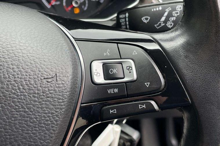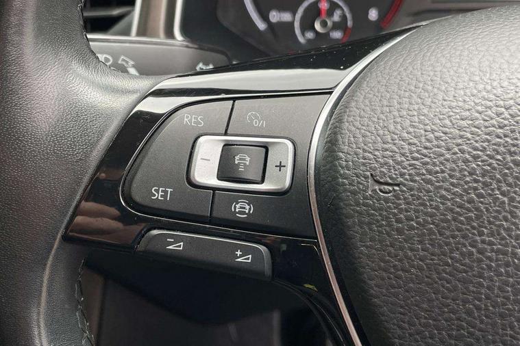 Adaptive cruise control, App-Connect, Automatic start/stop system, Bluetooth hands free telephone connection, Driver alert system with audible and visual fatigue detection system, Instrument cluster in white, Lane assist, Multifunction computer with visual gear change recommendation for fuel consumption, Power assisted speed sensitive steering, Warning sound and light for doors and tailgate open, Warning sound and light for front seatbelts unfastened, Battery regeneration during braking, CD/MP3/WMA, USB and SD card reader, aux-in, Composition media system, DAB Digital radio, MDI multi device interface, Premium USB cable in choice of either Apple or Android smartphone compatibility, Auto dimming interior rear view mirror, Automatic hazard lights activation under emergency braking, Black grained lower door protectors, Black grained wheel arches, Body colour door handles, Body colour door mirrors with integrated indicators, Body colour sports bumpers with silver metallic underbody fascia, Chrome trim on upper and lower radiator grille, Door mirror puddle lights, Dusk sensor, Electrically foldable, adjustable and heated door mirrors with puddle lights and reverse activated kerb-view adjustment on passenger's door mirror, Front and rear electric windows, Front windscreen wiper with intermittent wipe and 4 position delay, Fully galvanised body, Heated rear window, High level 3rd brake light, LED rear number plate lights, Manual coming/automatic leaving home lighting function, Rain sensor, Rear tinted glass from B-pillar backwards approx 65% tinted, Rear windscreen washer and wiper with interval delay, 12V socket in centre console storage area, 2 LED front and rear reading lights, 3 rear head restraints, 4 load lashing points in luggage compartment, Ambient lighting in front footwell and light strips below trim in front doors, Climate control - 2 zone electronic air conditioning with automatic air recirculation and allergy filter, Drawer under drivers seat, Front centre armrest with storage compartment, longitudinal and height adjustable and two rear air vents, Front cupholders x 2, Front footwell illumination, Front seat back storage pockets, Glovebox, Height adjustable front seats, Height/reach adjust steering wheel, Illuminated vanity mirrors, Instrument lighting, white adjustable panel illumination, Interior light delay, Isofix easy fit child seat preparation for 2 outer rear seats, Load through provision with single cup holder when folded down, Luggage compartment cover, removable, Luggage compartment lighting, Split folding rear seat backrests with centre armrest, Storage compartment in left and right luggage area, Storage compartment in rear doors, Storage compartments in driver and front passenger doors, Variable boot floor, height adjustable and removable, 3 rear three point seatbelts, ABS, Driver and front passenger safety-optimised head restraints, Electronic parking brake with auto hold, ESC with EDL, ASR, EDTC and trailer stabilisation function, Front and rear curtain airbags, driver and front passenger airbags with passenger deactivation switch and front side impact airbags, Rigid safety cell with front and rear crumple zones, Three point height adjust front seatbelts + pretensioners, Tyre pressure loss indicator, Ventilated front and rear disc brakes, Volkswagen roadside assistance, Alarm with remote central locking and interior protection, Electronic engine immobiliser, Remote central locking with 2 remote folding keys, Space and weight saver spare wheel,