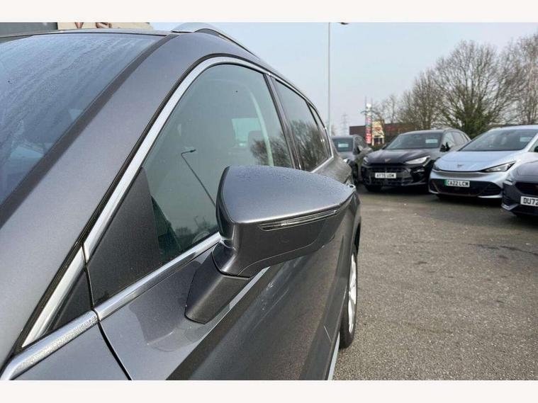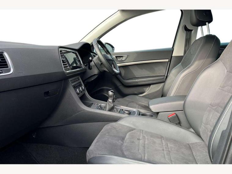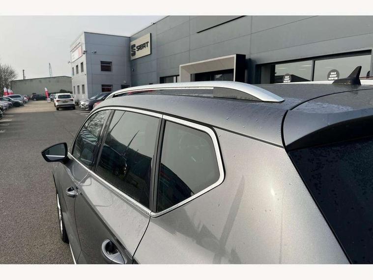 8" Digital cockpit, Colour multi-function on board computer display, E-call, Outside temperature gauge, Progressive power assisted steering, Rear view camera, SEAT drive profile with driving experience button - Normal, Sport, Eco and Individual mode, steering and throttle response, Self parking functionality (includes front and rear parking sensors), Start/stop system, Tailgate, Trip computer, Wireless full link smartphone integration, Wireless phone charger, Steering wheel mounted audio/phone controls, Black simulated exhaust pipes, Black wheel arch surrounds, Body colour bumpers, Chrome front grille frame, Chrome roof rails, Chrome side window trim, Dark tinted rear windows, Daytime running lights, Door mirrors with welcome light silhouette, Dynamic headlight range control with self adjusting whilst driving, Electric adjustable/heated/folding door mirrors, Front and rear electric windows, Front grille hot stamping, Full LED headlamps with lens and LED front fog lamps with cornering function, Illuminated aluminium front door sill, LED rear tail lights with dynamic indicators, Rear fog lights, Rear side wing doors, Rear wash/wipe, Reflex silver side mouldings, Variable front intermittent wipers, 12V socket in front, 3 seat bench in 2nd row, 60/40 split folding rear seat, Drawer under right front seat, Dual zone climate control, Front and rear head restraints, Front centre armrest, Front seat back storage pockets, Height adjustable driver and passenger seat with lumbar adjustment, ISOFIX points in outer rear seats with top tether anchorage points, Leather steering wheel and gear knob, Microsuede upholstery with front comfort seats, Rear armrest and easy back seat release mechanism from boot, Single front passenger seat, Convenience pack - Ateca, Interior lighting pack - Ateca, Navigation system pack with DAB - Ateca, Safe and driving pack with lane assist - Ateca, 3x3 point rear seatbelts, ABS, Traction control system (TCS), Electronic stability control (ESC) and Electronic differential lock system (XDS), Airbags - Driver and front passenger airbag with deactivation, front side, two curtain and driver's knee airbags, Electric parking brake with auto hold function, Front and rear seatbelt reminder, Hill hold control, Manual rear child locks, Single tone horn, Tiredness recognition system, Traction control, Tyre pressure monitoring system, Alarm, Keyless entry, Locking wheel bolts, Remote central locking, Chrome interior detailing, 18" Brillaint silver alloy wheels,