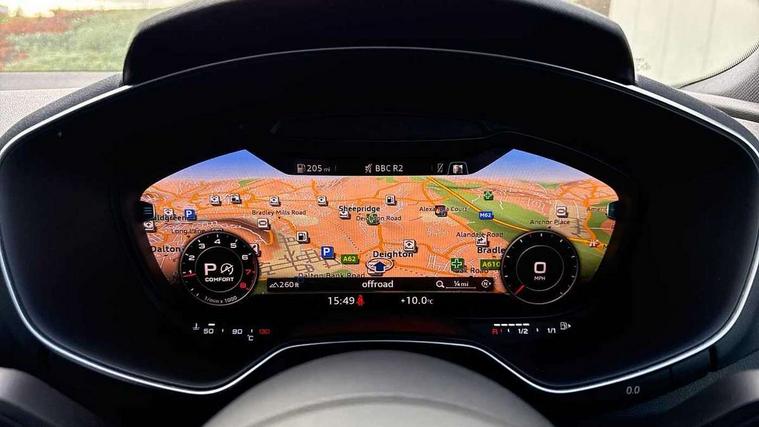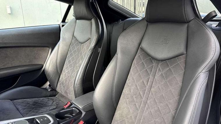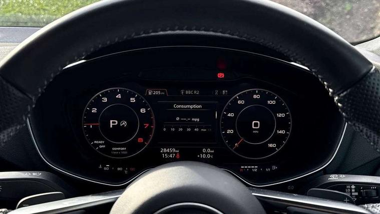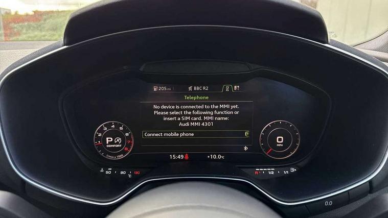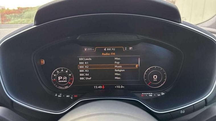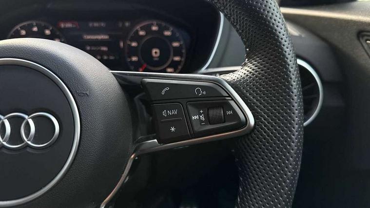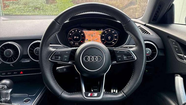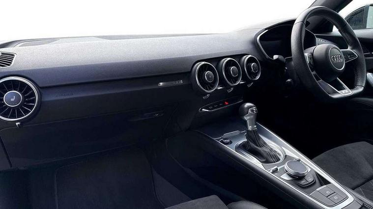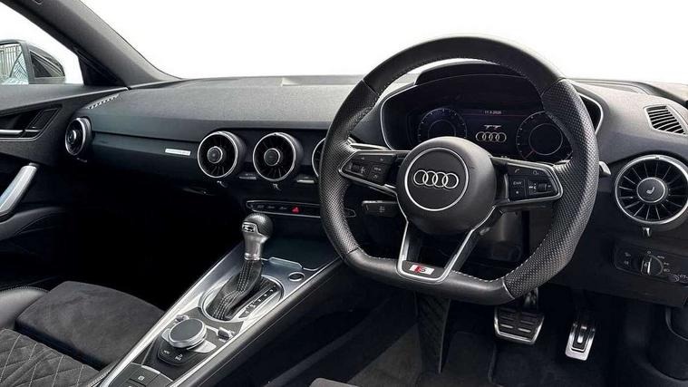 Audi drive select with 4 Pre configured modes, Audi smartphone interface, Audi virtual cockpit - 12.3" high-resolution LCD display with fully customisable instrument cluster, Cruise control + speed limiter, Emergency call service, MMI touch panel, Mobile phone preparation with bluetooth interface, Progressive power assisted steering, Service interval indicator, Start/Stop system with energy recuperation, TP memo, Sports suspension, AM/FM radio, Bluetooth audio streaming, DAB Digital radio, MMI Radio with CD player and SD/XC card slot, Auto dimming rear view mirror, Auto headlight range control, Black chrome tailpipe, Dark privacy glass from B-pillar backwards, Electric folding door mirrors, Electric front windows, Electrically adjustable and heated door mirrors with integrated LED side indicators, Front fog lights, Green tinted heat insulating glass, LED 3rd brake light, LED daytime running lights, LED headlights with LED rear lights + dynamic rear indicators, Light and rain sensors, Rear boot, Sunband for windscreen, 12V socket, 2 rear seats, 3 spoke flat bottomed high multi-function leather sport steering wheel with gearshift paddles, 4 way electric lumbar support for driver and front passenger, Black headlining, Contrasting silver stitching in steering wheel, Door sill trims, Extended aluminium look with stainless steel pedals, Front centre armrest, Front passenger seat, Front super sports seats, Heated front seats, Height/reach adjust steering wheel, Integrated head restraints, ISOFIX child seat mounting for front passenger seat with airbag deactivation, Manual adjustment of seat height, fore/aft position, seat angle, seat depth and backrest angle, Perforated leather gearknob in black, Rear head restraints, Rear top tether child seat ISOFIX attachment, Split folding rear seat, Black styling pack - TT, Non smoking pack - TT/TT RS, 3 point front seat belts, ABS, ASR traction control, Curtain airbags, Driver and front passenger airbag with front passenger airbag deactivation, EDL traction control, Electromechanical parking brake, ESP, First aid kit, Front side airbags, Head airbags, Hill hold assist, Seatbelt warning, Tyre pressure loss indicator, Warning triangle, Anti theft alarm, Anti theft wheel bolts, Immobiliser, Keyless Go, Remote central locking, Matt brushed aluminium inlays, Tool kit, Tyre repair kit,
