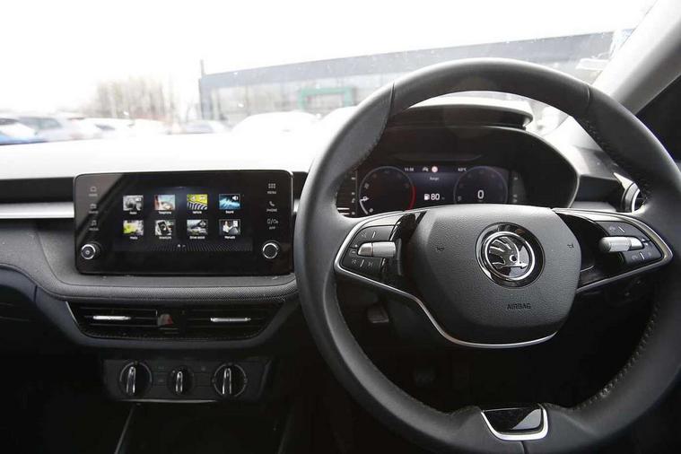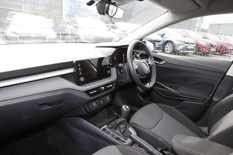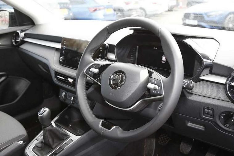 Advanced driver attention and drowsiness monitor, Bluetooth connection, Electromechanical power steering, Exterior temperature gauge, Service interval indicator, Traffic sign recognition, Virtual cockpit with 10.25" colour display, Wireless SmartLink for Apple CarPlay and Android Auto, 6 Speakers (4 in front and 2 in rear), Auxiliary socket for external MP3 player, DAB digital radio reception, Body coloured bumpers, Dimming rear view mirror with black frame, Door mirror integrated indicators, Front and rear electric windows, Front window wiper intermittent control, Headlight range control - Automatic, Ice scraper in fuel cap, LED daytime running lights with coming and leaving home feature, LED rear lights, Privacy glass, Rear LED fog light, Rear side wing doors, Rear window wiper with washing nozzles, Roof mounted spoiler, SKODA tailgate lettering in chrome, Third brake light, 2 reading lights in front and 2 reading lights in rear, 3 rear headrests, Backrest split and folding, Central console with removable cup holder and storage box, Chrome handbrake release button, Fabric upholstery, Front centre armrest, Gearshift knob/handle in leather, Grain satin black interior door handles, Hand brake lever handle in leather, Height adjustable front headrests, Height adjustable front seats, Height adjustable steering wheel, ISOFIX and TopTether anchorage points to the outer rear seats, ISOFIX and TopTether on the front passenger seat, Luggage compartment lighting, Manually adjustable lumbar support in front seats, Pollen filter, Rear seat bench unsplit, Single front passenger seat, Storm grey headlining, Sun visors with mirror and airbag label on passenger side, Textile floor mats, Ticket holder, Umbrella in drivers door, 3-point height adjustable front seats belts with pretensioner and force limiter, Automatic warning lights in case of crash, Driver and passengers airbag with switch off function, e-Call+, ESC including ABS, MSR, ASR, EDS, HBA and XDS, Front and rear seat belt warning, FRONT ASSIST (AEB City and AEB Inter Urban), Front side airbags, Head airbags, One tone horn, Pedestrian protection, Three rear 3-points safety seat belts with pretensioner and force limiter including stop function for outer rear seat belts, Tyre pressure monitoring system, Anti-theft alarm system including immobiliser, interior monitoring, backup horn, and towing protection, Central locking with radio remote control, interior controls, SAFE function and 2 foldable keys, Colour Edition air vents, Grain satin black central console cover, Metallic grey upper decorative trim, Satin black door and side trim panel in front, Textile Kota grey lower decorative inserts, Anti-theft wheel bolts protection, Super-low rolling resistance tyres,