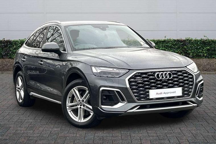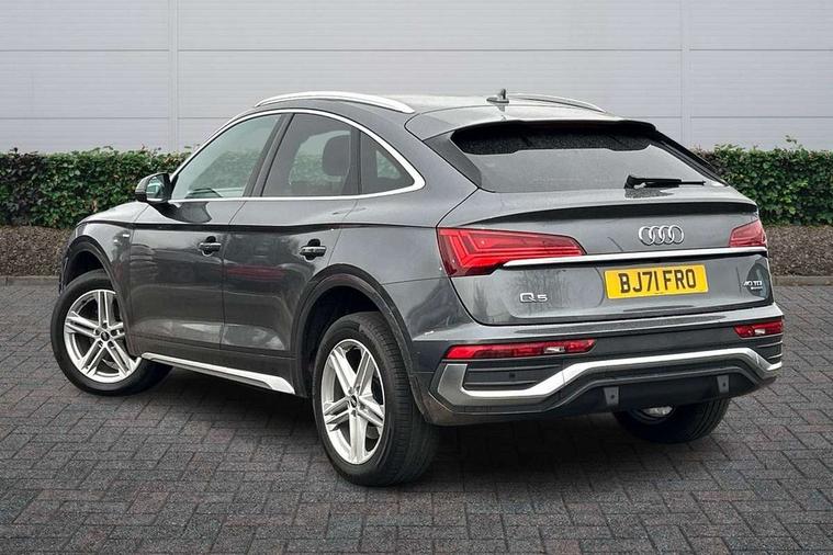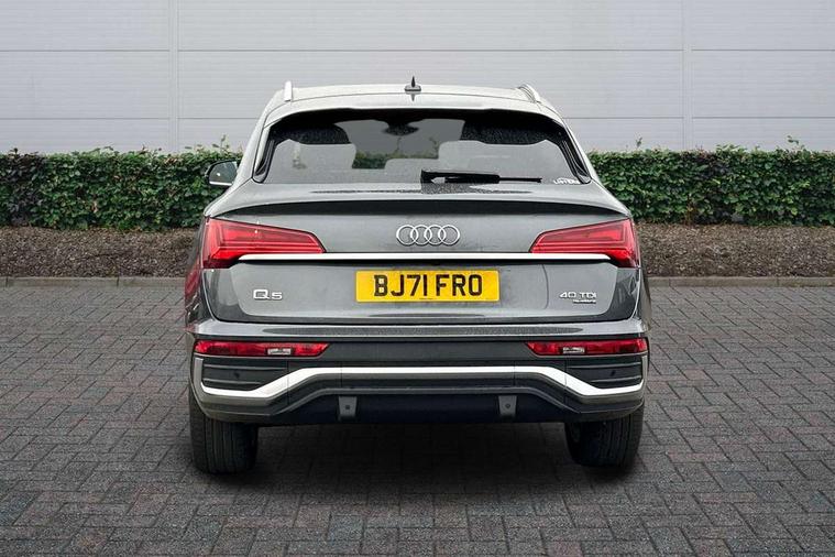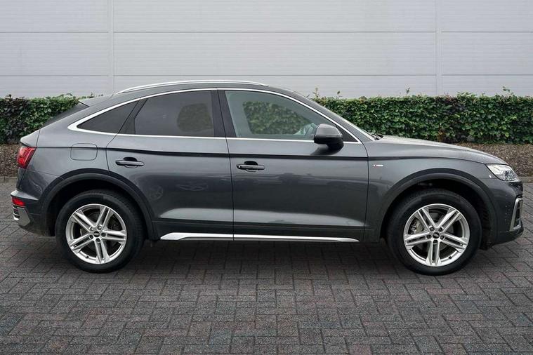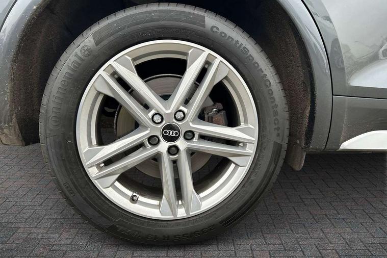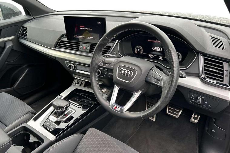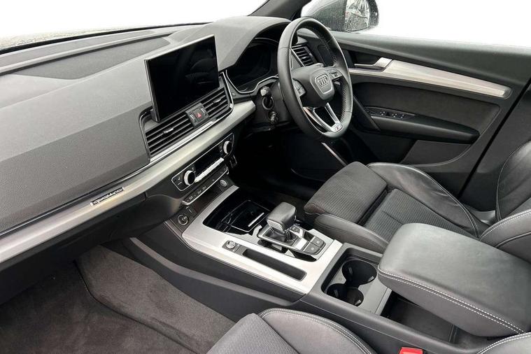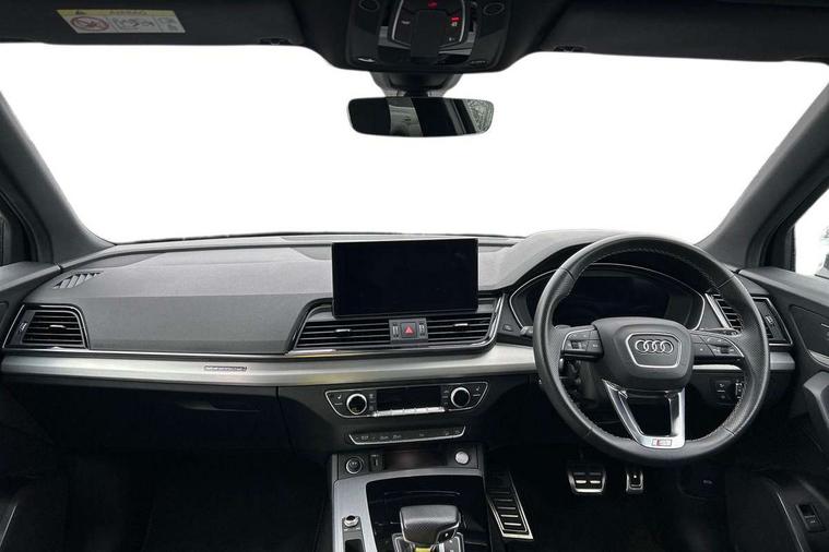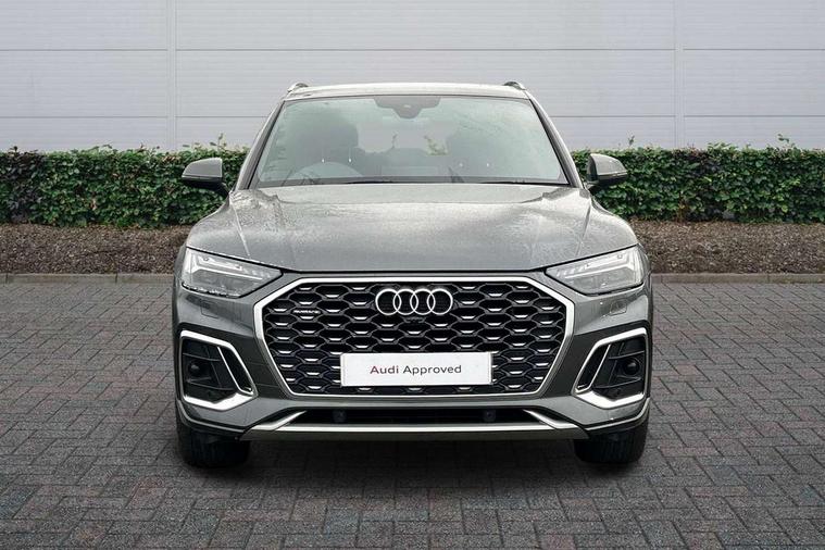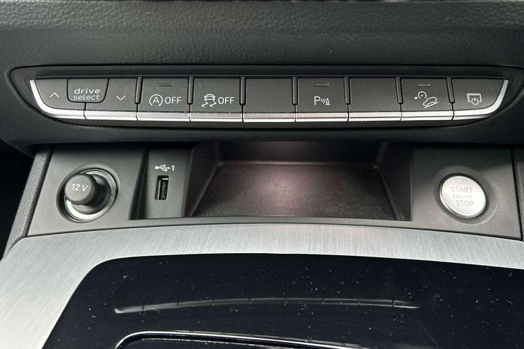 Audi connect safety and service (e-call), Audi connect with Amazon Alexa Integration, Audi drive select, Audi virtual cockpit plus with 12.3" screen and three different layout designs, Audi wireless smartphone interface, Automatic start-stop system with coasting functionality and efficiency programme, Bluetooth interface, Electro - mechanical power assisted steering, MMI navigation plus with 10.1" touch screen, Power tailgate, Reversing camera, Service interval indicator, Voice control system with Audi hotword activation "Hey Audi", Diesel particulate filter, Quattro on demand, S line sports suspension, DAB Digital radio, Acoustic windscreen, Aluminium roof rails, Audi matrix LED headlights with dynamic front and rear indicators, Auto dimming rear view mirror, Automatic headlights and windscreen wipers, Body colour door mirrors, Body colour rear diffuser with matt aluminium silver surrounds, Body colour underbody protection, Chrome plated exhaust trims, Door sills in Selenite silver, Electric adjustable/heated/folding door mirrors, Front air inlet surrounds in aluminium, Front and rear electric windows, Front radiator grille in honeycomb design, Headlight washers, Lower bumpers painted in contrast Manhattan grey, Rear chrome trim strip below lights, Rear privacy glass and rear side windows, Rear spoiler, Rear wiper, Roof bars, S Line badges on the front wings, S Line front and rear bumpers, S Line side skirts, 2 x USB charging port with aux input socket, 3 rear headrests, 40:20:40 split folding rear seat with rear centre armrest, Black cloth headlining, Comfort front centre armrest, Contrast stitching on seats, steering wheel and gear lever gaiter, Deluxe 3 zone electronic climate control, Front head restraints, Front/rear floor mats, Gear lever in black leather, Heated front seats, Height/reach adjustable steering column, Illuminated door sill trims with S logo, ISOFIX child seat mounting and top tether, Manual seat adjustment with 4-way electric lumbar support, Removable luggage compartment floor, Stainless steel pedals, Sunvisors with vanity mirrors, Trunk roller cover, High gloss pack - Q5, LED interior light pack - Q5, 3 point seatbelts on all seats, 6 airbags - Driver, front passenger, curtain and side airbags, Electrically operated child locks on rear doors, Electromechanical parking brake, Electronic stabilisation control including ABS, ASR and EDL, Front passenger airbag deactivation, Hill descent control, Hill hold assist, Multi collision brake assist, Pop-up bonnet for pedestrian protection, Pre sense city, Seat belt force limiter, Seatbelt monitoring, Tyre pressure warning, Warning triangle and first aid kit, Anti theft alarm, Anti-theft wheel bolts, Keyless Go access/ignition system, Matt brushed aluminium inlays,
