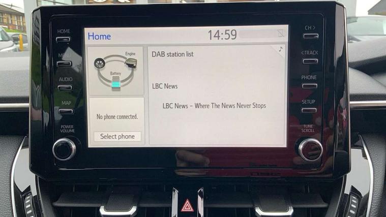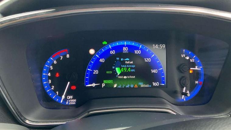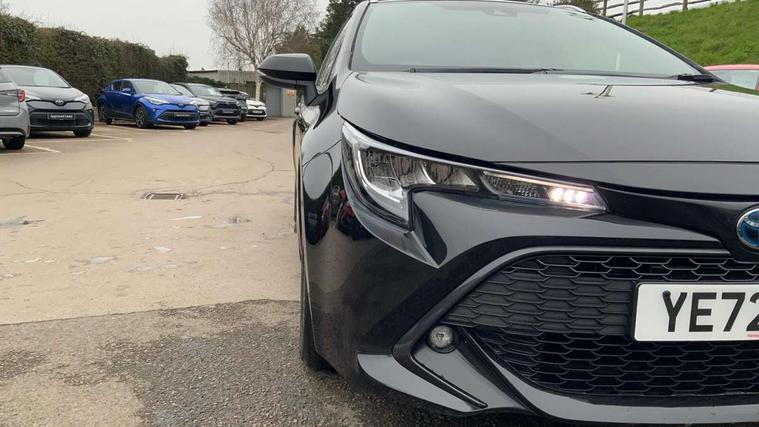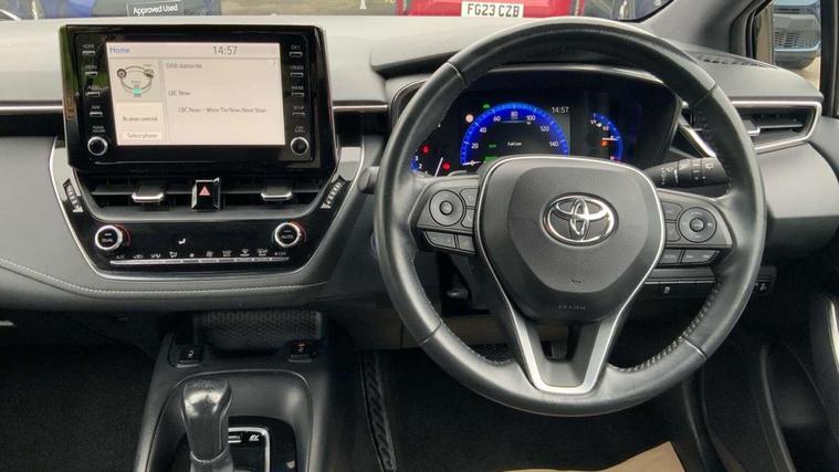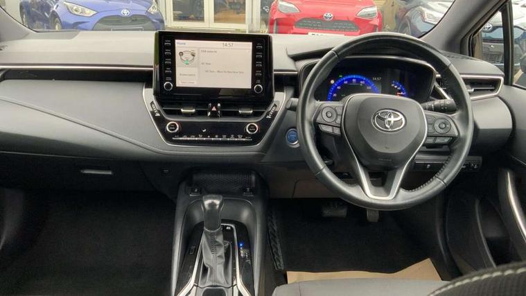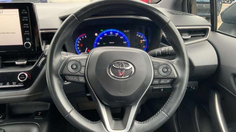 7" Multi information display screen, Bluetooth telephone connectivity, Connected car functionality upgrade, tracker, remote status and e-care, Dynamic radar cruise control (with RSA) including switch on steering wheel, E-call, Electrically assisted power steering, EV drive indicator, Lane Departure Alert (LDA) switch on steering wheel, Memory on adjustable speed limiter, Push button start, Reversing camera, Smartphone integration with Apple CarPlay and Android auto, Gasoline particulate filter, Vehicle Stability Control (VSC), 6 speakers, 8" Touchscreen with MM19 Multimedia system and voice recognition, AM/FM radio, DAB Digital radio, USB and Aux in connectors + 12V front outlet, USB charging port in centre storage box, Aluminium roof rails, Anti-jam protection on power windows, Auto up and down function on all power windows, Automatic headlights with high beam assist, Black metallic surround on lower front grille, Black toyota logo in front, Body colour rear spoiler, Body coloured bumpers, Body coloured door mirrors, Body coloured outside door handles, Follow me home headlights, LED daytime running lights, LED front fog lights, LED Headlights, LED High mounted stop light, Manual day/night rear view mirror, Noise reduction layer on front windows, Power adjustable heated door mirrors, Power front windows, Power rear windows, Rain sensor, Rear side wing doors, Rear window defogger, Rear window wiper, Shark fin antenna, Time adjustment on intermittent wiper, Turning signal integrated indicators in door mirrors, Unique lower skirt, Unique side rocker with black insert, UV-filter on driver and passenger windows, 12v power outlet - luggage side, 3 rear headrests, 3 seat bench in 2nd row, 3 spoke leather steering wheel + gear knob, 60/40 split folding rear seat, Adjustable speed limiter switch on steering wheel, Audio, multimedia and telephone switches on steering wheel, Boot light, Boot underfloor storage, Clean air filter, Driver and front passenger personal light, Driver and passenger assist grip, Driver and passenger sun visor with mirror and light, Dual sided deck board in boot, Dual zone automatic air conditioning with ECO mode switch, Fabric armrests, Front and rear cup and bottle holders, Front and rear door pockets, Front head restraints, Front passenger seat, Heated driver and front passenger seats, Illuminated entry system in room lamp, ISOFIX seat fixing (2 fixings on rear outer seats), Leather gear shift with satin chrome on gear shift console, Manual height adjustable for driver and front passenger seat, Paddle shifts, Passenger seat back pocket, Pollen filter, Power adjustable lumbar support on driver seat, Power window switches with satin chrome inserts, Quilted fabric upholstery with grey stitches seats, Rear armrest with 2 cupholders, Rear passenger air vents, Rear passenger coat hooks (2), Rear passenger personal lights, Retractable tonneau cover with luggage partition net, Satin chrome inside door handles, Shopping bag hooks in luggage compartment, Sliding armrest on centre console box, Slow opening glovebox with lights, Tilt/telescopic steering column, Tonneau cover with under floor storage, Voice recognition switch on steering wheel, Whiplash Injury Lessening (WIL) feature (active headrest) for seats, Toyota safety sense 2 pack - Corolla, 3x3 point rear seatbelts, Adjustable driver and front passenger seat belt extender to top anchor point, Anti lock braking system + Electronic brake force distribution, Brake assist function, Child locks on rear doors, Downhill Assist Control (DAC), Electronic parking brake, Emergency brake light signal (EBS), Front passenger airbag on/off switch, Front seatbelt reminder, HAC - Hill start assist control, Rear seat belt reminder, Seatbelt pretensioners and force limiters, Supplemental restraint system (SRS) 7 airbags - dual driver, dual side curtain, side impact and driver knee airbags, Traction control, Tyre pressure warning system, Acoustic vehicle alert system (AVAS), Alarm with motion sensor and immobilizer, Remote central locking + deadlocks, Satin chrome dash trim, Soft touch texture on upper dashboard, Stitching on lower dashboard, Space saver spare wheel, Unique wheel finish with red wheel cap,