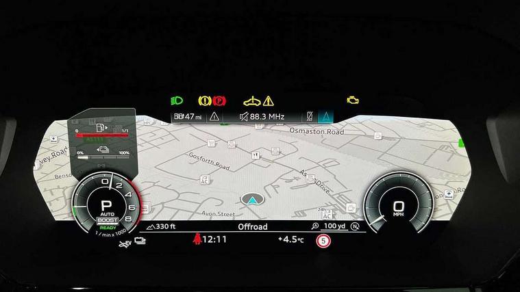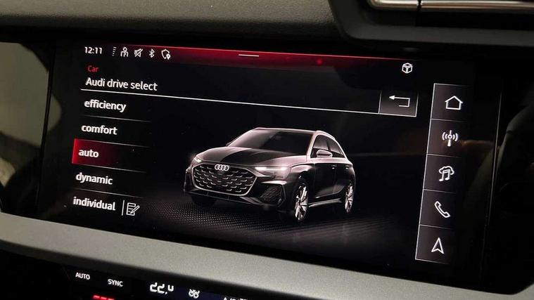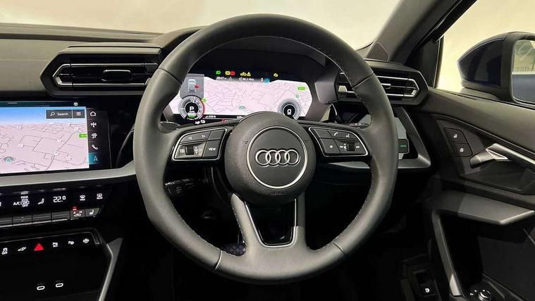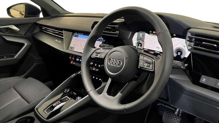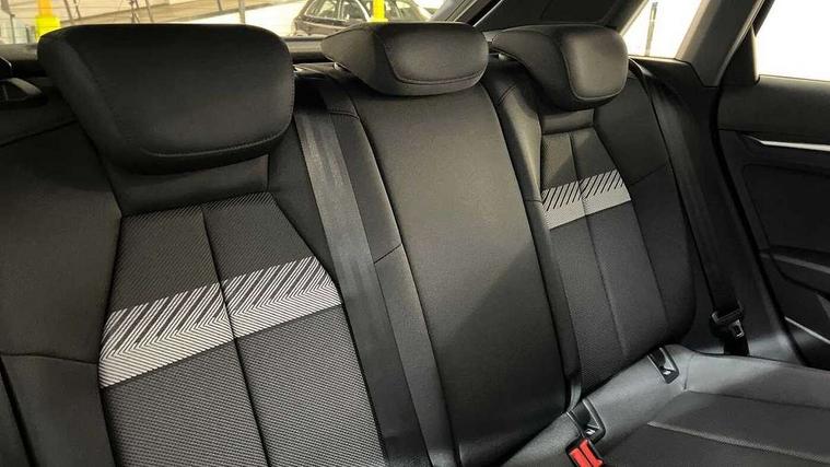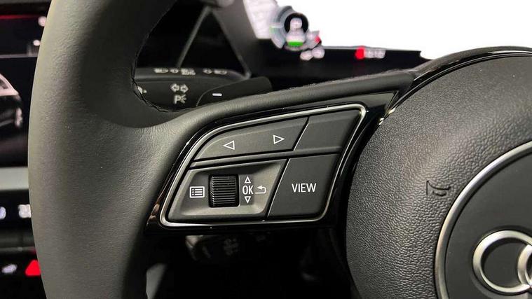 Adaptive cruise control (ACC), Adjustable speed limiter, Audi drive select (Auto, Comfort, Dynamic, Efficiency and Individual), Audi virtual cockpit plus - 12.3" full HD resolution dynamic digital instrument cluster, Automatic start/stop system with recuperation, Bluetooth interface, Camera based traffic sign recognition, Collision avoidance assistant, Driver attention and fatigue detection, e-Call (emergency call), Electromechanical power speed sensitive steering, Emergency assist, Intersection assist, Lane departure warning system, MMI Navigation Plus with high resolution 10.1" colour touch screen display, Park Assist with parking system Plus, Reversing camera, Service indicator, Smartphone interface with app store includes wireless Apple carplay, Android auto and Amazon alexa integration, Trip computer, Voice control system with natural language interaction, CCS socket for DC charging, Charging cable for public charging, mode 3 (type 2), 32 A, Standard suspension, Type 2 socket for AC charging, Audi Phonebox light with wireless charging, Audi sound system - 10 loudspeakers including centre loudspeaker and subwoofer, DAB Digital radio, USB ports with charging function in the rear, 3rd brake light, Acoustic glass windscreen, Aluminium window trim, Auto dimming frameless rear view mirror, Body colour exterior mirrors, Body colour roof spoiler, Electrically adjustable/heated/folding/auto dimming door mirrors with integrated LED indications + kerb view function for passenger side, Exterior model badging, Front electric windows, Front radiator grill in high gloss dark chrome, Front side air inlets in grained matt black with silver frame, Heat insulating glass windscreen, Invisible tailpipe, LED daytime running lights, LED headlights and halogen rear lights, Light and rain sensors, Rear diffuser and grill in grained matt black with silver frame, Rear electric windows, Rear side wing doors, Rear window, rear door windows and rear side windows in clear glass, Rear wiper, 12V socket and storage compartment in front centre console, 3 seat bench in 2nd row, 3 spoke leather multifunction steering wheel with gear shift paddles, 3-zone deluxe automatic air conditioning, 4 way electrically adjustable lumbar support for driver and front passenger, 60/40 split folding rear seat bench, Black front and rear floor mats, Convenience auxiliary air conditioning, Front and rear headrests, Front centre armrest, Front door sill trims with aluminium inlay, Heated front seats, Height and reach adjustable steering wheel, i-Size child seat mounting on the front passenger side and outer rear seats, i-Size and top tether on the outer rear seats, Manual boot compartment lid, Manually adjustable front seats, Routine cloth upholstery with front sports seats, Seat side bolsters, Single front passenger seat, Steel grey cloth headlining, Aluminium interior elements pack - A3, LED interior lighting pack -A3, 3x3 point rear seat belts, Acoustic vehicle alerting system, Driver and front passenger airbag with passenger airbag deactivation, Electronic Stabilisation Control (ESC) including ABS, ASR and EDL, First aid kit with warning triangle and 2 safety vests, Front side airbags with head airbags and interaction airbag, Hill hold assist, Pre-sense front with pedestrian and cyclist detection, Seatbelt monitoring, Tyre pressure loss indicator, Anti theft alarm, Anti-theft wheel bolts, Electronically operated child locks, Immobiliser, Black dashboard, Inlays in volcano grey fine paint finish, Tyre repair kit,