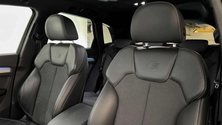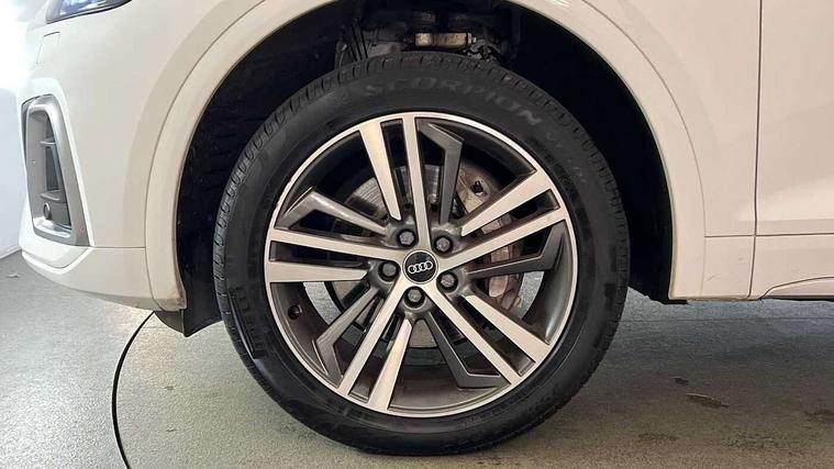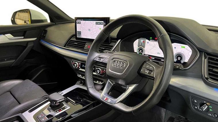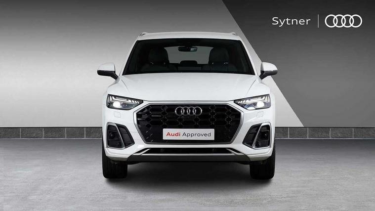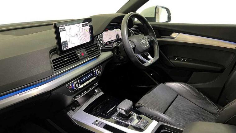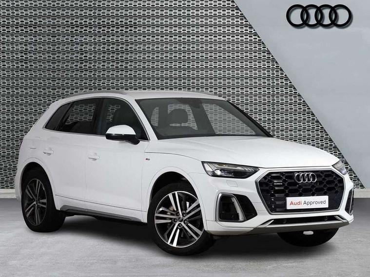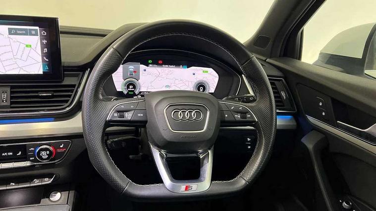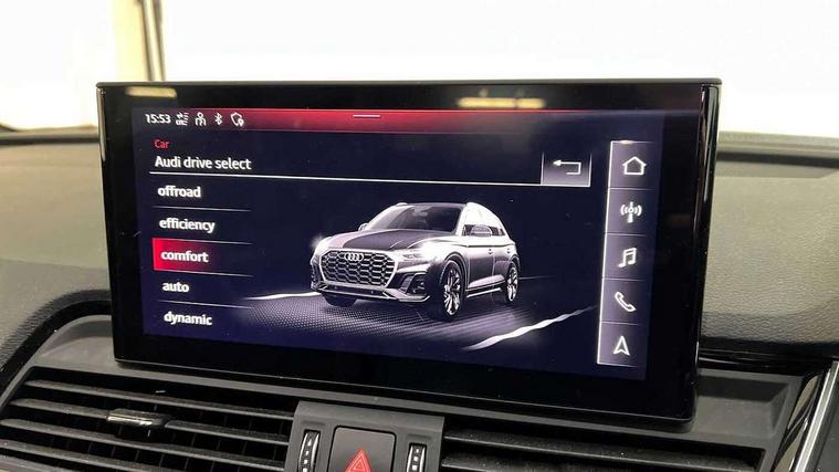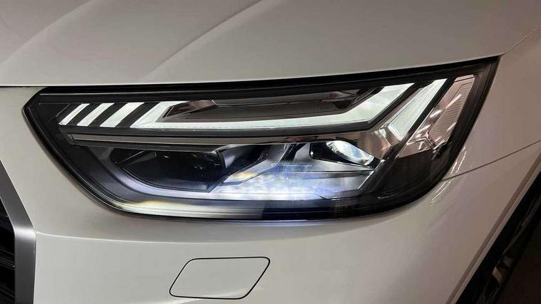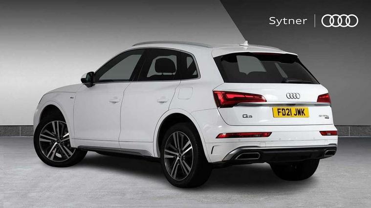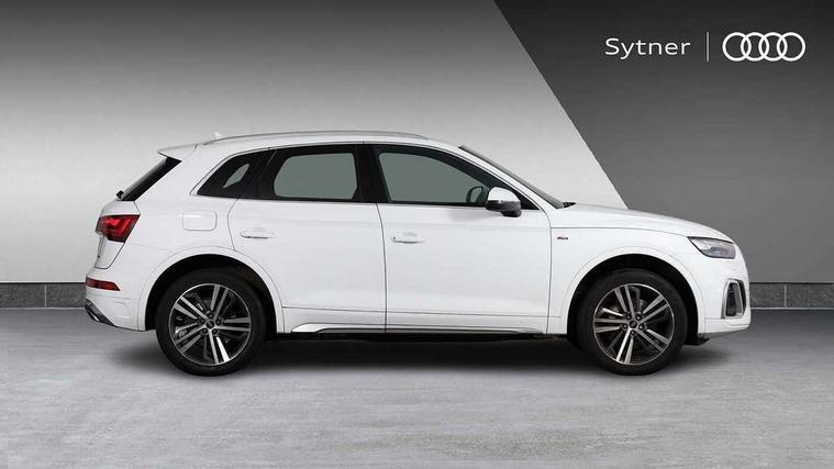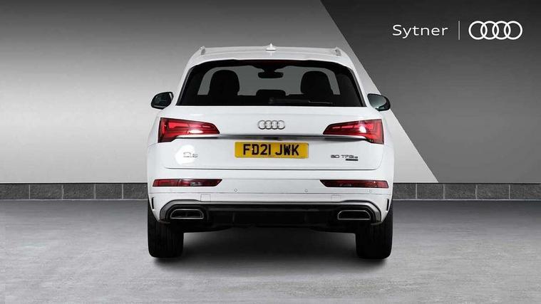 Audi connect safety and service (e-call), Audi connect with Amazon Alexa Integration, Audi drive select, Audi virtual cockpit plus with 12.3" screen and three different layout designs, Audi wireless smartphone interface, Automatic start-stop system with coasting functionality and efficiency programme, Bluetooth interface, Electro - mechanical power assisted steering, MMI navigation plus with 10.1" touch screen, Power tailgate, Reversing camera, Service interval indicator, Voice control system with Audi hotword activation "Hey Audi", 3 pin 10 amp domestic charging cable, Dynamic suspension, Quattro on demand, Type 2 mode 3 22kW 32 amp charging cable, Type 2 socket for AC charging, 2 x USB charging port with aux input socket, DAB Digital radio, Acoustic windscreen, Aluminium roof rails, Audi matrix LED headlights with dynamic front and rear indicators, Auto dimming rear view mirror, Automatic headlights and windscreen wipers, Body colour bumpers, Body colour door mirrors, Body colour rear diffuser with matt aluminium silver surrounds, Body colour underbody protection, Chrome plated exhaust trims, Door sills in Selenite silver, Electric adjustable/heated/folding door mirrors, Front air inlet surrounds in aluminium, Front and rear electric windows, Front radiator grille in honeycomb design, Headlight washers, Lower bumpers painted in contrast Manhattan grey, Rear chrome trim strip below lights, Rear privacy glass and rear side windows, Rear spoiler, Rear wiper, Roof bars, S Line badges on the front wings, S Line front and rear bumpers, S Line side skirts, 3 rear headrests, 40:20:40 split folding rear seat with rear centre armrest, Black cloth headlining, Comfort front centre armrest, Contrast stitching on seats, steering wheel and gear lever gaiter, Deluxe 3 zone electronic climate control, Front/rear floor mats, Gear lever in black leather, Heated front seats, Height adjustable front head restraints, Height/reach adjustable steering column, Illuminated door sill trims with S logo, ISOFIX child seat mounting and top tether, Manual seat adjustment with 4-way electric lumbar support, Rear seat bench plus, Sunvisors with vanity mirrors, Trunk roller cover, High gloss pack - Q5, LED interior light pack - Q5, 3 point seatbelts on all seats, 6 airbags - Driver, front passenger, curtain and side airbags, Electrically operated child locks on rear doors, Electromechanical parking brake, Electronic stabilisation control including ABS, ASR and EDL, Front passenger airbag deactivation, Hill descent control, Hill hold assist, Multi collision brake assist, Pop-up bonnet for pedestrian protection, Pre sense city, Seat belt force limiter, Seatbelt monitoring, Tyre pressure warning, Warning triangle and first aid kit, Anti theft alarm, Anti-theft wheel bolts, Keyless Go access/ignition system, Matt brushed aluminium inlays, Tool kit, Tyre repair kit,
