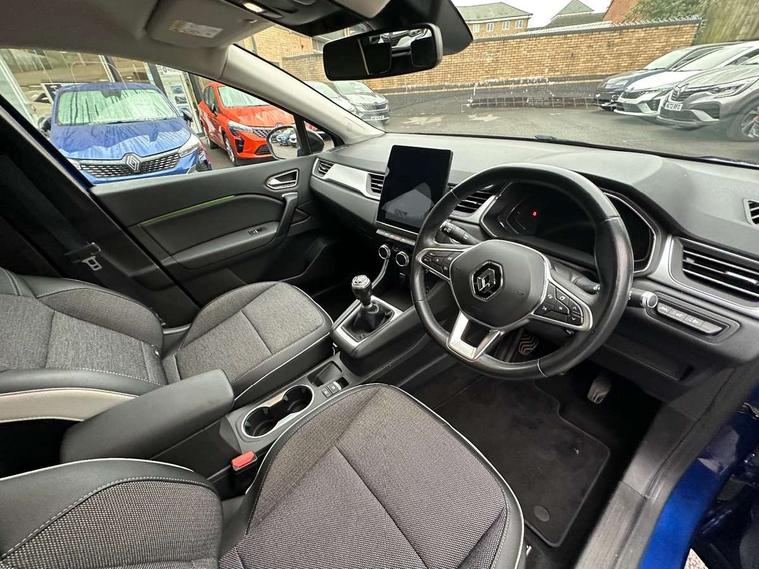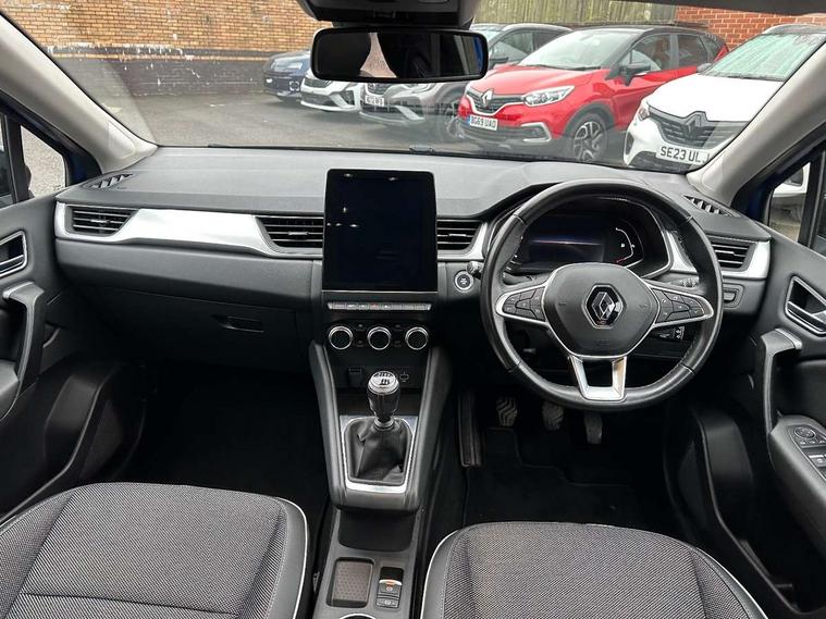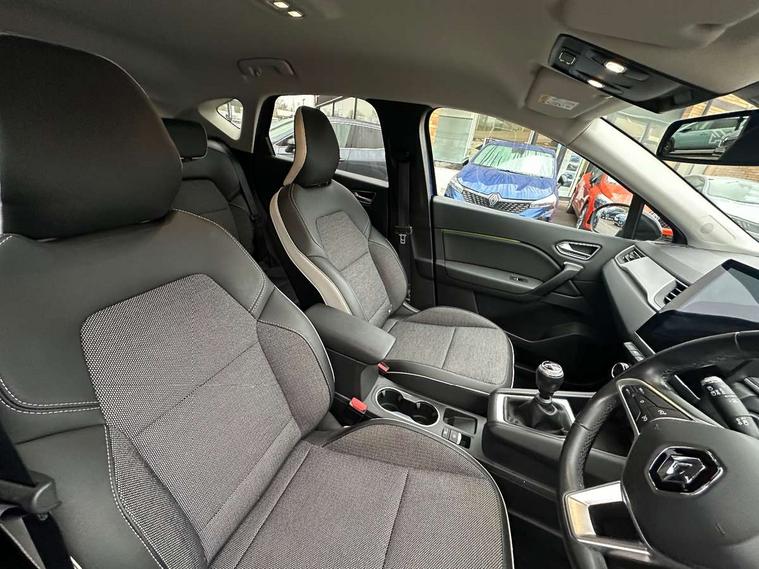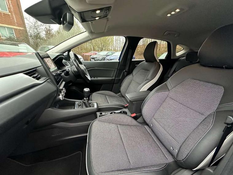Blind spot warning, eCall emergency call system, Eco mode, Gear change indicator, Lane departure warning system, Multisense system - Ambient lighting and Driving mode selector, Renault automatic emergency assist, Traffic sign recognition, Trip computer, Variable assistance power steering, Wireless Mobile Phone Charger, EasyLink Nav 9.3" touchscreen, 4x20W amp, FM DAB, sound auditorium, 2xUSB, 1xJack, Bluetooth, smartphone integration plus, Apple carplay/Android auto, 2 Tone body colour roof, Auto dimming rear view mirror, Automatic front wipers with rain sensors, Automatic high beam - AHB, Body colour door handles, Body coloured bumpers, Body coloured door mirrors, Electric adjustable/heated/folding door mirrors, Electric front windows + one touch + anti-pinch, Electric rear windows, Extra tinted glass in rear windows and tailgate, Full C-shape LED front and rear signature lighting with daytime running lights at the front and at the rear, Gloss black side door protection with chrome effect, LED front fog lights, Rear fog lights, Rear wiper, Roof bars, Shark fin antenna, Variable speed on front windscreen wipers, 12V Accessory socket, 3 rear headrests, 5.2L front glovebox, 60/40 split folding rear seat bench, Automatic climate control with one touch demist function, Centre console storage tray, Front head restraints, Heating system with pollen filter, Height adjustable driver's seat, Height/reach adjust steering wheel, ISOFIX child seat fixing points on rear outermost seats, Leather steering wheel, Middle console with armrest and storage, Rear air vents, 3 rear seatbelts, ABS+EBA, AEBS, Distance warning alert, Driver and front passenger, side, head and curtain airbags, Driver height adjustable seat belt, Electric parking brake with auto hold function, Electronic stability control, Front and rear no seatbelt warning sound, Front dash warning indicator in case of heavy braking, Front driver and passenger side airbag deactivation, Hill start assist, Rear door and window child locking function for rear door, Tyre pressure warning light, Anti drill door locks and locking fuel cap, Central door locking, Deadlocking system, Hands free keycard with push button and start/stop function, RAID (Renault Anti-Intruder Device) automatic door locking, Remote central locking with thatcham approved immobiliser, Black soft touch dashboard with black gloss air vent surrounds,