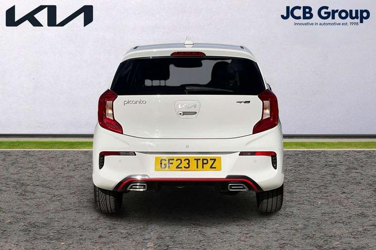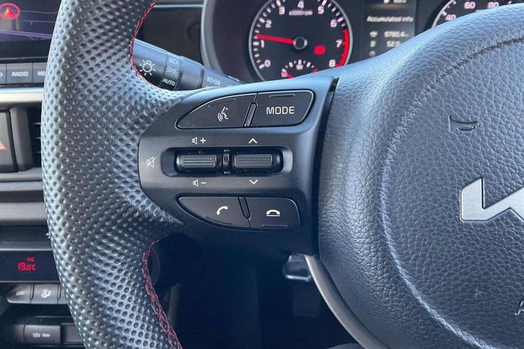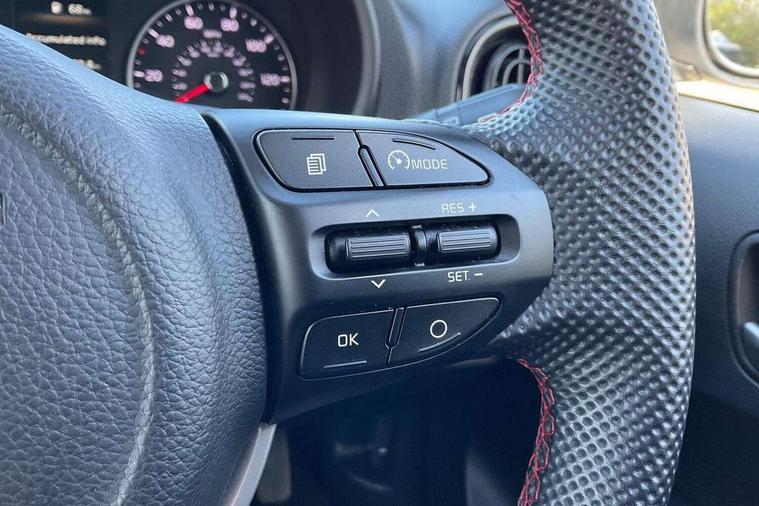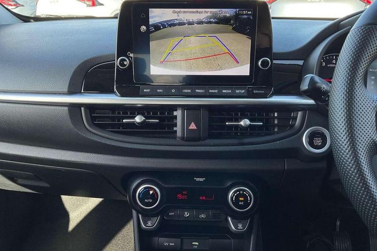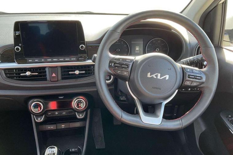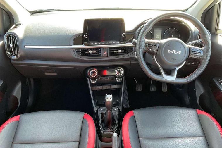 8" touch screen satellite naviagtion with RDS and DAB with telematics, Apple car play/Android Auto with voice control, Cruise control + speed limiter, Emergency call service, Emergency stop signalling system, External temperature gauge, Kia Connect (UVO), Motor driven power steering, Rear parking sensors, Reversing camera system with dynamic guidelines (Integrated into centre fascia screen), Tachometer, Trip computer, Wireless Smartphone charger, 6 speaker audio system, Bluetooth with music streaming, Steering wheel mounted controls, USB ports for connection of a media device, Automatic headlight control system, Bi-function projection headlights, Black beltline mouldings, Black grille with silver surround, Body colour B pillars, Body colour bumpers, Body colour side sill mouldings, Body coloured mirrors and chrome exterior handles, Day/night rear view mirror, Electric adjustable/heated/folding door mirrors with LED indicators lights, Front and rear electric windows with drivers's auto up/down function, Front fog lights, Headlamp levelling, Heated rear window, High mount brake light, LED daytime running lights, LED rear fog lights, Privacy glass - Rear windows and tailgate, Rain sensor, Rear side wing doors, Rear wash/wipe, Speed variable front wipers, Sports front and rear bumpers with gloss black skid plates twin exhaust, Tinted glass, Visible VIN plate, Welcome and follow-me home light functionality, 1 x rear coat hook, 12V power point front, 2 seat bench in 2nd row, 3 x passenger assist grips, 60/40 split/folding 2nd row of seats, All round height adjustable headrests, Automatic air conditioning, Black and red accents front door armrest, Centre Console with Storage Box and Sliding Armrest, Cupholders in centre console, D-cut steering wheel with red stitching, Driver and front passenger sunvisors with driver's side illuminated vanity mirrors, Driver seat height adjust, Faux leather upholstery, Front cabin lights, Glovebox, Heated front seats, Heated steering wheel, High gloss lower centre fascia trim, door armrest and air vents, ISOFIX Child seat top tethers and anchor fixings, Leather trimmed steering wheel and gearshift, Luggage area light, Luggage area parcel shelf, Passenger front seatback pockets, Satin chrome interior door handles, Single front passenger seat, Slide/reclining front seats, Tilt adjustable steering wheel, Advanced Driver Assistance Pack - Picanto, 2 x 3-point rear seatbelts, ABS/EBD, Automatic unlocking of doors in case of impact, Dual front airbags, ESC + BAS + VSM + HAC, Front passenger airbag cut-off switch, Front seatbelt height adjusters, Front seatbelt pretensioners + load limiters, Hill hold control, Knee airbags, Rear child proof door locks, Seatbelt warning, Side impact protection, Torque vectoring brake based and straight line stability (SLS), Traction control, Twin curtain airbags, Twin front side airbags, Tyre pressure monitoring system, Anti theft alarm, Engine immobiliser, Locking wheel nuts, Smart key with engine start/stop button, 16" alloy GT-Line wheels, Tyre mobility kit,