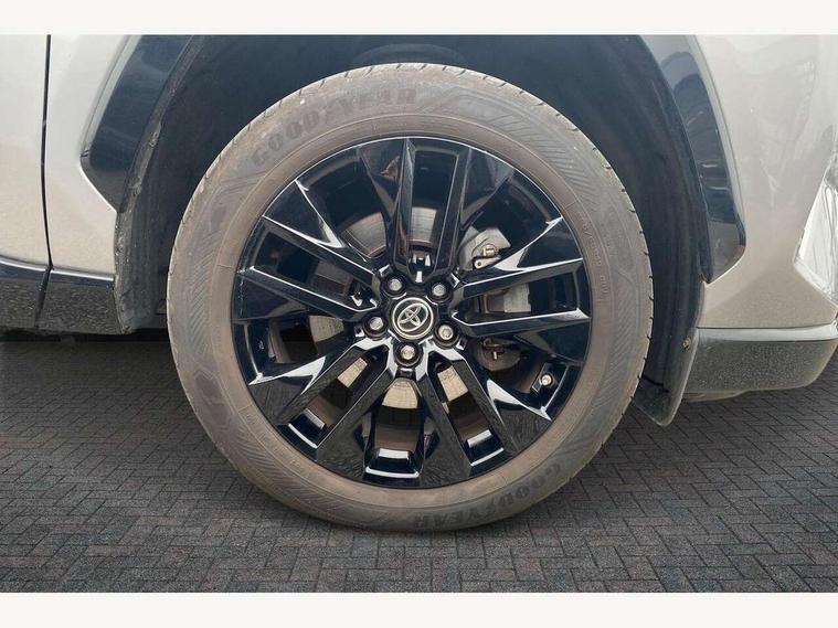 7" TFT multi information display, Analog tachometer, Apple car play and Android auto, Blind spot monitoring with rear cross traffic alert, Bluetooth system, Cyclist Detection, Drive mode selector, eCall emergency call system, ECO-driving indicator, Electric power steering, EV audible alert, Front parking sensors, Full range intelligent adaptive cruise control, Hybrid system indicator, Lane departure warning system, Lane trace assist, Lights on warning, Memory on adjustable speed limiter, My T Connected services, Night Time Pedestrian Detection, Power boot opening and closing, Push button start, Rear parking camera, Rear parking sensors, Remote boot door release in cabin, Remote boot door release in key, Road sign assist - RSA, Touch 2 Go navigation system including 3D maps and voice control, Traffic sign recognition, Trip computer, Voice control system, Vehicle Stability Control (VSC), 6 speakers, 8" Multimedia display touch screen, Auxiliary socket for external MP3 player, DAB audio, Toyota touch media system, USB connection, Adaptive automatic high beam, Automatic headlamp levelling, Automatic headlights, Automatic wipers, Automatically retractable door mirrors, Black rear spoiler, Black roof rails, Black Shark-fin antenna, Body colour door handles, Door mirror puddle lights, Dual exhaust pipes, Electric adjustable door mirrors, Electrochromatic rear view mirror, Emergency brake-light signal (EBS), Follow me home headlights, Front fog lights, Glass black protection moulding on side doors, Gloss black door mirrors, Gloss black front and rear bumper, Heated door mirrors, LED daytime running lights, LED High mounted stop lamp, LED rear combination lights, Meshed shape upper front grille, Power front windows, Power rear windows, Privacy glass, Projector LED headlights, Rear screen wiper - intermittent, Rear side wing doors, Rear windscreen defogger, Rear wing door, Silver front under-run, Silver rear under-run, Trailer sway control, Turning signal integrated indicators in door mirrors, 3 rear headrests, 3 seat bench in 2nd row, 60/40 split fold rear seat back, Black roof lining, Boot light, Clean air filter, Driver and front passenger personal light, Driver and front passenger Whiplash Injury Lessening seats, Driver and passenger sunvisors with illuminated vanity mirrors, Dual sided deck board in boot, Dual zone automatic air conditioning, Dynamic sports seats, Floor mats, Folding rear centre armrest, Front and rear bottle holders, Front centre armrest, Front footwell lights, Front headrests, Front seat and rear pockets, Front/rear roof mounted assist grips, Heated driver and front passenger seats, Illuminated entry system, Isofix child seat preparation, Leather gear shift with chrome surround, Light blue ambient lighting on front cupholders and open tray, Manual telescopic and tilt 3-spoke leather steering wheel with Chrome insert, Manually reclining and sliding front passenger seat, Multimedia switches on steering wheel, Pollen filter, Power height-adjustable sliding reclining and lumbar support for driver seat, Rear coat hooks, Rear door armrests, Rear passenger air vents, Rear view display in display audio screen with dynamic guide lines, Reclining rear seats, Satin chrome interior door handles, Sunglasses holder, Synthetic leather upholstery, Telephone and voice recognition switches on steering wheel, 3x3 point rear seatbelts, ABS/EBD, Acoustic vehicle alerting system, Adjustable front driver and passenger seat belt extender, Brake assist function, Brake hold function, Child proof door locks, Collision mitigation braking system, Driver/Front Passenger airbags, Driver/front passenger side airbags, Drivers knee airbag, Electronic parking brake, Electronic Stability Programme (ESP), Front and rear curtain airbags, Front and rear seatbelt reminder, Front passenger airbag detector, Hill start assist, Passenger airbag cut-off device, Pedestrian detection, Pre collision system, Seatbelt pretensioners with load limiters, Toyota safety sense, Traction control, Tyre pressure warning, Glass-breaking alarm sensors, Immobiliser, Intrusion alarm, Light - on and Key in reminder, Motion sensor alarm, Remote central locking, Smart entry + Smart start, Speed sensitive auto door locking, Tilt detection sensors, Piano black centre console with silver insert, Soft-touch black lower dashboard, Soft-touch black upper dashboard with silver insert, 19" 10 spoke black alloy wheels, Tyre repair kit,
