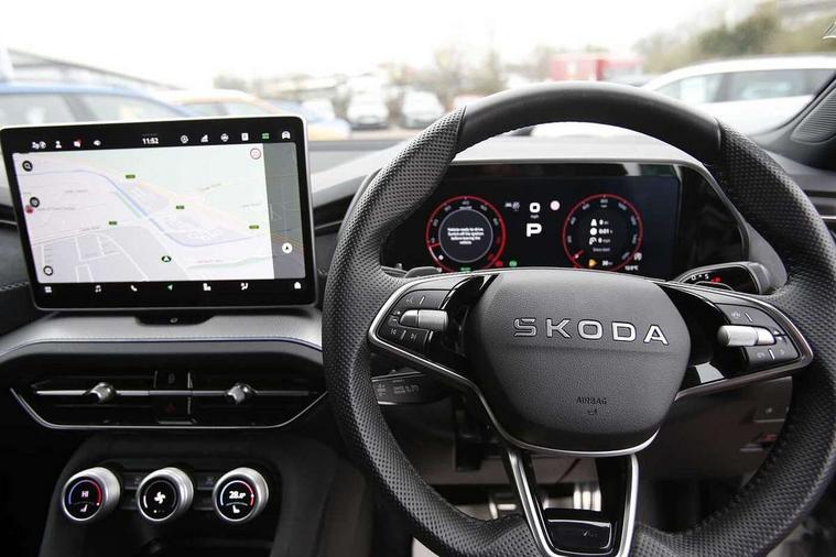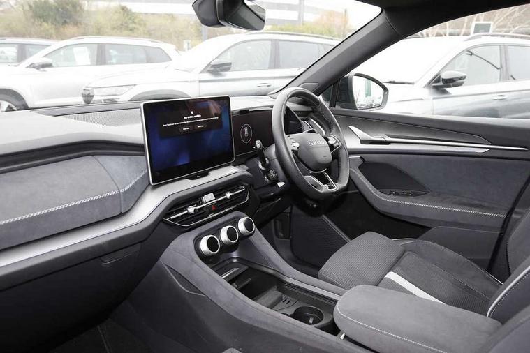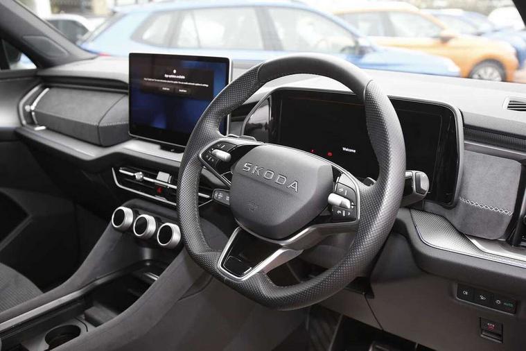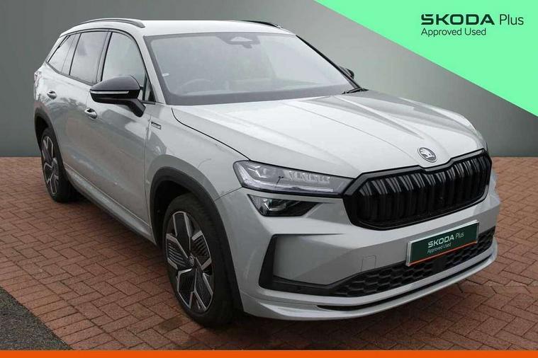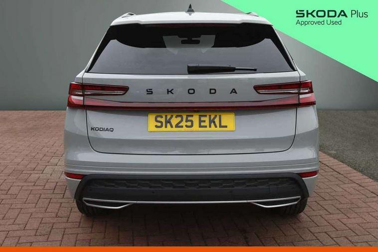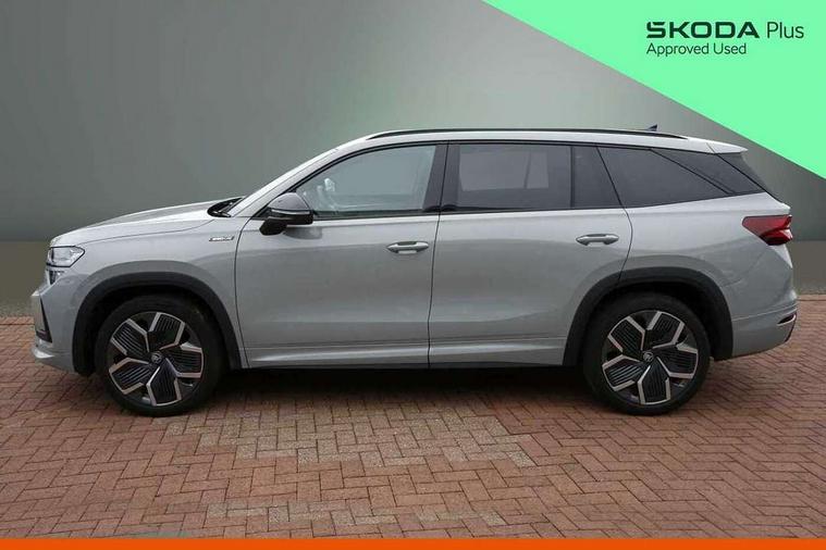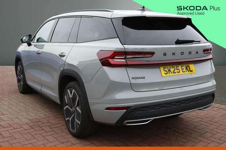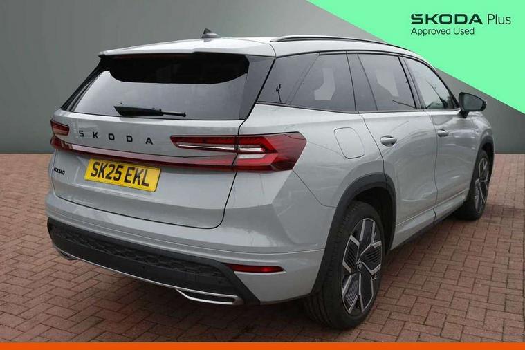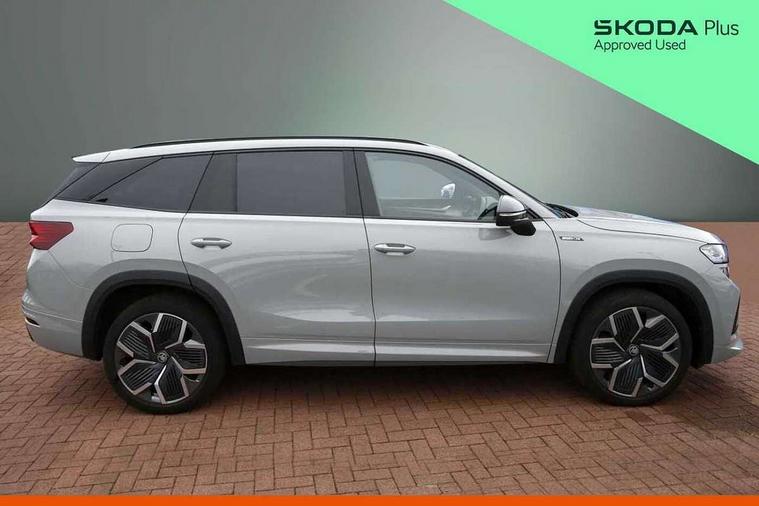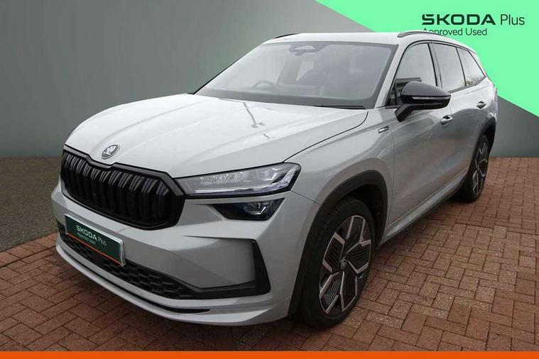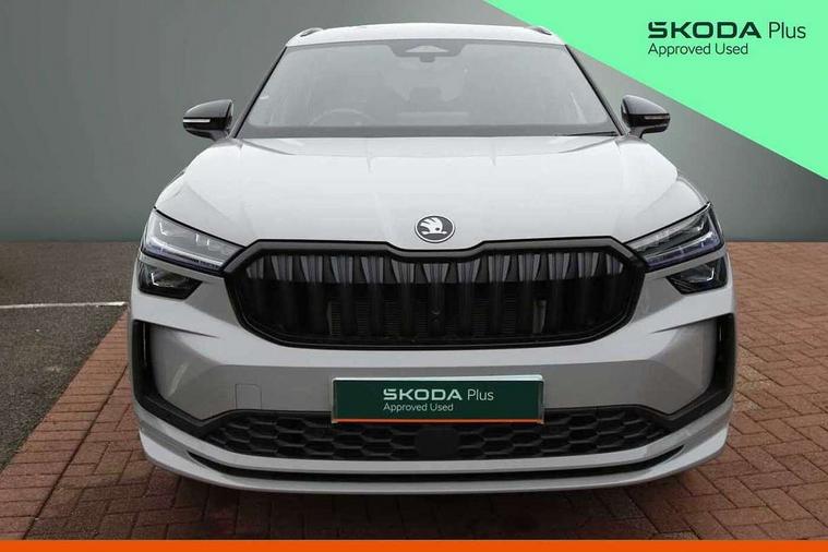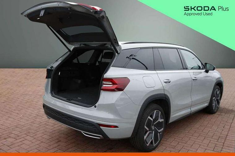 13" satellite navigation touchscreen display, Blind spot detection with door exit warning, Bluetooth system, ChatGPT functionality, Driver alert - Fatigue and drowsiness monitor, Dry display cleaner, Emergency call, Front and rear parking sensors, Front cross traffic assist, Lane assist, PAS, Rear traffic assist, Tailgate unlocking from outside, Traffic sign recognition, USB C Port x 2 in front centre console, Virtual Cockpit - 10.25" digital display, Voice control system, Wireless charging for two smartphones (15W) with cooling function, Wireless SmartLink for Apple CarPlay and Android Auto, Stop/start function, 2x USB-C in the rear, DAB Digital radio, Aero front windscreen wipers with intermittent function, Auto dimming rear view mirror, AWL (all weather lighting) and all weather light with cornering function, Black diffuser and decorative tailpipe with a unique dark chrome finish, Black roof rails, Black sports styling including front grille and window surrounds, Black wheel arch surrounds, Body colour door handles, Cornering light and poor weather light, Electric folding /adjustable/separted heated/folding door mirrors, auto dimming with boarding sports and memory function, Electric front and rear windows, Exterior black decorative trims, Front and rear sports bumpers including lower rear chrome strip, Gloss black door mirrors, Gloss black window frame and D pillar, Heat insulating glass in windshield, Heated rear window, Ice scraper in fuel tank cap, LED daytime running lights, LED third brake light in rear spoiler, Light assistant with automatic headlight control and coming home feature, Logo projection in door mirrors, Privacy glass, Rear roof spoiler, Rear side wing doors, Rear window wiper, Red decorative strip between rear LED lights, Safety reflectors on front and rear doors, Sportline badge on front fenders, Tailgate lettering in Black, Unique dark chrome design logo on alloy wheels, Window control switches with black trim, Windscreen wipers with rain sensor, Without engine designation, 1.5l bottle holder points in all door, 1x centre rear reading light, 2 seat bench in 3rd row, 3 configurable smart dials with 32mm coloured display, 3 seat bench in 2nd row, 4 foldable roof handles with rear coat hooks, Aluminium pedals, Ambient interior lighting - Dashboard, front-door stowage compartments, front and rear door panels and footwell lighting, Automatic gear selector on steering column, Chrome interior door handles, Driver/front passenger reading lights, Fabric headlining, Fixed bench 40:60:40 split folding backrests, Front and rear floor mats, Front centre armrest with jumbo box storage compartment, cup holder and 12V socket, Front sport seats, Height adjustable front headrests, Interior black decorative trims, Isofix child seat fittings in outer middle row rear seats and front passenger with top tether, Manually adjustable steering column, Pollen filter, Rear centre armrest with cupholders, Rear seat boot backrest release, Single front passenger seat, Skoda lettering on steering wheel, Storage pocket including mobile phone pockets on the backs of the front seats, Sunvisors with illuminated vanity mirrors, Three rear height adjustable headrests, Ticket holder on A Pillar, Tri zone climate control, Umbrella in door panel x1 made from sustainable materials, Upper and lower glovebox with card holder and coin compartment, USB C port by rear view mirror for charging only (15W), Acoustic package - Kodiaq, Performance package - Kodiaq, Sportline design selection pack - Kodiaq, Auto door release and activation of warning lights in the event of an accident, Driver and front passenger airbag with knee airbag and front passenger airbag deactivation, Electric child locks, Electronic parking brake, ESC (incl. ABS+EMD+MSR+ASR+EDL+HBA+DSR+RBS+ESBS+MCB+TSA+XDS), Front assist with braking reaction to vehicles, pedestrians and cyclists, Front disc brakes, Fuel cut off safety device, Height adjustable front 3 point seatbelts + pretensioners, Hill hold assist, Junction assist with automatic emergency braking, Rear disc brakes, Safety vest holder in door, Seat belt reminder for all seats, Three point rear seat belts, Two tone horn, Tyre pressure monitor, Alarm with interior monitoring and tilt sensor with safe function, Anti-theft wheel bolts, Immobiliser, Remote central locking with 2 keys, 20" Rila anthacite polished alloy wheel with black matte aero covers,