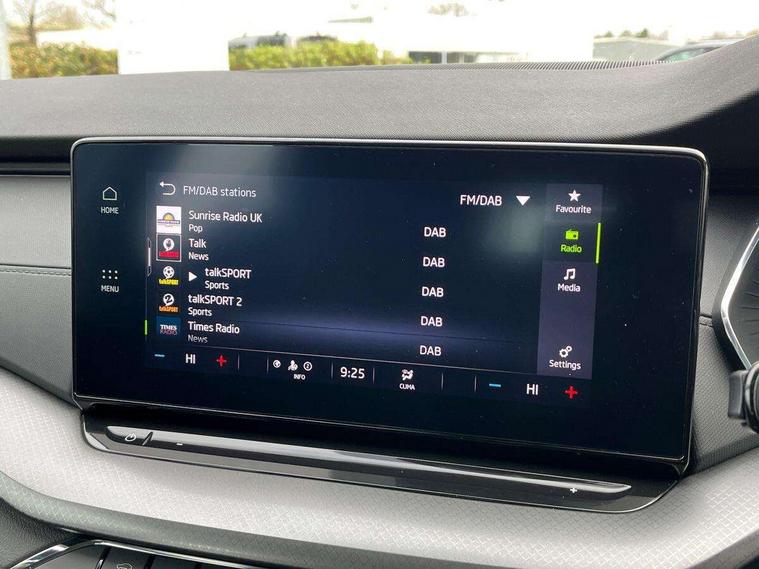 1x USB Type C port in rear view mirror (charging only), 2x USB Type C ports in rear of front centre armrest (charging only), Bluetooth system, Boot lid release from inside vehicle (electrically), Columbus satellite navigation with 10" touchscreen display, Electro-mechanical power steering, Front and rear parking sensors with manoeuvre assist, Front assist system, Smartlink (includes android auto and mirrorlink), Speed limiter, Turn Assist, Virtual Cockpit - 10.25" digital display, Voice control system, Wireless SmartLink for Apple Car Play, 2x USB Type C ports (for charging and data transfer), 8 Speakers, DAB Digital radio, Aero front windscreen wipers with intermittent function, Black roof rails, Black window surrounds, Body colour door mirrors and handles, Chrome grille surround, Dimming rear view mirror, Electric front and rear windows, Electrically adjustable and heated door mirrors, Heated rear windscreen, High level third brake light, Ice scraper in fuel cap, Rain and light sensors, Rear fog light on one side, Rear spoiler, Rear window wiper, 4 foldable roof handles, Chrome inner door handles, Climatronic dual-zone electronic air conditioning, Cloth upholstery, Front centre armrest, Front head restraints, Grey headlining, Height adjustable driver and front passenger seat with lumbar support, Illuminated air conditioned glovebox, Leather trimmed gearshift lever, Luggage compartment lighting with two side lamps, Parcel shelf - rolling, Satin black textured with artificial stiching in dash board pads, Sunglasses storage, Textile floor mat set, Ticket holder, Two-spoke leather multi function steering wheel with paddles, Umbrella in door panel, Unsplit rear bench seat and split folding backrest, 3 point front/outer rear seatbelts+pre-tensioners, Alarm with interior monitoring, tilt sensor and back up horn, Automatic door unlocking in case of crash, Automatic fuel cut off in case of crash, Automatic warning lights in case of emergency braking, Curtain airbags and front side airbags, Driver and front passenger airbags, Drivers knee airbag, Electronic parking brake, Emergency call and proactive services, ESC including ABS, EBV, MSR, ASR, EDS, HBA, DSR, Hill hold control, Hill start assist, ISOFIX on front passenger seat and outer rear seats, Manual rear child locks, Passenger airbag deactivate switch, Rear disc brakes, Two tone horn, Tyre pressure monitor, Visual and acoustic seat belt reminder, Warning reflectors in front door, Door locks with immobiliser, Keyless start/stop, Remote central locking, Aluminium decorative inserts,