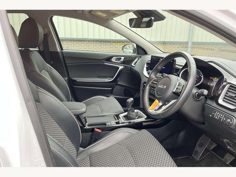 10.25" touchscreen satellite navigation with telematics, 4.2" supervision colour cluster display, Android auto with voice control, Apple car play with voice control, Bluetooth with Voice Recognition & Music Streaming, Cruise control + speed limiter, Driver attention warning, Emergency call service, Forward Collision-Avoidance Assist (FCA) - City/Pedestrian/Cyclist, Lane Following Assist (LFA), Lane keep assist, Motor driven power steering, Rear parking sensor, Reversing camera with dynamic guide lines, Tailgate, Trip computer, Intelligent Stop and Go, 1x Rear USB-C, 2x Front USB (1x USB-C, 1x USB-A), 7 speakers, DAB Radio with MP3, Rear console USB C-type charge port, Steering wheel mounted controls, All-round Electric Windows with Auto Up & Down Function, Auto dimming rear view mirror, Automatic defog system, Automatic headlights, Black side sill mouldings with chrome inserts, Black wheel arch trim, Body colour bumpers, Body colour exterior door handles, Body colour rear spoiler, Body coloured door mirrors with matt black lower housing, Body coloured shark fin antenna, Electrically folding, adjustable and heated door mirrors with integrated LED indicator lights, Heated rear window with timer, High beam assist, High glossy black and satin chrome rear skid plate, LED Bi-Function projection headlights, LED daytime running lights, LED front fog lights, LED High-mounted Brake Light, LED rear fog light, LED rear lights, Matt black and satin chrome radiator grille, Privacy glass - Rear windows and tailgate, Rain sensing front wipers, Rear side wing doors, Rear wiper, Satin chrome window surround, Silver roof rails, Smaller XCeed badge on rear left hand tailgate, Tinted glass, Variable front intermittent wipers, Wide view drivers door mirror, Windscreen Washer Level Warning, 3 seat bench in 2nd row, 60/40 split folding rear seat, All-round height adjustable headrests, Centre Console with Storage Box and Sliding Armrest, Chrome interior door handles, Cloth/faux leather upholstery, Cupholders in centre console, Driver + front passenger electric lumbar support, Driver and passenger front seat pockets, Driver's seat height adjuster, Dual zone automatic air conditioning, Faux leather door trim, Front and luggage area 12V power sockets, Front and rear door storage, Front cabin map light with sunglasses case, Front Passenger Seat Height Adjuster, Heated front seats, Heated steering wheel, Illuminated driver and front passenger sunvisors with vanity mirror, ISOFIX Child seat top tethers and anchor fixings, Leather steering wheel, Luggage area light, Luggage area parcel shelf, Luggage hooks, Rear cabin light, Rear centre armrest with cupholders, Single front passenger seat, Tilt/telescopic adjustable steering wheel, ABS with Electronic Brakeforce Distribution (EBD) and Brake Assist System (BAS), All round 3-point seatbelts, Dual horn, Electronic parking brake, Electronic stability control (ESC) and vehicle stability management (VSM), Front passenger airbag cut off switch, Height adjustable front seatbelts, Hill start assist control (HAC), Impact sensing auto door unlocking, Rear door child safety locks, Seatbelt reminder warning, Traction control, Twin curtain airbags, Twin front airbags, Twin front side airbags, Tyre pressure monitoring system, Alarm system, Engine Immobiliser & Deadlocks, Locking wheel nuts, Smart key with engine start/stop button, 18" Alloy wheels, Tyre mobility kit,