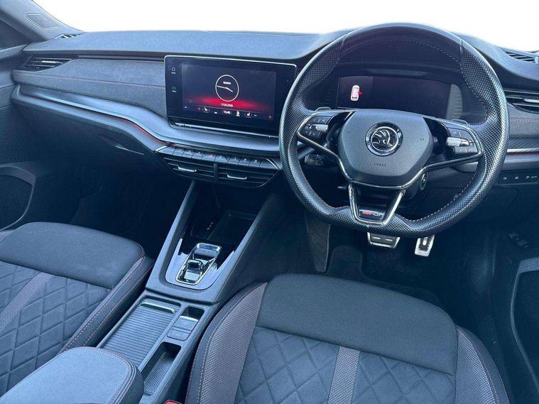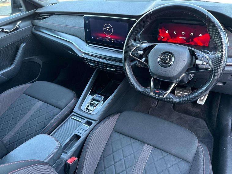 1x USB Type C port in rear view mirror (charging only), 2x USB Type C ports in rear of front centre armrest (charging only), Bluetooth system, Columbus satellite navigation with 10" touchscreen display, E mode button for electric/hybrid drive, eCall emergency system, Front and rear parking sensors with manoeuvre assist, Front assist system, Progressive dynamic steering, Smartlink (includes android auto and mirrorlink), Speed limiter, Turn Assist, Unique iV instrument panel, Virtual Cockpit - 10.25" digital display, Voice control system, Wireless SmartLink for Apple Car Play, 10 amp mains UK 3 pin charge cable mode 2, 16 amp AC charge cable for wallbox/charge points mode 3, E-noise generator for electric drive with noise emitted upto speed of 50km/h, Front and rear stabilizers, 2x USB Type C ports (for charging and data transfer), 8 Speakers, DAB Digital radio, Aero front windscreen wipers with intermittent function, Auto dimming rear view mirror, Black roof rails, Body colour door handles, Chrome exhaust tailpipes, Door sills with vRS logo, Electric front and rear windows, Exterior gloss black sports styling including front grille, side strip, window surrounds, door mirror and badging, Full LED Matrix headlights with AFS and cornering front fog lights, Headlight washers, Heated rear windscreen, High level third brake light, Ice scraper in fuel cap, LED daytime running lights, Rain and light sensors, Rear fog light on one side, Rear privacy glass, Rear side wing doors, Rear spoiler, Rear window wiper, Unique iV badge on tailgate, 3 seat bench in 2nd row, 4 foldable roof handles, Aluminium pedals, Black headlining, Black microsuede padded dash panel with red contrast stitching, Charging socket cover on front left fender, Chrome inner door handles, Front centre armrest, Front head restraints, Heated front seats, Illuminated air conditioned glovebox, Leather trimmed gearshift lever, Luggage compartment lighting with two side lamps, Mechanical rear seat release, Parcel shelf - rolling, Single front passenger seat, Sport button for hybrid drive delivering maximum system performance, Storage compartment for charging cables under the luggage compartment mat, Sunglasses storage, Textile floor mat set, Three spoke leather sports multifunction steering wheel with paddles, Ticket holder, Umbrella in door panel, Unsplit rear bench seat and split folding backrest, LED interior light pack - Octavia, 3 point front/outer rear seatbelts+pre-tensioners, Alarm with interior monitoring, tilt sensor and back up horn, Automatic door unlocking in case of crash, Automatic fuel cut off in case of crash, Automatic warning lights in case of emergency braking, Curtain airbags and front side airbags, Driver and front passenger airbags, Drivers knee airbag, Electronic parking brake, Emergency call and proactive services, ESC including ABS, EBV, MSR, ASR, EDS, HBA, DSR, Front and rear disc brakes, Hill hold control, Hill start assist, ISOFIX on front passenger seat and outer rear seats, Manual rear child locks, Passenger airbag deactivate switch, Red brake calipers, Two tone horn, Tyre pressure monitor, Visual and acoustic seat belt reminder, Warning reflectors in front door, Door locks with immobiliser, Keyless entry and start/stop including rear doors, Remote central locking, Carbon optic decorative inserts, Gloss black air vent surrounds, Unique decorative door sills front and rear, 19" Altair anthracite alloy wheels, Tyre repair kit,