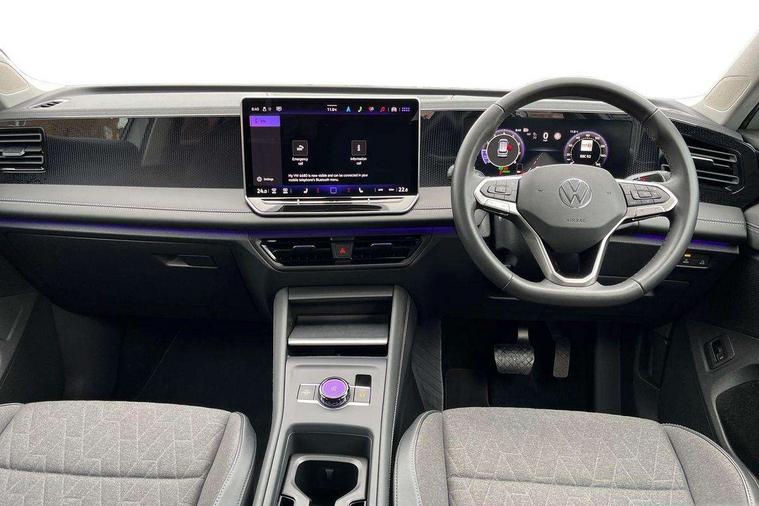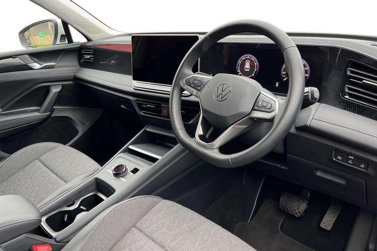 Adaptive cruise control (ACC), Advanced driver attention and drowsiness monitor, Bluetooth mobile phone interface, Car2X technology, Digital Cockpit Pro - 10.25" high resolution dash display screen with customisable menus and information, Dynamic road sign display, E-Sim card for online connectivity, eCall emergency call service, Front Assist - Autonomous emergency braking with pedestrian and cyclist monitoring, Lane change system, Side assist, Rear traffic alert and Exit warning system, Lane keeping system Lane Assist, Multifunction front facing camera, Oncoming vehicle braking when turning including swerve support, Park assistance plus with front and rear parking sensors, Power assisted steering with speed sensitive, Start/stop system with regenerative braking, Warning signal and warning light for front and rear seatbelts not fastened, Wireless App-Connect, Front wheel drive, Digital radio reception (DAB), Diversity antenna for FM reception, Ambient lighting with logo projection, Auto dimming interior rear view mirror, Automatic headlight control system, Body coloured bumpers and air intake with chrome trim, Body coloured door handles, Body-coloured exterior mirror housings, Coming/leaving home lighting function, Heat insulating glass in side and rear windows, Heat insulating windshield, Heated rear window, High level 3rd brake light, Illuminated door handle recesses, Illuminated lightline between headlamps, Rain sensor windscreen wipers, Rear fog light on one side, reversing light on both sides, Rear side wing doors, Rear wiper, 12V outlet in center console rear and in luggage compartment, 12V socket in centre console, 3 bench rear seats in 2nd row, Air care climatronic 3 zone air conditioning system with rear air conditioning control panel, Carpet mats, front and rear, Centre console with illuminated storage compartment with sliding cover and two drinks holders, Ceramique headlining, Door and side trim panel in foam film and woven fabric, Front centre armrest, ISOFIX anchors for child seats on outer rear seats and front passenger seat compatible with i-Size, Mechanical rear seat release, Power adjustable lumbar support in front, Rear bench seat, split folding, longitudinally movable and folding with load-through hatch and centre armrest, Safety optimised front head restraints, Single front passenger seat, Sun visors with illuminated vanity mirrors, Three rear head restraints, Variable luggage compartment floor, Comfort package with park assist plus and Safelock - Tiguan, Design package - Tiguan, 3 point seat belt for centre rear seats, 3 Point seat belts in front with pretensioners, 3 point seatbelts in outer rear with ECE label, Driver and front passenger airbag with front passenger airbag deactivation, Electronic parking brake with auto hold, Front and rear curtain airbags, Front and rear side airbags, Front centre airbag, Front disc brakes, Manual child proof rear door locks, Rear disc brakes, Two tone horn, Warning triangle, Anti theft wheel bolts, Soul instrument panel,