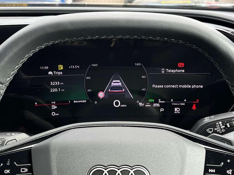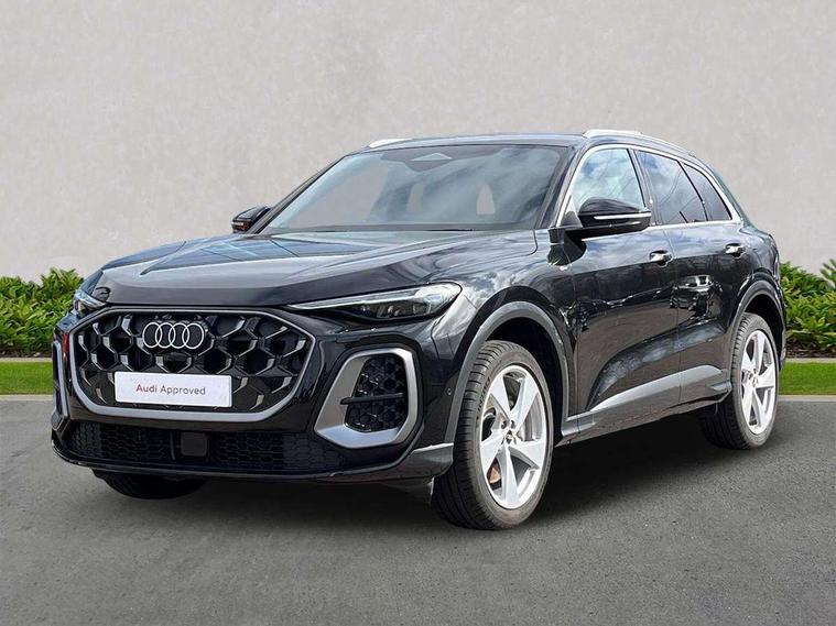 Adaptive cruise control, Attention and drowsiness detection with driver observation, Audi application store, Audi connect emergency call and service, Audi digital key, Audi drive select, Audi smartphone interface, Audi virtual cockpit plus with 11.9" OLED colour display, Camera based traffic sign recognition, Front cross traffic intersection assist, Lane change assistant with exit warning system, rear cross traffic alert and rear turn assist, Lane departure warning system, MMI navigation plus with high resolution 14.5" OLED touchscreen colour display, Park assist plus, PAS, Reversing camera, Swerve assist and front turn assist, Traffic sign based speed limiter, Audi sound system impressive sound with 8 loudspeakers including centre speaker and subwoofer, 6-channel amplifier with a total output of 180 watts, DAB Digital radio, Smartphone compartment with wireless charging, Aluminium roof rails, Auto dimming rear view mirror, Body coloured door mirrors, Electrically adjustable heated and folding + automatically dimming exterior mirrors, Front and rear electric windows, Front door sill trims with aluminium inlays, illuminated with 'S' logo, Grill frame, inlay and front air inlets in matt anthracite chrome, Headlight cleaning system, Heated rear window, High beam assist, High gloss window surrounds, LED headlights plus incl. digital DRL, dynamic coming and leaving home function with turning/all weather/motorway/manouevring and intersection lights, LED rear lights pro incl. dynamic rear indicators and illuminated light strip with animated coming and leaving home function, Logo projection light in exterior mirrors, Privacy glass, Projection third brake light for rear window in LED, Radiator grille in phantom black, Rear and side windows with heat insulating glass, Rear honeycombe grille in matt black with inlay in matt anthracite chrome, Rear side wing doors, Rear wash/wipe, S Line badge on the front wings, S line bumpers in contrasting Volcano grey metallic paint finish, Windscreen with acoustic glazing, 3 rear head restraints, 3 seat bench in 2nd row, 3 spoke leather steering wheel with multi-function buttons with touch control, flattened on top and bottom, with S badging and contrast stitching, 4 way electric lumbar support for driver and front passenger, Black carpets, Comfort centre armrest front, Deluxe 3 zone electronic climate control, Front and rear floor mats, Front sport seats with integrated head restraints, Headlining in black cloth, i-Size child seat mounting on the front passenger side and outer rear seats, i-Size and top tether on the outer rear seats, Increased charging capacity for USB ports 2X100 Watts in rear, 2X60 Watts in front, Interior trim in aluminium look, Luggage compartment lid, electrically opening and closing, Manual steering column adjustment, S embossed logo on front sport seats, Single front passenger seat, Softwrap in black, Stainless steel pedals and footrest, Steering wheel grips in perforated leather and shift paddles, Ambient lighting package plus - Q5, Rear seat bench plus pack - Q5, Storage and luggage compartment pack with luggage net - Q5, 3x3 point rear seatbelts, ABS, Acoustic vehicle alerting system, Convenience key with safelock, Driver and front passenger airbag with passenger airbag deactivation, Electric child safety locks, First aid kit with warning triangle and high visibility vests, Front emergency brake assist, Front side airbags with head airbag system and front interaction airbag, Hill hold assist, Rear seat occupant reminder, Tyre pressure loss indicator, Anti-theft wheel bolts, Thatcham approved category 1 anti theft alarm, Accent surfaces and control buttons in gloss black, Anthracite matt brushed aluminium inlays with linear embossing, Black dashboard with contrast stitching, Upper and lower interior elements in artificial leather, Tyre repair kit,