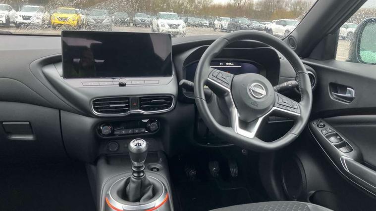 12.3" full colour TFT screen combimeter, Drive modes select (Eco, normal and sport), Emergency and breakdown call, Front parking sensor, Idle start/stop system, Intelligent driver alert system, Intelligent lane intervention, Lane departure warning system, Nissan connect 12.3" touch screen entertainment system, Nissan connect nav with TomTom traffic, Nissan connect services, Outside temperature sensor, Power Steering, Rear parking sensor, Stop/start button, Traffic sign recognition, Trip computer, Voice recognition, WiFi connectivity, Wireless Apple CarPlay and Google Android auto, Wireless Smartphone charger, 2 X Rear console USB port, 6 speakers, Bluetooth system, USB, Aux-in and 12V socket, DAB Digital radio, Auto dimming frameless rear view mirror, Automatic hazard signal with emergency stop signal, Body colour door handles, Electrically adjustable door mirrors with integrated indicators, Follow me home headlights, Front and rear electric window with one touch driver window, Heated and auto folding door mirrors, High beam assist, LED 3rd brake light, LED daytime running lights, LED headlamps, LED rear fog lamp, LED rear lamps, One touch passenger window, Rain sensor windscreen wipers, Rear privacy glass, Rear side wing doors, Rear wiper, Roof spoiler, Shark fin roof antenna in solid Black, Three blink turn signal, 3 height adjustable rear headrests, 3 seat bench in 2nd row, 60/40 split folding rear seat, Automatic climate control, Card holder on driver sunvisor, Cloth/Synthetic leather with melange fabric inserts, Driver side rear coat hanger, Driver/passenger sunvisors and vanity mirrors, Front and rear cabin lights, Front armrest, Front door pockets with bottle holders, Front head restraints, Front/rear passenger grab handles, Height adjustable driver's seat, Internal chrome door handles, Leather gearshift knob, Luggage board, Luggage space lighting, Monoform sporty seats, Multifunction steering wheel, Rear door bottle holders, Single front passenger seat, Smooth synthetic leather steering wheel, Synthetic leather kneepad, Telescopic steering wheel adjustment, Two cupholders in front centre console, Two rear isofix child seat anchorage points with top tether, Welcome light and console tray ambient lighting, ABS with EBD and brake assist, Active ride control, Active Trace Control, Driver and passenger airbags, Driver and passenger side airbags, Electric handbrake with auto hold function, Electronic Stability Programme (ESP), Front and rear curtain airbags, Height adjustable seatbelts, Hill start assist, Intelligent emergency braking with pedestrian and cyclist recognition, Rear door child safety locks, Seatbelt reminder for driver/front passenger and rear seats, Three 3 point rear seatbelts, Traction control, Tyre pressure monitoring system, VDC Dynamic Vehicle Control, Alarm, Immobiliser, Intelligent key and start push button with walk away lock and approach unlock functions, Remote central locking, 17" Alloy wheels, Tyre puncture repair kit,