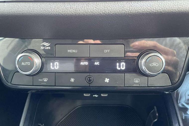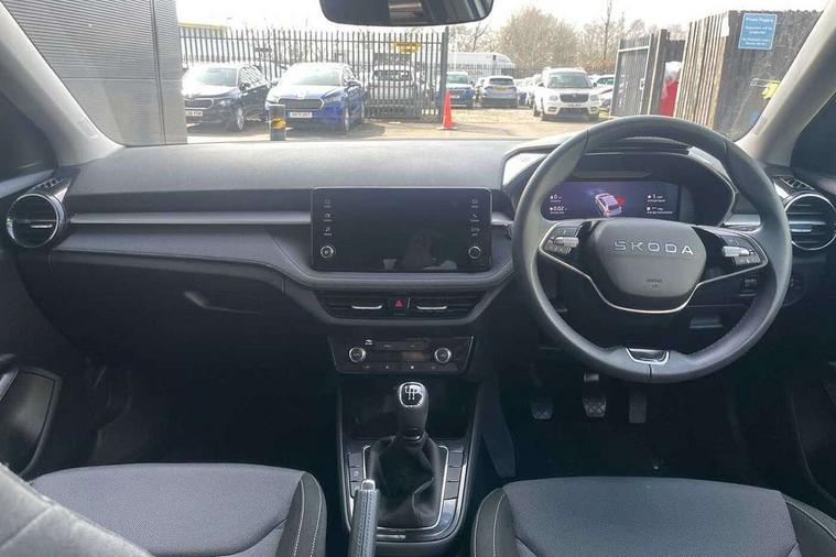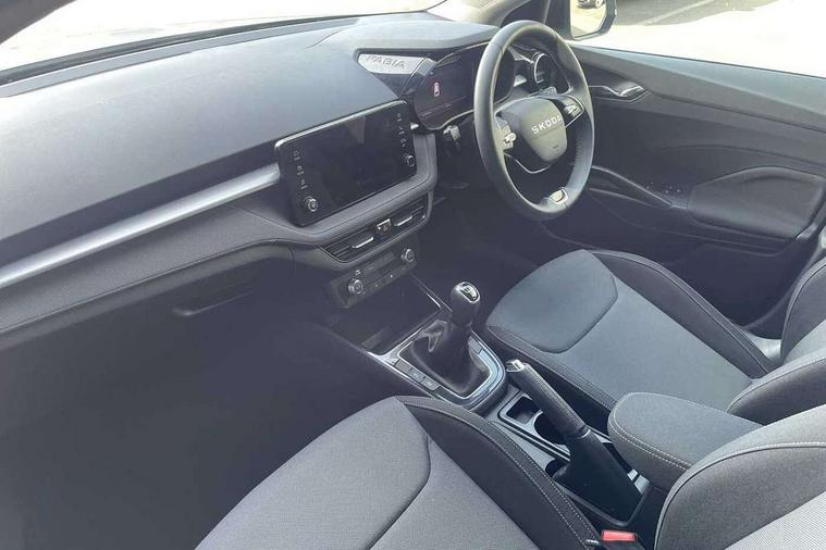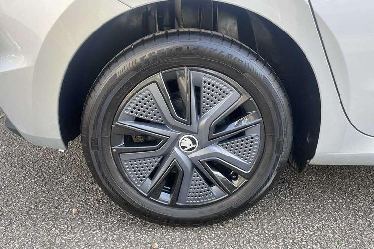 Advanced driver attention and drowsiness monitor, Bluetooth connection, Electromechanical power steering, Exterior temperature gauge, Service interval indicator, Traffic sign recognition, Virtual cockpit with 10.25" colour display, Wireless SmartLink for Apple CarPlay and Android Auto, 6 Speakers (4 in front and 2 in rear), Auxiliary socket for external MP3 player, DAB digital radio reception, Auto dimming rear view mirror, Body coloured bumpers, Door mirror integrated indicators, Front and rear electric windows, Front window wiper intermittent control, Headlight range control - Automatic, Ice scraper in fuel cap, LED 3rd brake light, LED daytime running lights with coming and leaving home feature, LED rear lights, Privacy glass, Rear LED fog light, Rear side wing doors, Rear window wiper with washing nozzles, Roof mounted spoiler, SKODA tailgate lettering in chrome, Unique dark chrome design logo on alloy wheels, 2 reading lights in front and 2 reading lights in rear, 3 rear headrests, Backrest split and folding, Central console with removable cup holder and storage box, Chrome handbrake release button, Dual zone air conditioning with climatronic electronic control, Fabric upholstery, Front centre armrest, Gearshift knob/handle in leather, Grain satin black interior door handles, Hand brake lever handle in leather, Height adjustable front headrests, Height adjustable front seats, Height adjustable steering wheel, ISOFIX and TopTether anchorage points to the outer rear seats, ISOFIX and TopTether on the front passenger seat, Luggage compartment lighting, Manually adjustable lumbar support in front seats, Pollen filter, Rear seat bench unsplit, Single front passenger seat, Skoda lettering on steering wheel, Storm grey headlining, Sun visors with mirror and airbag label on passenger side, Textile floor mats, Ticket holder, Umbrella in drivers door, 3-point height adjustable front seats belts with pretensioner and force limiter, Automatic warning lights in case of crash, Driver and passengers airbag with switch off function, e-Call+, ESC including ABS, MSR, ASR, EDS, HBA and XDS, Front and rear seat belt warning, FRONT ASSIST (AEB City and AEB Inter Urban), Front side airbags, Head airbags, One tone horn, Pedestrian protection, Three rear 3-points safety seat belts with pretensioner and force limiter including stop function for outer rear seat belts, Tyre pressure monitoring system, Anti-theft alarm system including immobiliser, interior monitoring, backup horn, and towing protection, Central locking with radio remote control, interior controls, SAFE function and 2 foldable keys, Black painted air vents, Grain satin black central console cover, Metallic grey upper decorative trim, Satin black door and side trim panel in front, Textile Kota grey lower decorative inserts, Anti-theft wheel bolts protection, Super-low rolling resistance tyres,