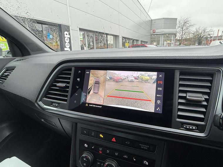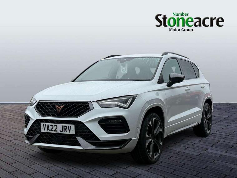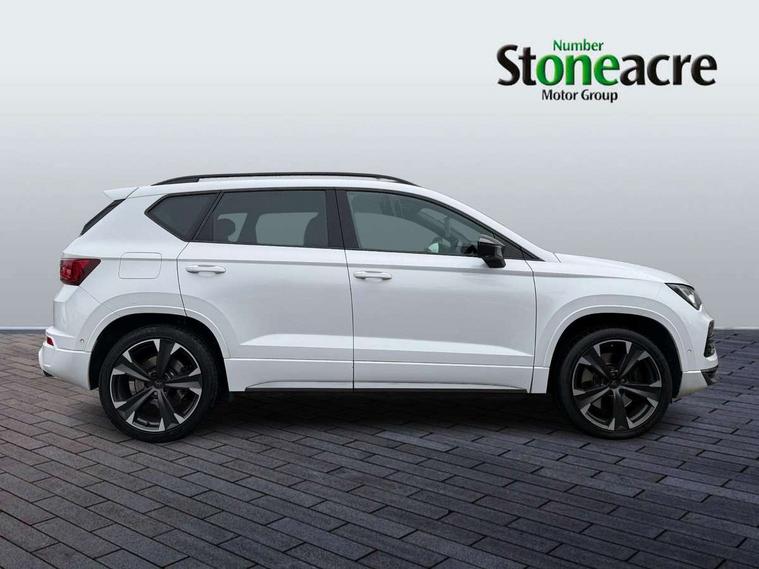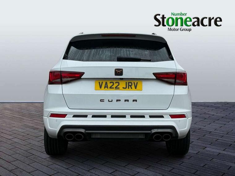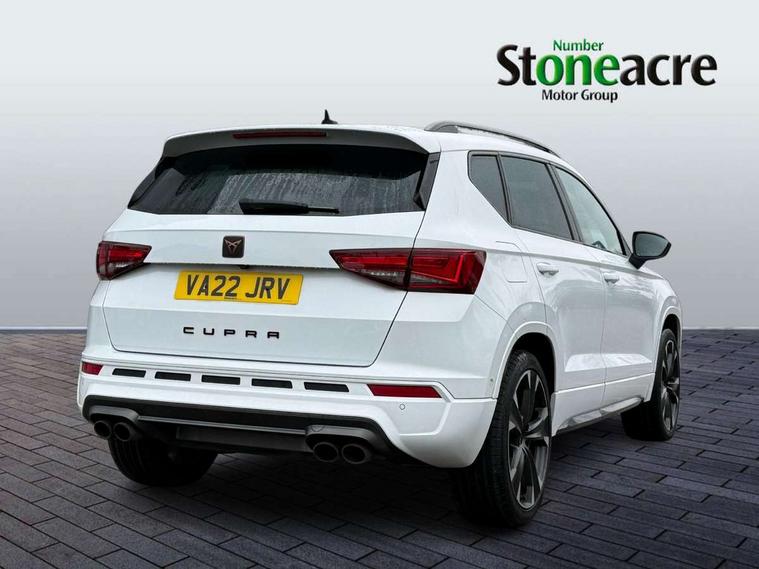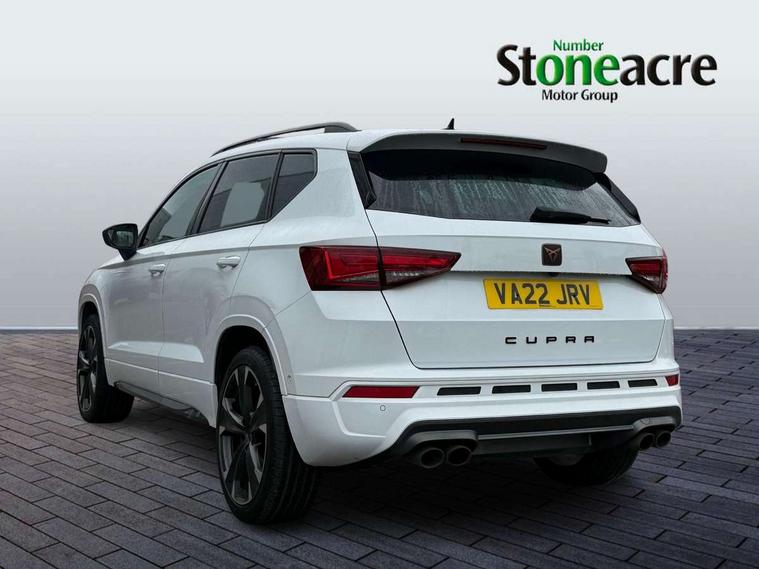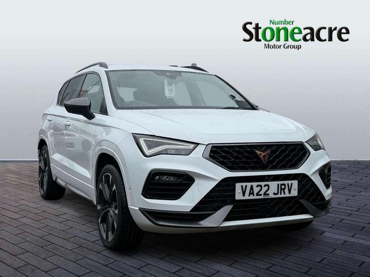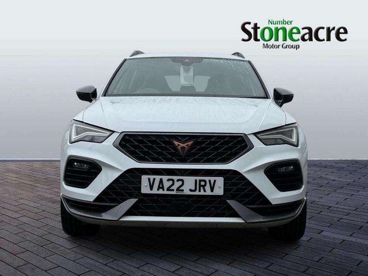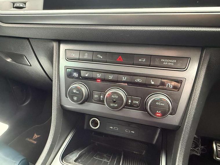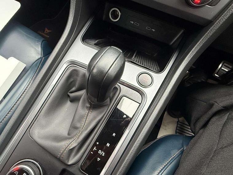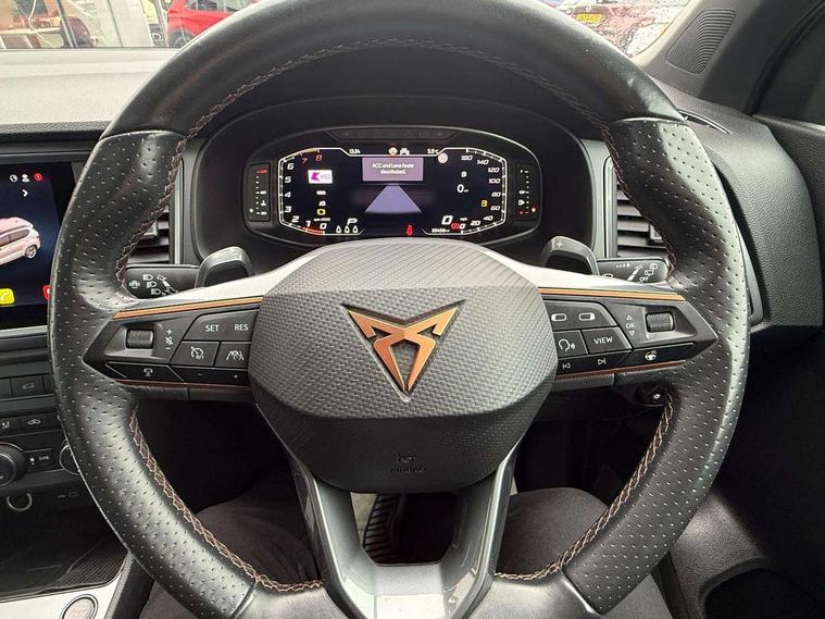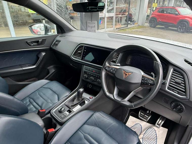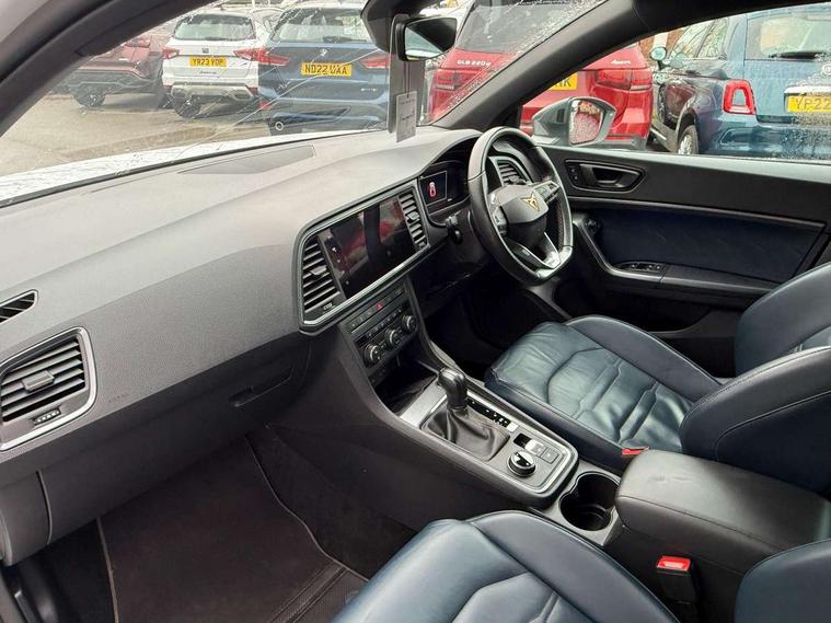 CUPRA drive profile -Normal, Sport, CUPRA and Individual modes, steering/throttle response, gearshift mode, sound actuator and dynamic chassis control, Digital cockpit, E-call, Electric tailgate with virtual pedal, Front and rear view camera, Outside temperature gauge, Progressive power assisted steering, Self parking functionality (includes front and rear parking sensors), Top view camera, Trip computer, Wireless full link smartphone integration, Wireless phone charger, CUPRA sport suspension, Beats audio system, Steering wheel mounted audio/phone controls, Body colour bumpers with dark aluminium diffusor, Body coloured wheel arch surrounds, Dark tinted rear windows, Daytime running lights, Door mirrors with welcome CUPRA light silhouette, Dynamic headlight range control with self adjusting whilst driving, Electric adjustable/heated/folding door mirrors, Front and rear electric windows, Front grille frame in chrome, Full LED headlamps with lens and LED front fog lamps with cornering function, Gloss black door mirrors, Gloss black roof rails, Gloss black side mouldings, Gloss black side window trim, Illuminated aluminium front door sill, LED rear tail lights with dynamic indicators, Rear fog lights, Rear side wing doors, Rear spoiler, Rear wash/wipe, Specific CUPRA design front bumper, Third brake light, Visible twin black exhaust pipes in both sides with dark aluminium diffuser, 12v socket in front, 3 seat bench in 2nd row, 60/40 split folding rear seat, Aluminium pedals, Cupra steering wheel emblem, Dual zone climate control, Electric driver seat with memory function, Front and rear head restraints, Front centre armrest, Front seat back storage pockets, Heated front seats, Heated steering wheel, Height adjustable driver and passenger seat with lumbar adjustment, ISOFIX points in outer rear seats with top tether anchorage points, Leather steering wheel and gear knob, Multicoloured ambient lighting with LED interior illumination, Pedal cluster, Petrol blue leather bucket seats, Rear armrest and easy back seat release mechanism from boot, Single front passenger seat, Steering wheel mounted gearshift paddles, Storage compartment in roof console for sunglass, Storage compartment under driver's seat, Convenience pack - Ateca, Interior lighting pack - Ateca, Navigation system plus pack with DAB - Ateca, Safe and driving pack with High beam control - Ateca, 3x3 point rear seatbelts, ABS, Traction control system (TCS), Electronic stability control (ESC) and Electronic differential lock system (XDS), Airbags - Driver and front passenger airbag with deactivation, front side, two curtain and driver's knee airbags, Black brake callipers with CUPRA logo, Electric parking brake with auto hold function, Front and rear seatbelt reminder, Front assist with autonomous emergency braking, Hill hold control, Manual rear child locks, Single tone horn, Tiredness recognition system, Tyre pressure monitoring system, Alarm, Keyless entry, Locking wheel bolts,