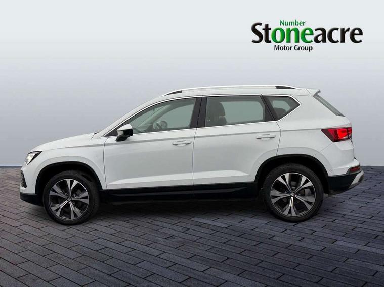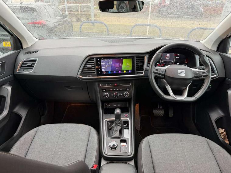 8" Digital cockpit, Colour multi-function on board computer display, Cruise control system with speed limiter, E-call, Outside temperature gauge, PAS, SEAT drive profile with driving experience button - Normal, Sport, Eco and Individual mode, gearshift, steering and throttle response, Self parking functionality (includes front and rear parking sensors), Start/stop system, Tailgate, Trip computer, wired and wireless full link smartphone integration, Wireless phone charger, Steering wheel mounted audio/phone controls, Black wheel arch surrounds, Body colour bumpers, Chrome front grille frame, Chrome roof rails, Chrome side window trim, Daytime running lights, Door mirrors with welcome light silhouette, Dynamic headlight range control with self adjusting whilst driving, Electric adjustable/heated/folding door mirrors, Front and rear electric windows, Full LED headlamps with lens and LED front fog lamps with cornering function, LED 3rd brake light, LED rear tail lights, Rear exhaust tailpipe, Rear fog lights, Rear side wing doors, Rear wash/wipe, Variable front intermittent wipers, 12V socket in front, 3 seat bench in 2nd row, 60/40 split folding rear seat, Cloth upholstery with front comfort seats, Drawer under right front seat, Dual zone climate control, Front and rear head restraints, Front centre armrest, Front seat back storage pockets, Height adjustable driver and passenger seat with lumbar adjustment, ISOFIX points in outer rear seats with top tether anchorage points, Leather sports steering wheel and gear knob, Rear armrest and easy back seat release mechanism from boot, Single front passenger seat, Steering wheel mounted gearshift paddles, Convenience pack - Ateca, Interior lighting pack - Ateca, Navigation system pack with DAB - Ateca, Safety and driving pack with attention and drowsiness assist - Ateca, 3x3 point rear seatbelts, ABS, Traction control system (TCS), Electronic stability control (ESC) and Electronic differential lock system (XDS), Airbags - Driver and front passenger airbag with deactivation, front side, two curtain and driver's knee airbags, Electric parking brake with auto hold function, Front and rear seatbelt reminder, Front assist with autonomous emergency braking, Hill hold control, Manual rear child locks, Single tone horn, Tiredness recognition system, Tyre pressure monitoring system, Alarm, Keyless entry, Locking wheel bolts, Remote central locking, Chrome interior detailing, 18" Performance machined alloy wheels 36/2 in nuclear grey,