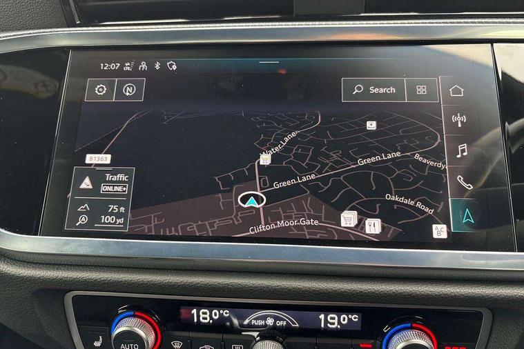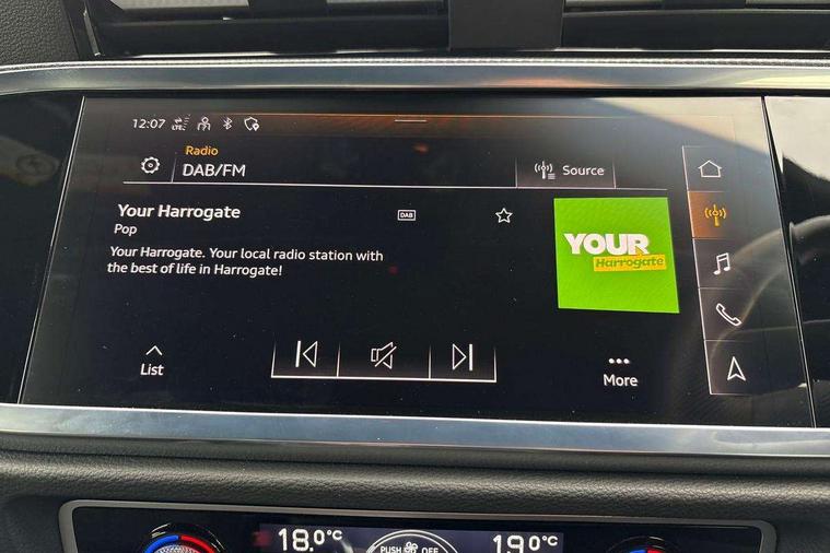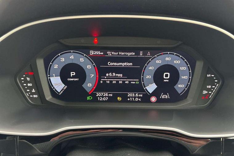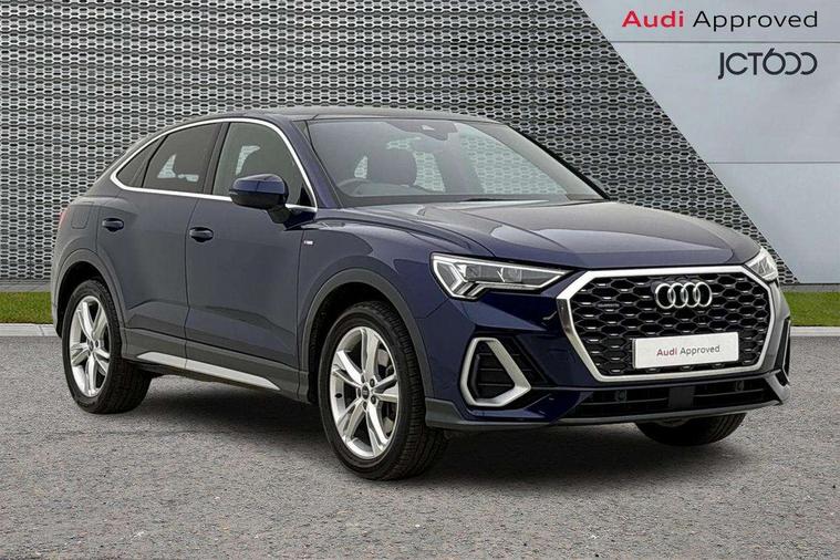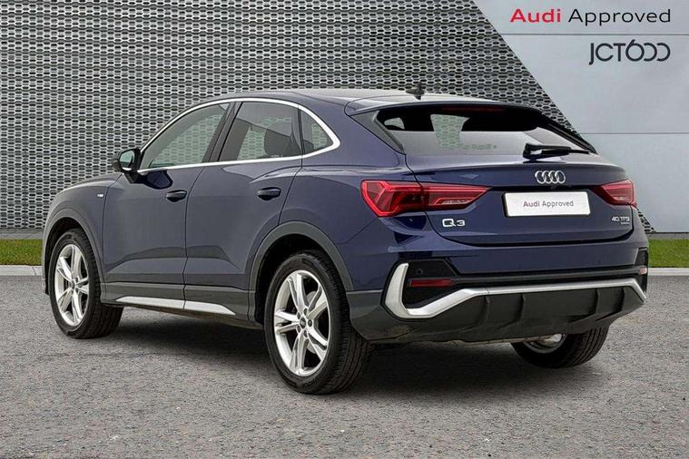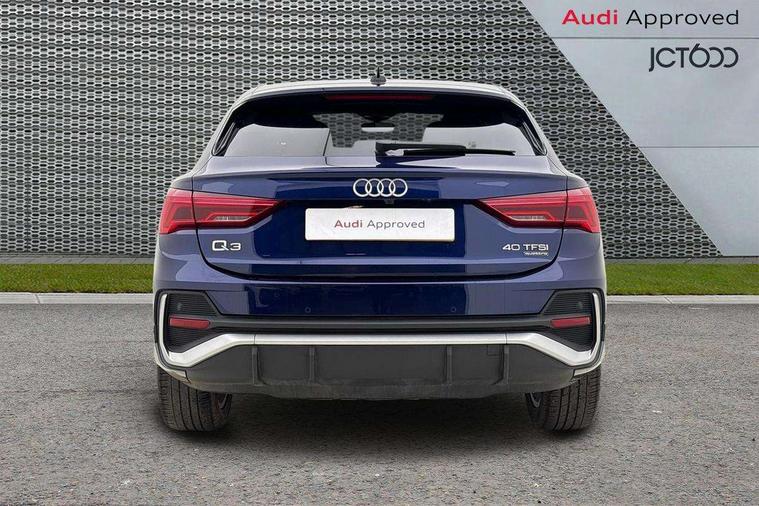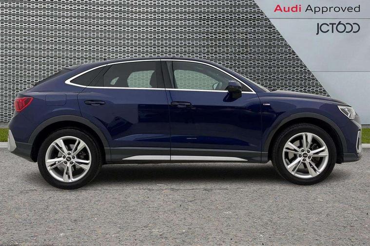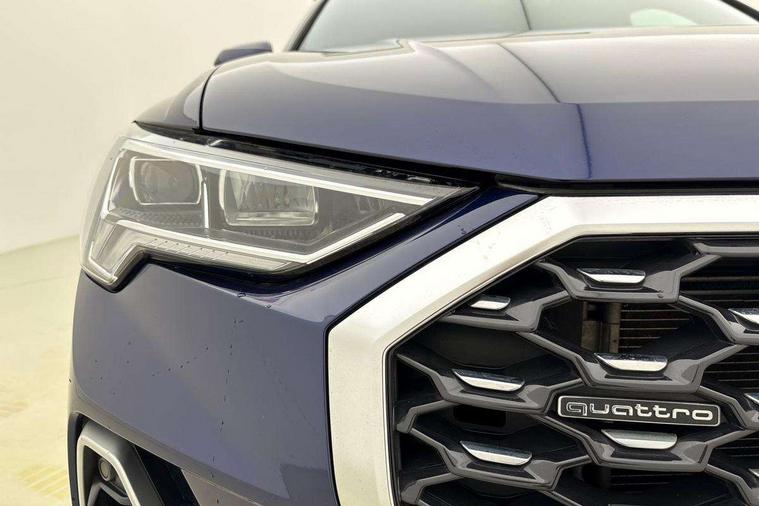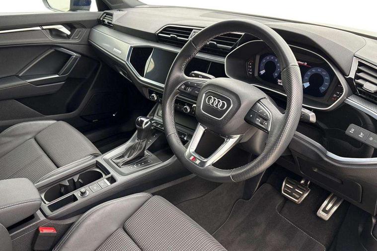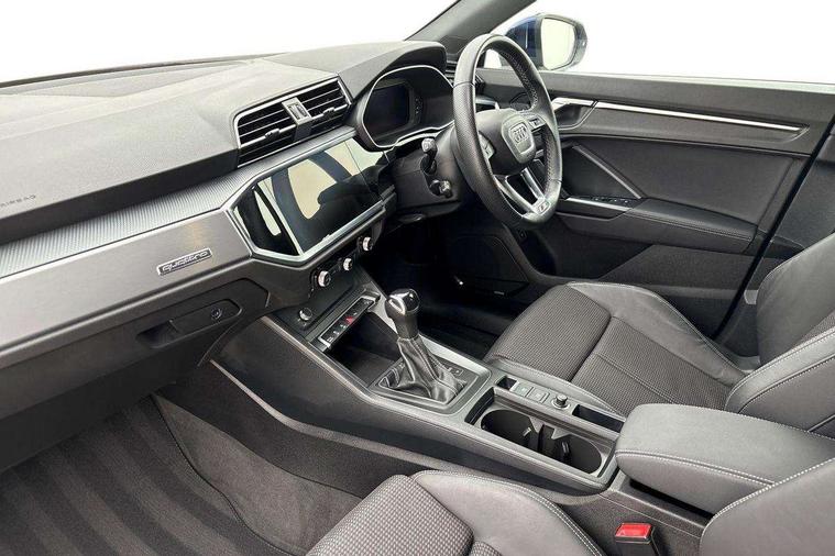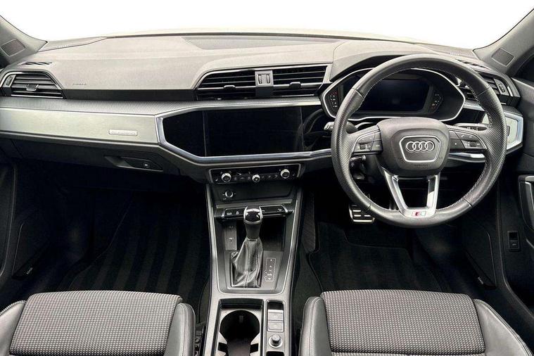 Audi drive select, Audi lane departure warning, Audi Virtual Cockpit - 10.25" display, Bluetooth interface, Camera based traffic sign recognition, Legal emergency call, MMI Navigation Plus with high resolution 10.1 inch touchscreen colour display, Power operated tailgate, Progressive steering, Service interval indicator, Smartphone interface includes wireless Apple carplay/Android Auto, Start stop system with recuperation, Voice control system with natural language interaction, Sports suspension, 2 USB-C ports with charge and data functions, 6 passive loudspeakers, DAB digital radio module, Acoustic windscreen, Aluminium window trim, Auto dimming frameless rear view mirror, Diffuser grille in grained matt black, Diffuser trim in selenite silver, Electrically folding, adjustable and heated door mirrors with integrated LED side indicators and kerb view function for passenger side, Front and rear electric windows, Front fog lights, Front side air inlets in selenite silver, Front underbody protection in manhattan grey paint finish, Grille surround in aluminium silver matt, High gloss black finish B and C pillars, LED Dynamic rear indicators, LED headlights with LED daytime running lights, LED rear lights, LED third brake light, Privacy glass dark tinted rear and rear-side windows (from B-pillar backwards), Radiator grille in anthracite black with inlay in matt aluminium silver, Rain and light sensors, Rear side wing doors, Rear underbody protection in matt black, Rear wiper, S line badges on front wings, S line front and rear bumpers and side skirts in contrasting Manhattan grey paint finish, Side skirt insert in matt Platinium grey, Variable front intermittent wipers, 12V socket in rear centre console, 3 seat bench in 2nd row, 3 spoke leather multifunction steering wheel features S badging and grips in perforated leather with contrast stitching, 40:20:40 folding with manual adjustment for 60:40 forwards/backwards position and backrest angle, Adjustable rear seat bench/backrest with centre armrest and cupholder, Black cloth headlining, Dual zone electronic climate control, Front and rear black floor mats with contrast stitching, Front and rear headrests, Front and rear roof module including reading lights, Front centre armrest, Glove compartment lighting, Height and reach adjustable steering wheel, Illuminated door sill trims with S logo, ISOFIX child seat mounting for front passenger with airbag deactivation and outer rear seat including top tether attachment point for outer rear seats, Luggage compartment light right in white, Luggage compartment sill protection in stainless steel, Manual front seats with height adjustment, Perforated leather gearknob, Single front passenger seat, Stainless steel pedals, Ambient lighting pack - Q3, Non smoking pack - Q3, 3x3 point rear seatbelts, 6 airbags - Driver, front passenger, curtain and side windows, Audi pre-sense front with pedestrain and cyclist recognition, Electrically operated child locks on rear doors, Electromechanical parking brake, Electronic stabilisation control including ABS, ASR and EDL, Front seatbelt reminder, Hill descent control, Hill hold assist, Pre sense basic, Seatbelt monitoring, Tyre pressure warning, Warning triangle and first aid kit, Anti theft alarm, Anti theft wheel bolts, Immobiliser, Remote central locking, Aluminium look interior elements, Black dashboard, Dark matt brushed aluminium inlay, Detail dashboard around MMI touch colour display in glass look, black with surround in aluminium look, Leatherette door armrest,