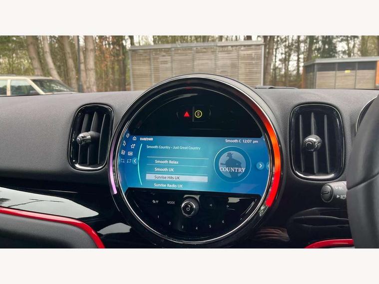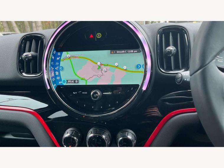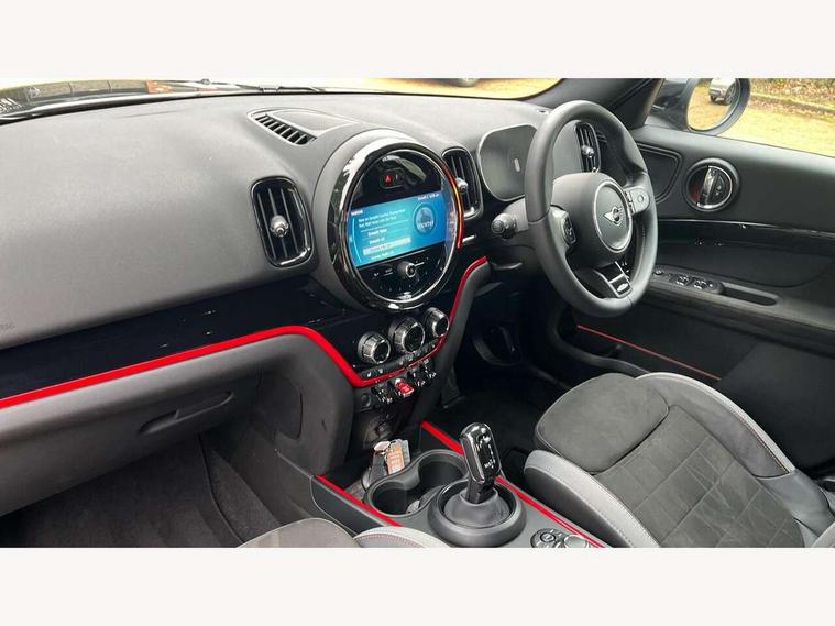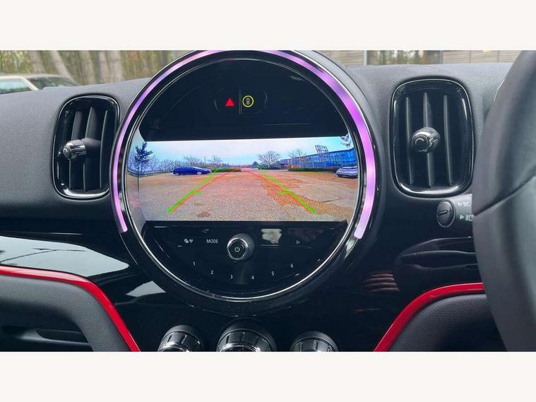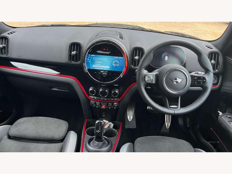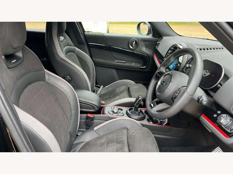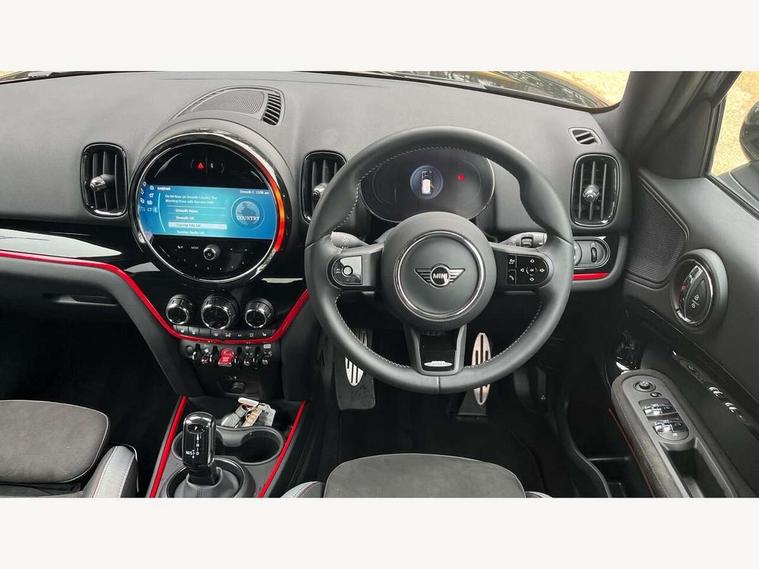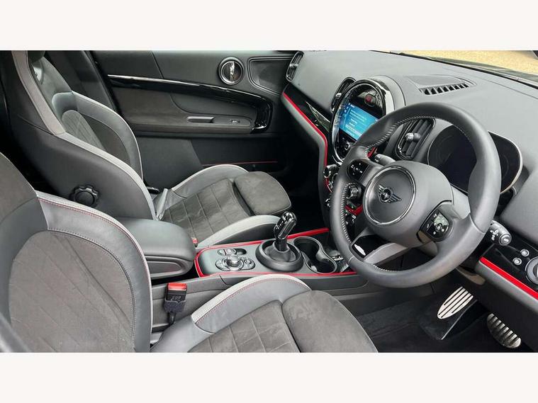 Active Guard incl speed limiting and lane departure functions with auto steering, and front collision warning with brake intervention, Automatic start/stop function with brake energy recuperation, Compatible mobile phone bluetooth with audio streaming, Cruise control with brake assist, Electro-mechanical speed dependant steering assistance, Instrument cluster, MINI Driving Modes - centre toggle switch to control driving setting (sport, mid and green), Mini E-call, On board computer, Double Vanos system, Fully variable valve control, High precision injection, Performance Control, Steptronic transmission with double clutch, FM tuner and DAB digital radio, 3rd brake light, Body colour fuel filler cap, Day time driving lights, Door sill strips, Dynamic brake lights, Electric windows, Heated rear window, Heated windscreen washer jets, John Cooper Works - aerodynamic kit (front and rear apron, spoiler), front and rear sport bumpers and part-painted side sills with door sill finishers, John Cooper Works Logo, LED fog lights, Model logo, Model logo on Tailgate, Rain sensor with auto headlights, Rear fog lights, Rear side wing doors, Rear window wiper, Side scuttle panel with integrated indicator, Split rear doors, Sun/heat protection glass, White indicator lenses, 12V socket in centre console, 3 seat bench in 2nd row, 360L luggage compartment capacity, 4 lashing eyes in luggage compartment, 40:20:40 split folding rear seats, Anthracite headlining with grab handles and clothes hooks, Chrome interior highlights, Colour line - Carbon black, Cupholders, English handbook, Front headrests, Glove compartment, Height and length steering column adjustment, Interior lighting with 12 basic colours selectable via toggle switch in roof, Isofix rear child seat preparation, LED reading lights, vanity mirror lights, front foot well light and spotlight on front seats, Mini John Cooper Works leather gearshift lever and handbrake gaiters, Multifunction steering wheel, Nappa leather steering wheel with MINI Yours logo, Rear headrests, Single front passenger seat, Stainless steel pedals and foot rest, Storage compartments in doors, Sunvisors with vanity mirrors, Excitement pack - Countryman, Navigation pack - Countryman, Piano black exterior pack - Countryman, 2 tone horn, 3 point seatbelts on all seats, 6 Airbags - front, side, head and seat belt tensioners, Anti-lock braking system (ABS), DSC - Dynamic Stability Control, Electronic handbrake, Front and rear disc brakes, Hill start assist, Manual rear child locks, Tyre pressure monitoring system, Alarm system with tilt sensor, monitoring doors, bonnet interior and tailgate, Auto drive away locking, Deadlocking function, Electronic vehicle immobiliser, Locking wheel bolts, Start/stop toggle with keyless go, Piano black JCW interior trim, Tool kit,