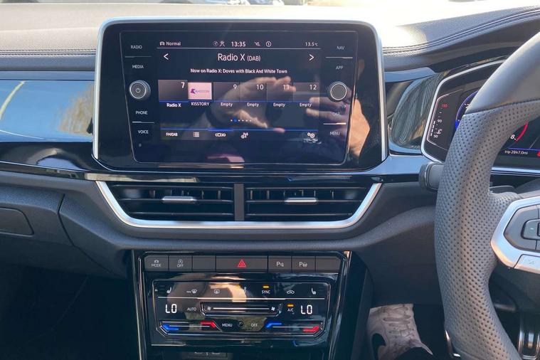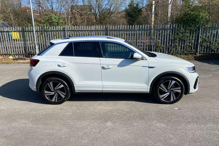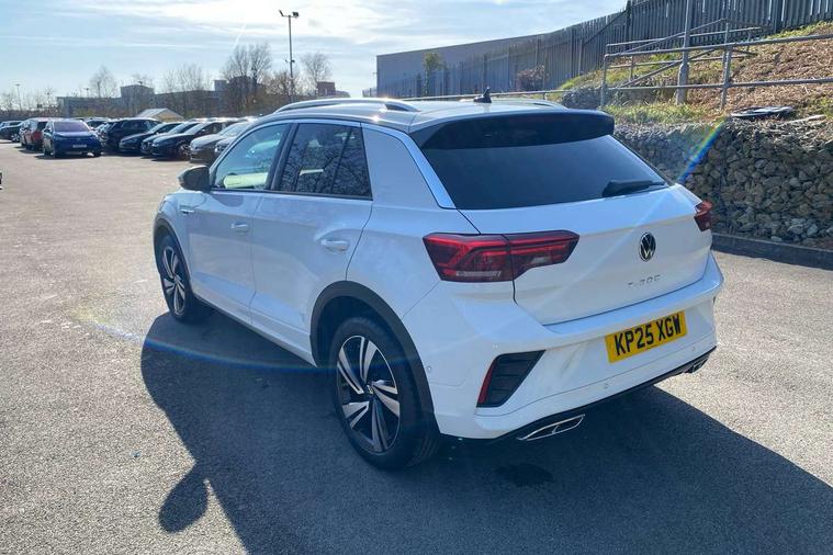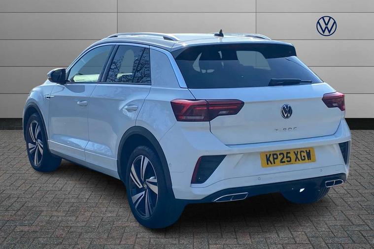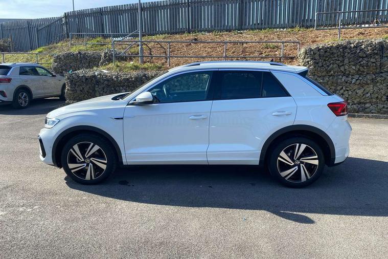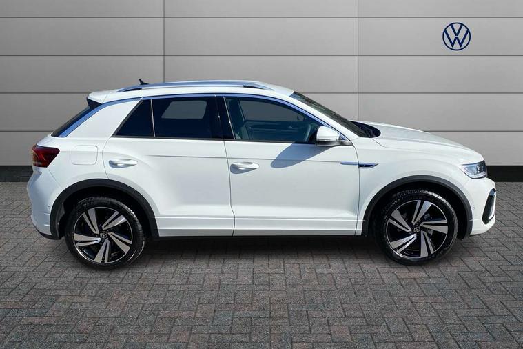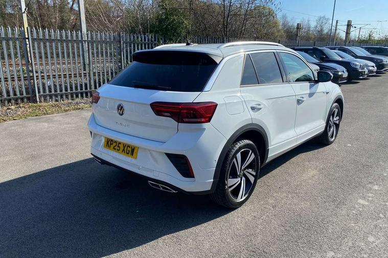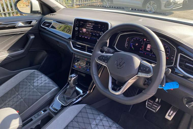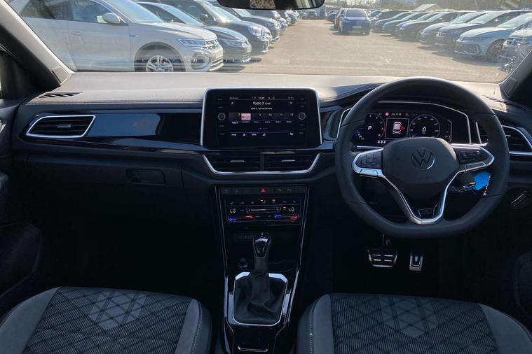 10.25" Digital cockpit pro, Advanced driver attention and drowsiness monitor, Emergency call service, Lane keeping system Lane Assist, Mobile phone interface, Modified key software - reduce switch off time for key status change to Long no motion, Online services, Park assist including front and rear parking sensors, Service interval indicator, Tailgate/trunk lid release from outside, Think blue trainer driver tips and journey analysis, Warning sound and light for front seatbelts unfastened, Wireless app connect, Battery regeneration during braking, Start/stop function with battery regeneration, DAB Digital radio, Diversity antenna for FM reception, Front and rear 6 speakers, Music playback - MP3, WMA and AAC files, Premium USB cable in choice of either Apple or Android smartphone compatibility, SD card slot, Simultaneous pairing of 2 compatible mobile devices, Title and cover art display, We Connect and We Connect Plus functionality, Auto dimming interior rear view mirror, Automatic hazard lights activation under emergency braking, Automatic headlight control with LED separate daytime running lights with coming/leaving home function, Body coloured exterior mirror housings and door handles, Electrically adjustable and heated door mirrors, Extended roof spoiler, Exterior mirrors aspherical on driver side, convex on front passenger side, External USB type C socket and charging sockets, Front windscreen wiper with intermittent wipe and 4 position delay, Heated rear window, LED 3rd brake light, LED rear combination lamps, LED rear number plate lights, Power windows with comfort operation and circuit breaker, Privacy glass for rear side windows and rear window, R-Line design body coloured bumpers, Rain sensor, Rear exhaust tailpipe, Rear fog light on one side and reversing lights on both sides, Rear side wing doors, Rear wash/wipe with intermittent wipe setting, Remote electrically foldable door mirrors, puddle lights and reverse activated passenger's door mirror, 12V power socket in centre console, 3 rear head restraints, 3 seat bench in 2nd row, 4 load lashing points in luggage compartment, Air care climatronic air conditoning system with active combination filter and 2-zone temperature control, Black roof lining, Chrome plated decorative trims, Chrome plated radiator grille inserts, air vent surrounds and light switch surrounds, Door and side trim panel with leatherette insert, Front + rear carpet mats, Front centre armrest, Front cupholders x 2, Front footwell illumination, Front reading light, Front scuff plates with R Line logo, Front seat back storage pockets, Glove compartment door with light, Instrument lighting, white adjustable panel illumination, Interior ambient lighting and surround lighting, Interior light delay, Isofix child seat preparation, Leather gearshift handle, Load-through provision with cup holder when folded down ('Unsplit rear seat bench, split folding backrest, with centre armrest), Luggage compartment lighting, Single front passenger seat, Stainless steel pedals, Storage compartment in left and right luggage area, Storage compartment in rear doors, Storage compartments in driver and front passenger doors, Sunvisors with illuminated vanity mirrors, Variable boot floor, height adjustable and removable, Driver assistance pack without proactive passenger protection - T-Roc, 3 point height adj front seatbelts + pretensioners, 3 point seatbelts in outer rear with ECE label, ABS, Child locks on rear doors, City emergency braking and pedestrian monitoring, Driver and front passenger airbag with front passenger airbag deactivation, Driver and front passenger safety-optimised head restraints, Drivers seatbelt reminder, Electronic parking brake, Electronic Stability Control (ESC) inc EDL (Electronic Differential Lock) and ASR (Traction Control), Front and rear passengers curtain airbag system including front side airbags, Hill start assist, Predictive pedestrian protection, Rear disc brakes, Two tone horn, Tyre pressure loss indicator, Volkswagen roadside assistance, Piano black decorative inserts in dashboard and front door trim panels, Trims for alloy wheels,