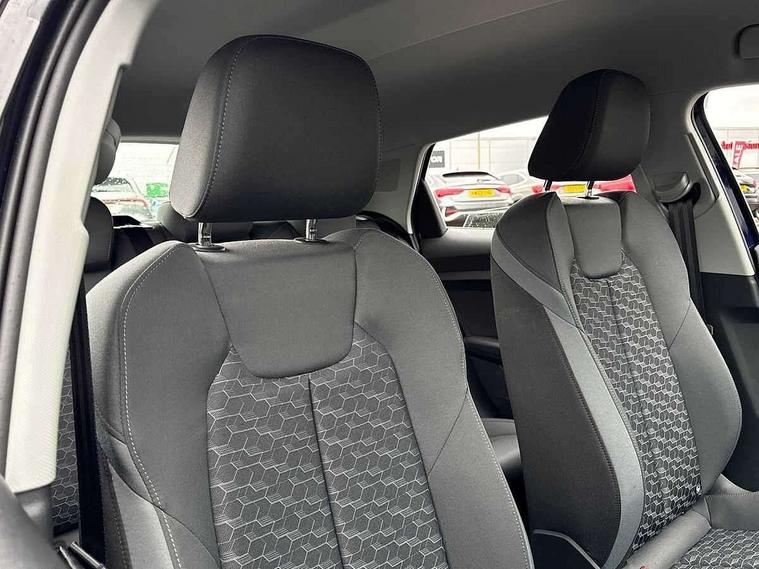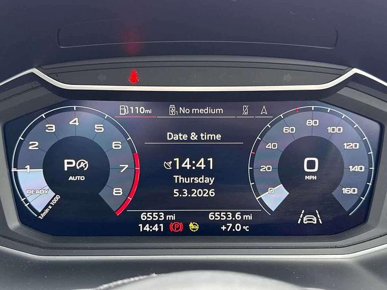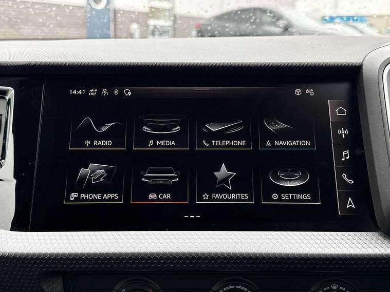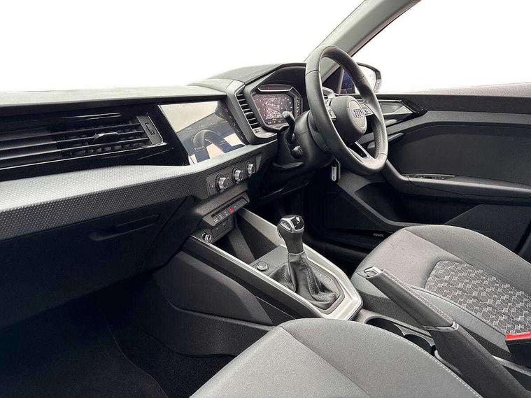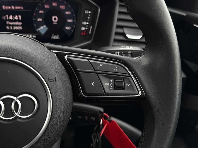 10.25" Digital instrument cluster display classis style instrument dials + speed, odometer, time, outside temperature, telephone menu + fuel level warning, Audi drive select - power steering assistance + engine + gear shift 3 preset modes (auto, dynamic, efficiency and an Individual mode), Audi smartphone interface with connect compatible smartphone via USB directly MMI display + Nav, music, third party apps controlled via MMI controller, Automatic start/stop system, Bluetooth interface, Cruise control, Driver's information system, Electromechanical power steering, Emergency e-call, Lane departure warning system, Rear parking sensor, Service interval indicator, Speed limiter, Voice control system, Washer fluid level indicator, Dynamic suspension, 2 x USB type C connection points, 6 passive loudspeakers, DAB Digital radio, MMI radio plus with 10.1" colour MMI display screen and MMI touch, Auto dimming rear view mirror, Body coloured bumpers, Body coloured door mirrors, Electric front and rear windows, Electrically adjustable, heated, folding door mirrors with integrated LED side indicator, Front side air inlets in grained matt black and C frame in anthracite black, Heat insulating glass windscreen and side windows, Heated rear windscreen, High level LED brake light, LED headlights with LED rear lights + dynamic rear indicators + headlight adjustment and high beam, turning light + LED daytime running lights, Radiator grille and rear diffuser in matt anthracite black, Radiator protective grille frame in matt aluminium silver, Rain and light sensors, Rear fog lights, Rear side wing doors, Rear wiper, Side front spoiler lips in grained matt black, 12V socket in centre console with two cup holders, 3 rear seats with headrests, 3 seat bench in 2nd row, 3 spoke leather multifunction plus steering wheel, 40:60 Split folding rear seat or folded fully, Black front and rear floor mats, Door sill trims with aluminium inlay, Driver and passenger seat with manual height adjust with forward and backwards adjustment, Front head restraints, Front passenger seat, Grey cloth headlining, Height and reach adjustable steering wheel, ISOFIX child seat mounting for front passenger and outer rear seats including top tether attachment point of outer rear seats, Leather gear knob with aluminium trim, Leatherette handbrake grip, Luggage compartment light with front and rear reading lights, Manual air conditioning, Manually adjustable lumbar support in front seats, Novum cloth upholstery with front sport seats, Luggage compartment pack - A1, 3x3 point rear seatbelts, Audi pre-sense front with pedestrain and cyclist recognition, Brake assist function, Driver and front passenger airbag with front side and head airbags, Electronic Stability Control including ABS, EBD, ASR and EDL, Front passenger airbag deactivation switch, Hill hold assist, Manual rear child locks, Seatbelt height adjustment for front seats, Seatbelt monitoring, Tyre pressure warning light, Warning triangle and first aid kit, Anti theft alarm, Anti theft wheel bolts and loose wheel warning, Immobiliser, Remote central locking with 2 foldaway keys, Aluminium trim for control switches, air vents and digital instrument cluster, Black dashboard, Silver grey accent areas including air vents, door handle recesses and centre console in diamond paint finish, Slate grey inlays polygon structure in fine paint finish,